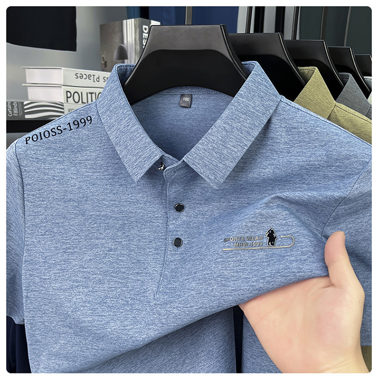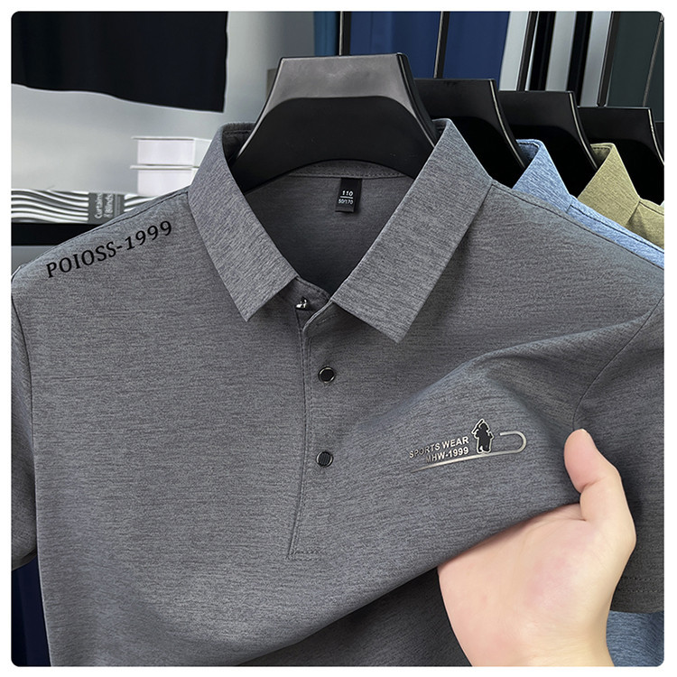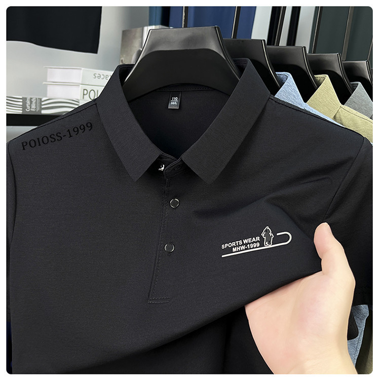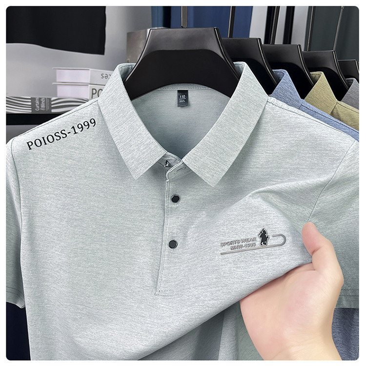 Мужская поло с коротким рукавом для трансграничных трансляций, летняя свободная тонкая футболка с принтом и отложным воротником для папы среднего возраста.