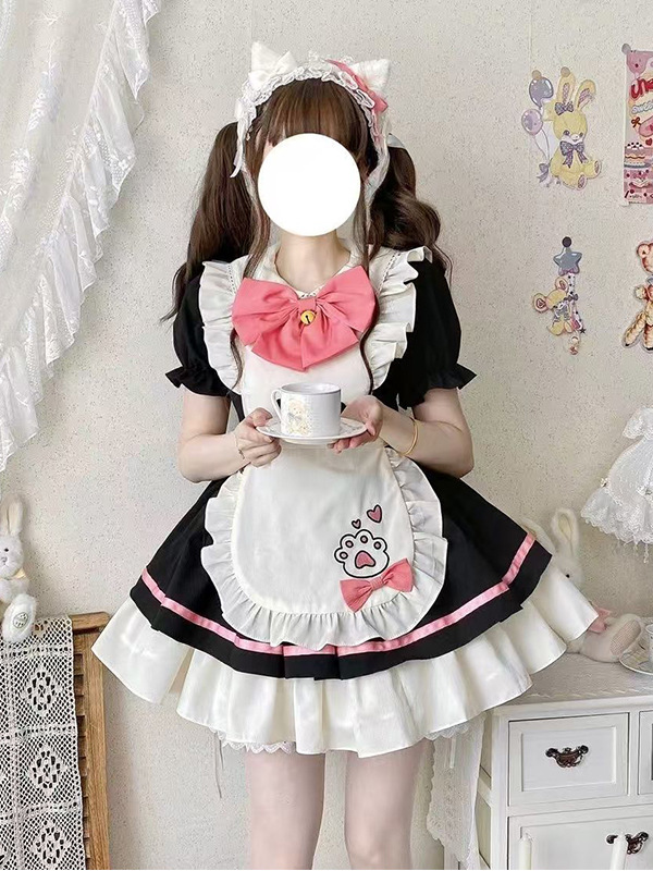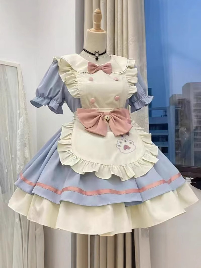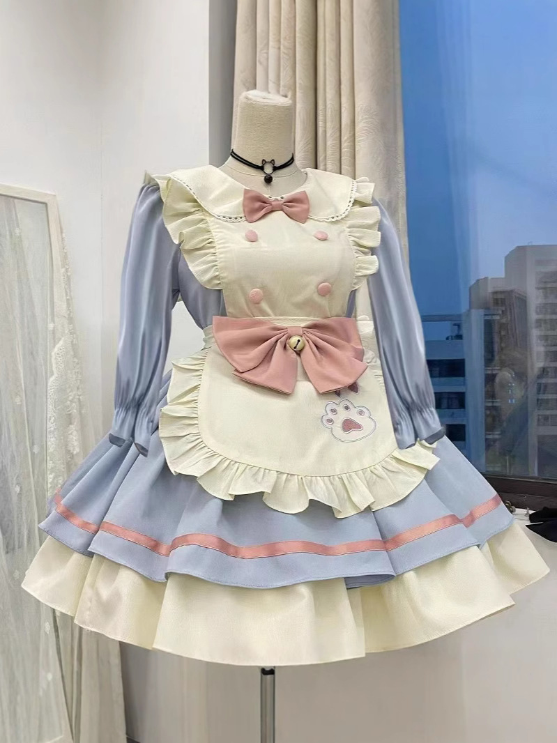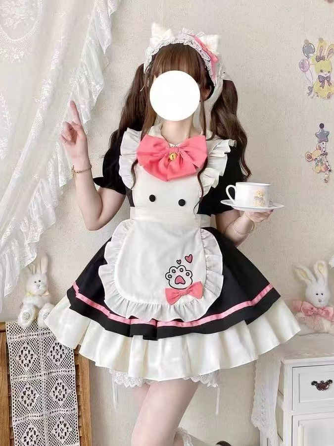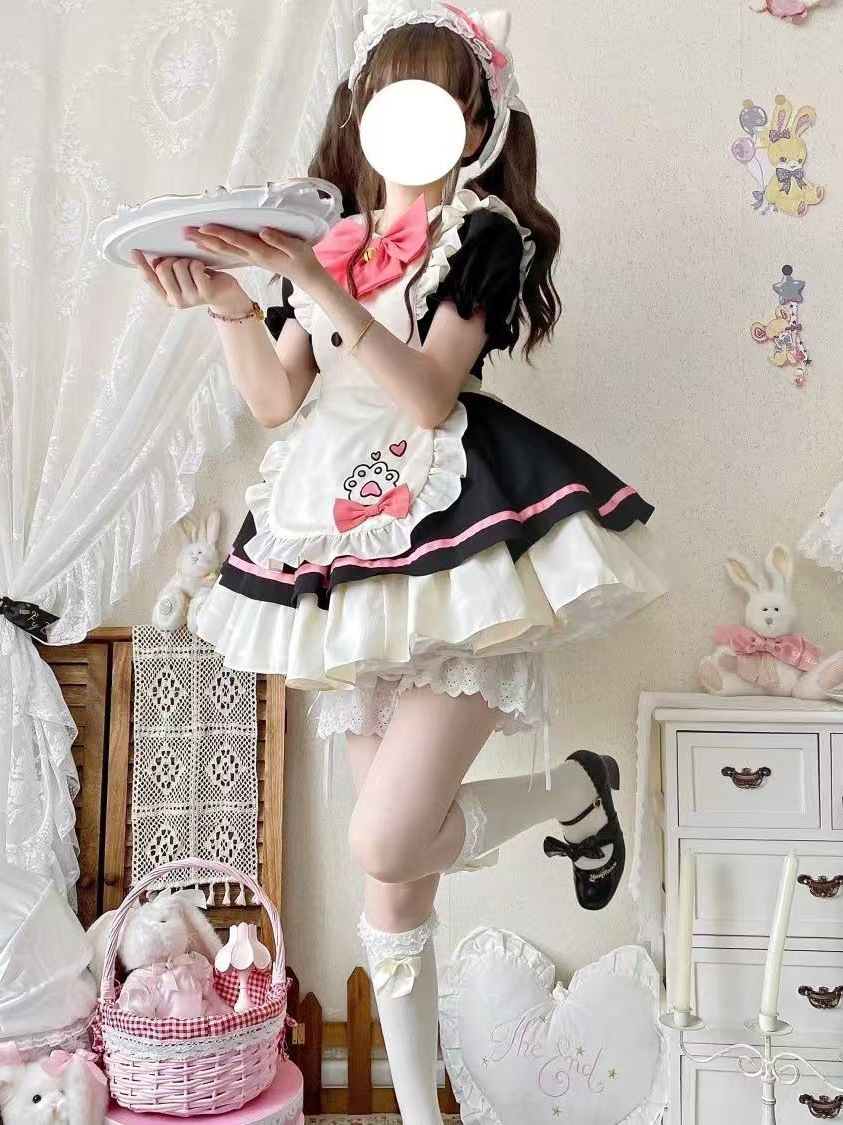 Костюм горничной для ресторана с котом, костюм COS в японском стиле, милое студенческое платье, фартук, двумерная Лолита Лолита
