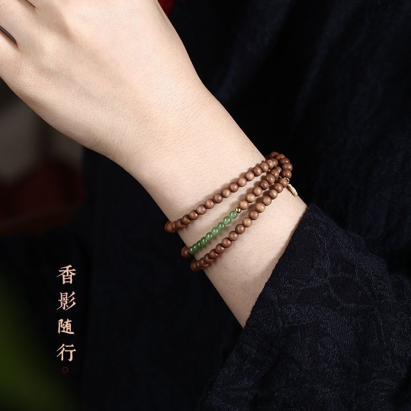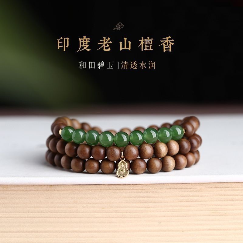 Аутентичный трехкруглый браслет из лаошаньского сандалового дерева с насыщенным ароматом и яшмой 6 Индийский браслет из лаошаньского сандалового дерева для женщин 2025