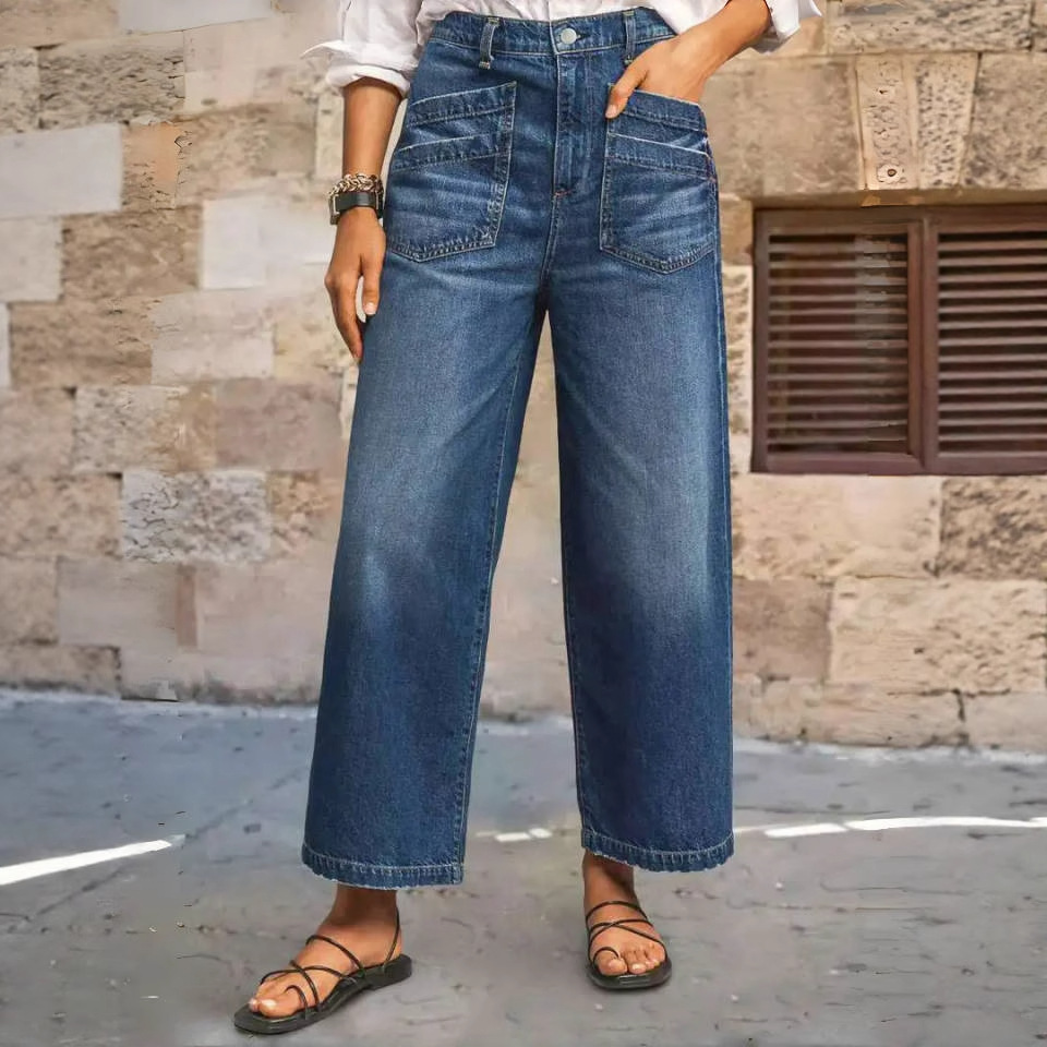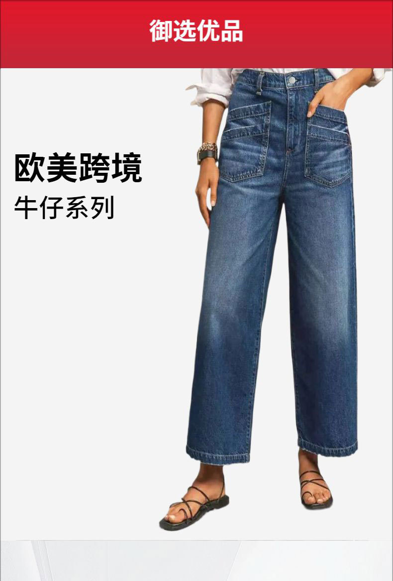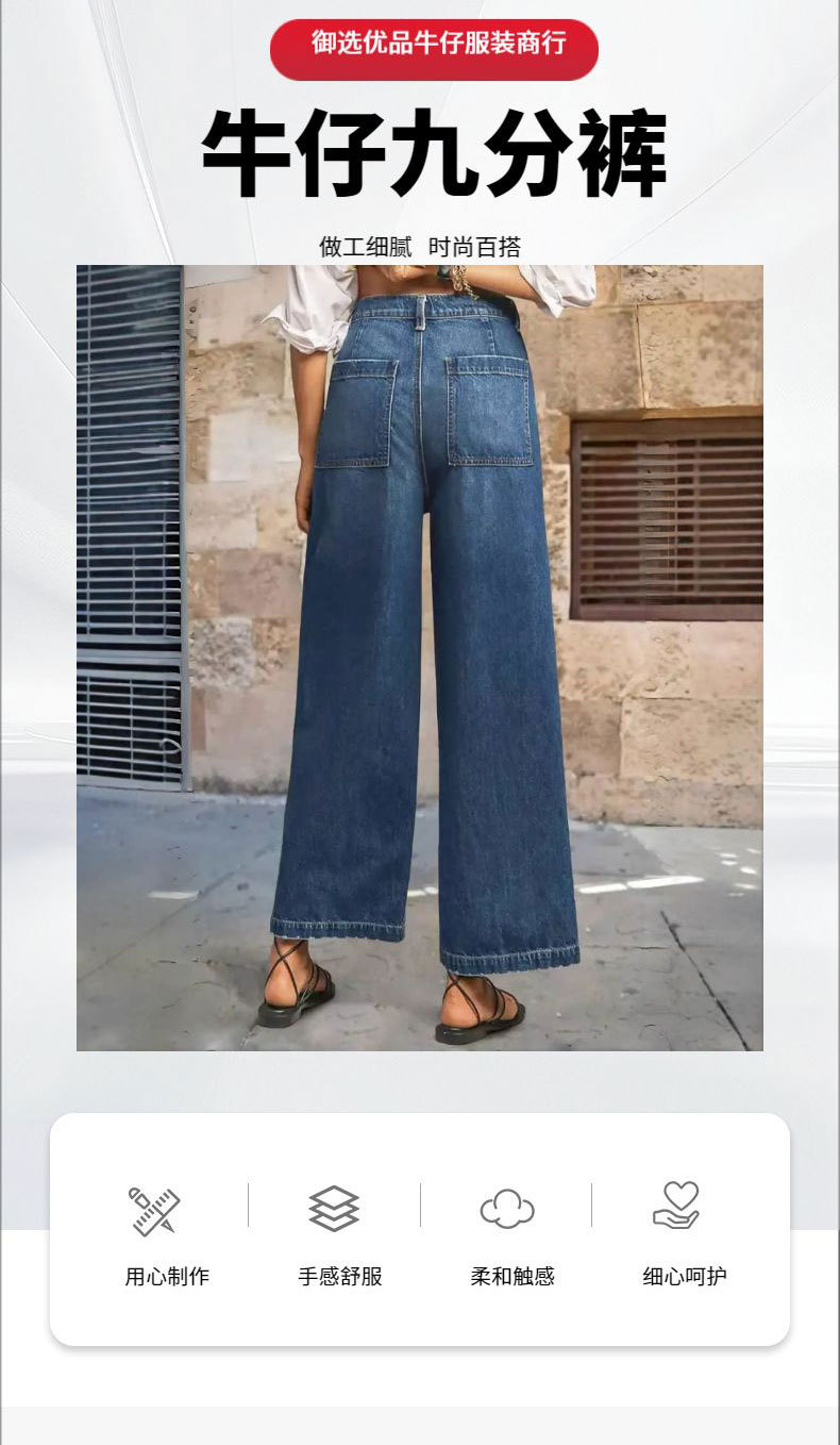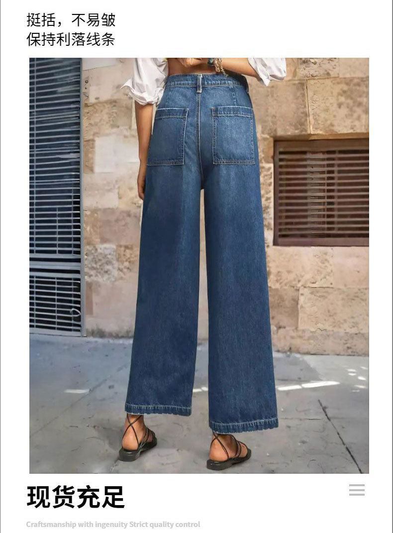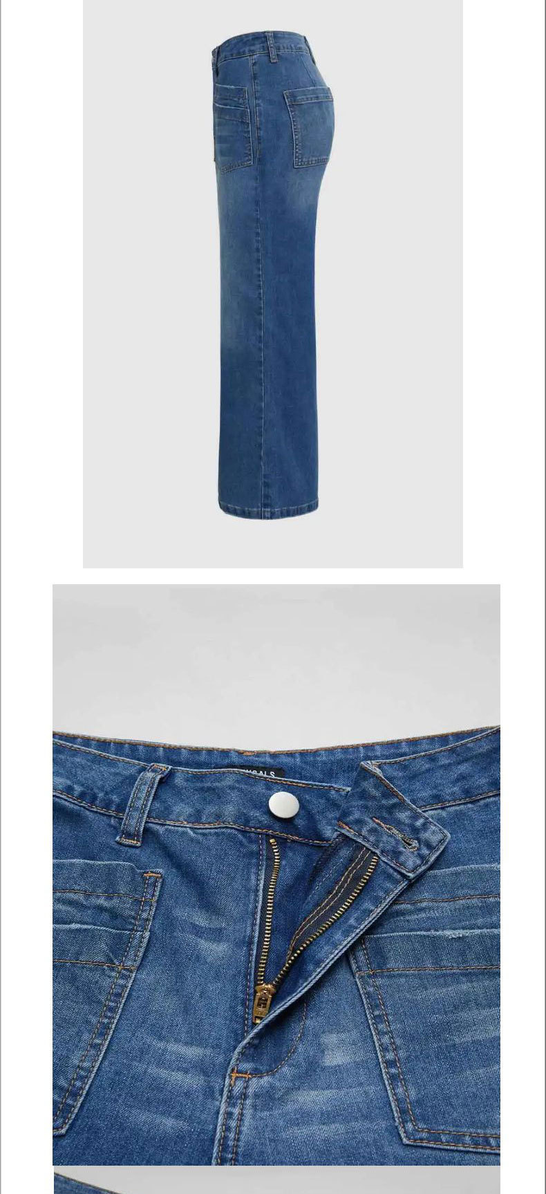 Европейские и американские трансграничные эластичные широкие джинсы со средней талией большого размера, потертые брюки в стиле ретро с наклонными карманами, брюки с девятью точками
