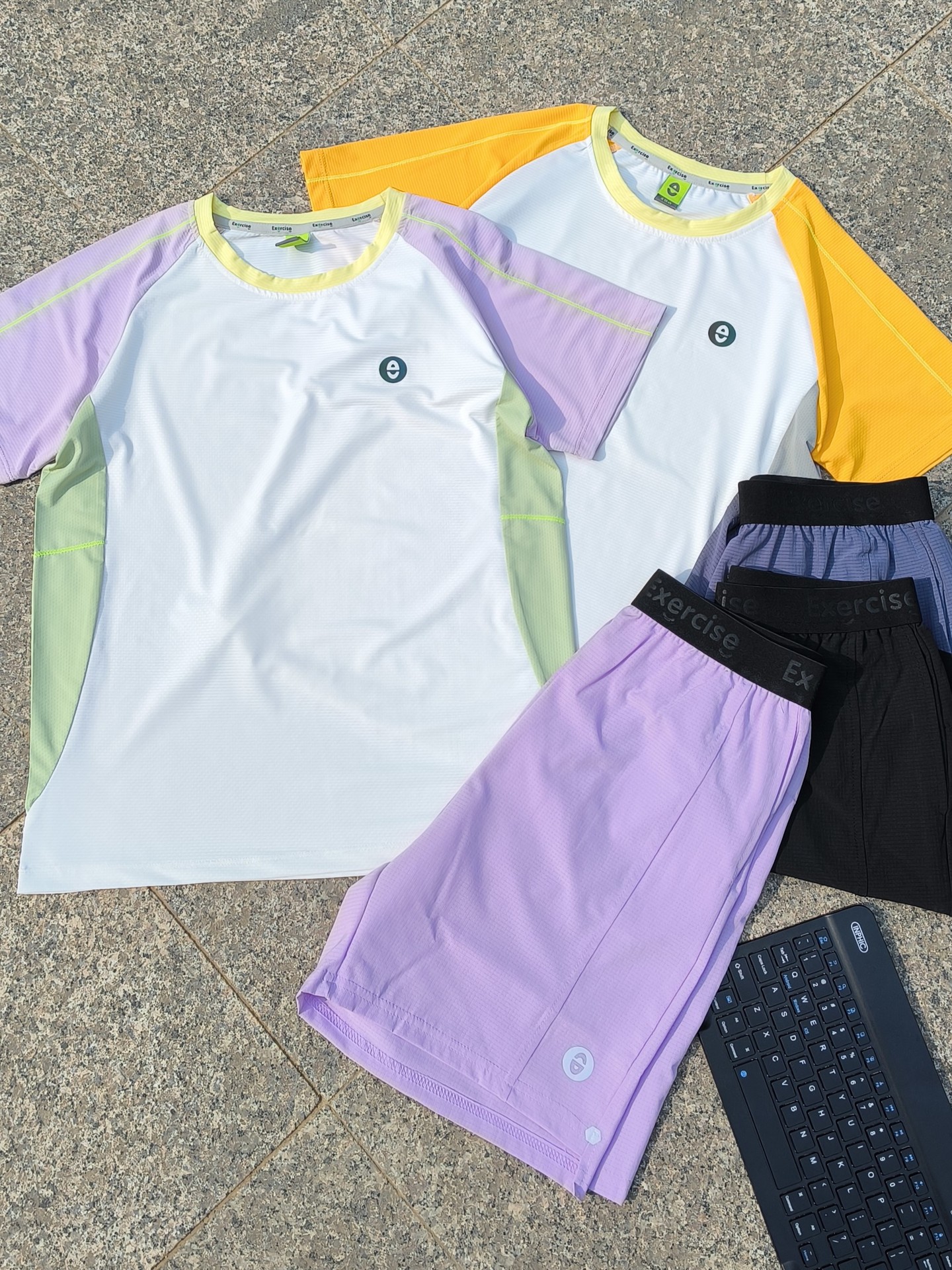 оранжевый; светло-фиолетовый; фиолетовые шорты; Синие и серые шорты; черные шорты