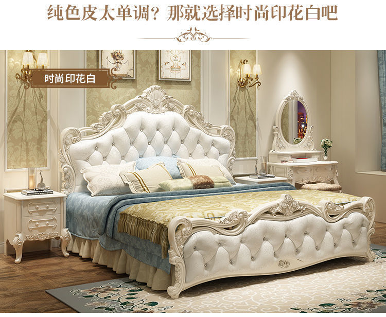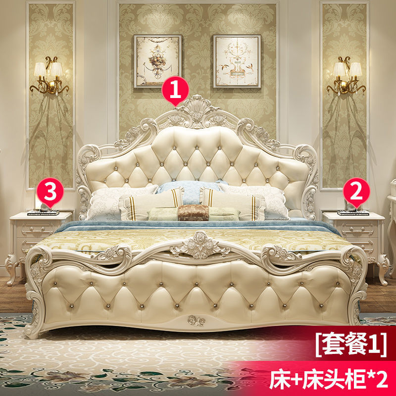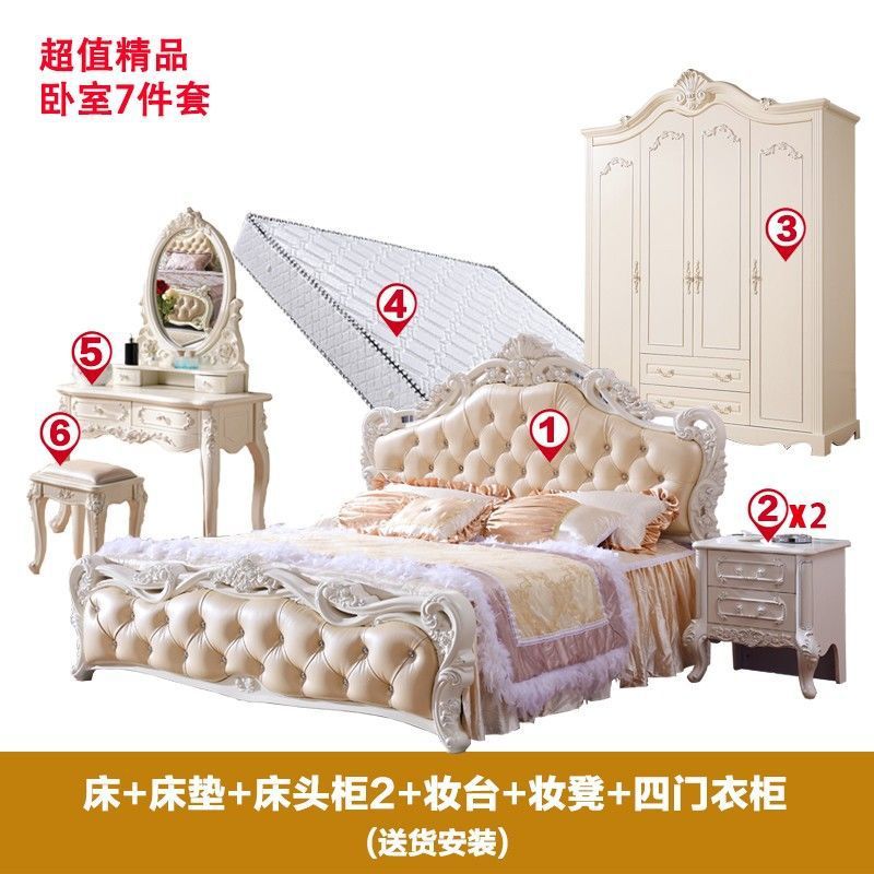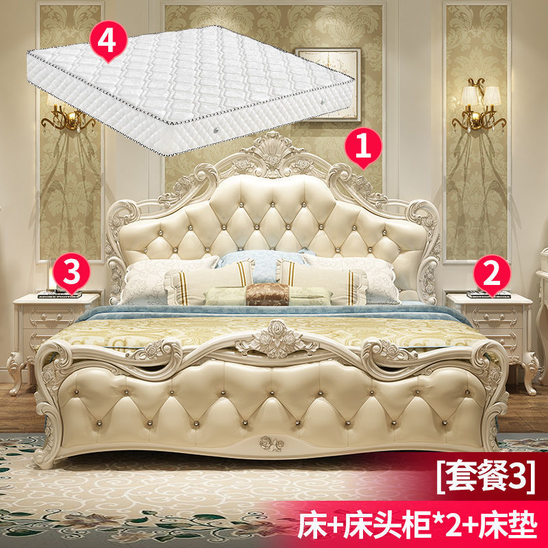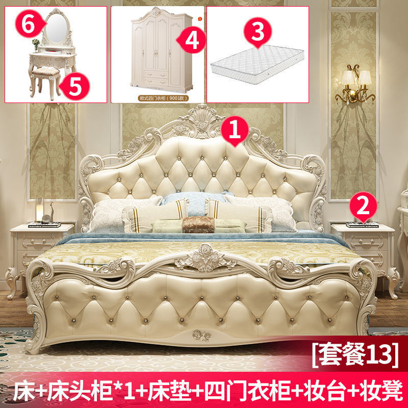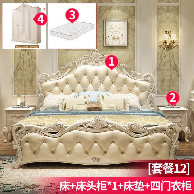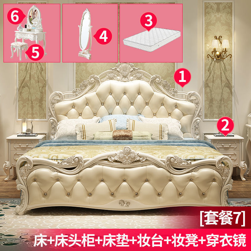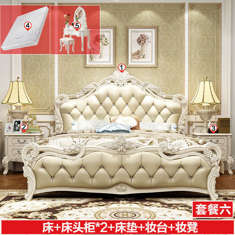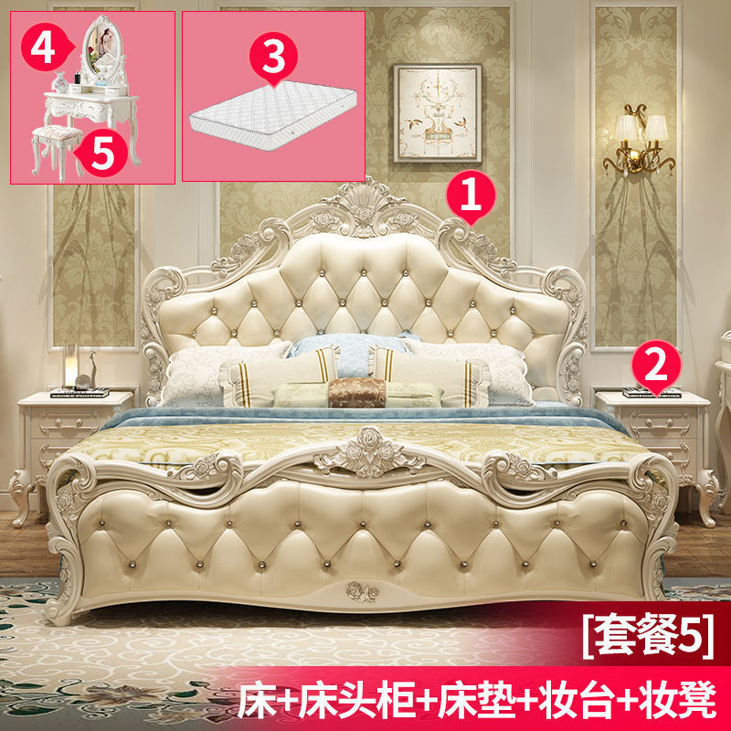 Высококачественная кровать в европейском стиле, двуспальная кровать, кожаная кровать принцессы, главная спальня, свадебная кровать, пасторальный роскошный резной мебельный комплект, комбинация