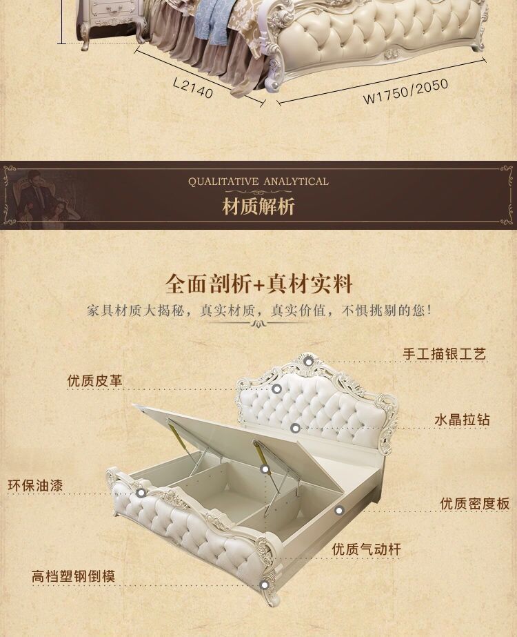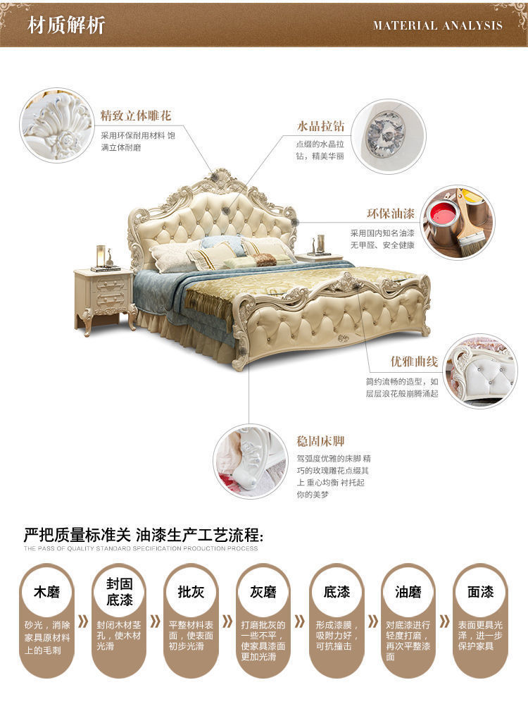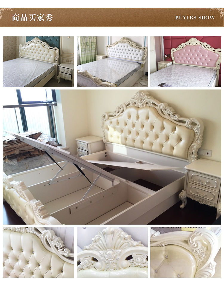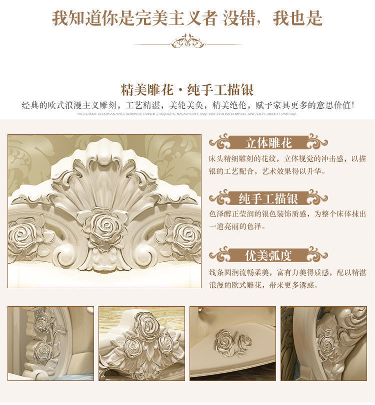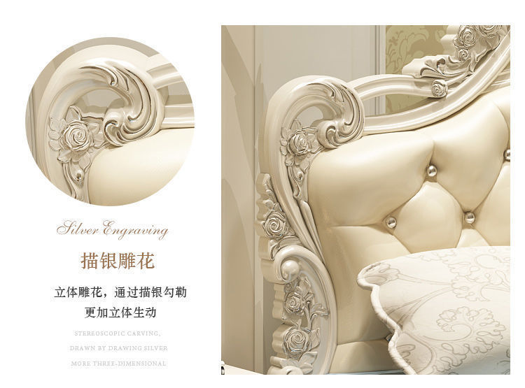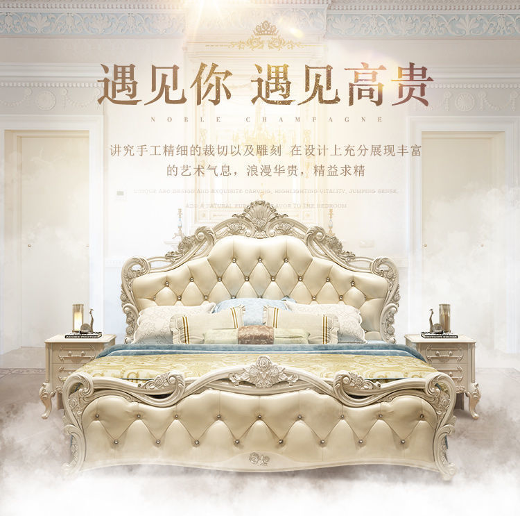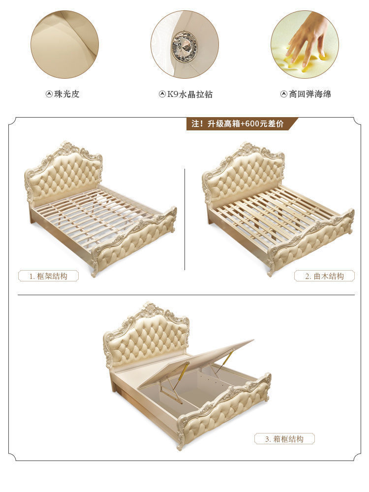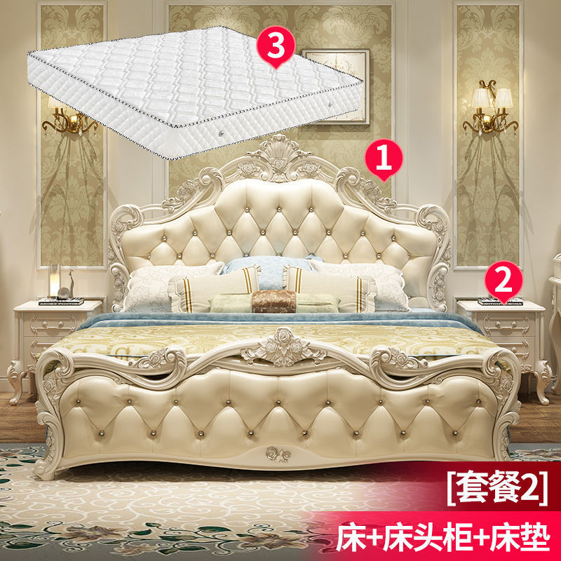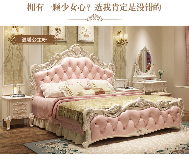 Высококачественная кровать в европейском стиле, двуспальная кровать, кожаная кровать принцессы, главная спальня, свадебная кровать, пасторальный роскошный резной мебельный комплект, комбинация