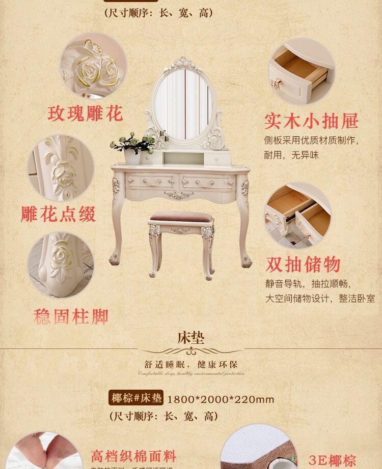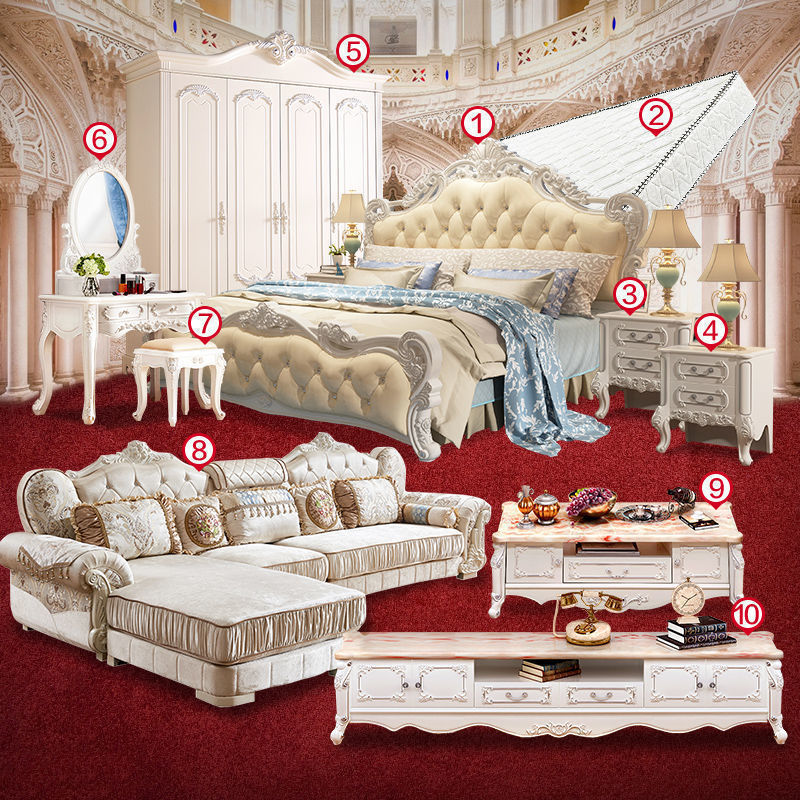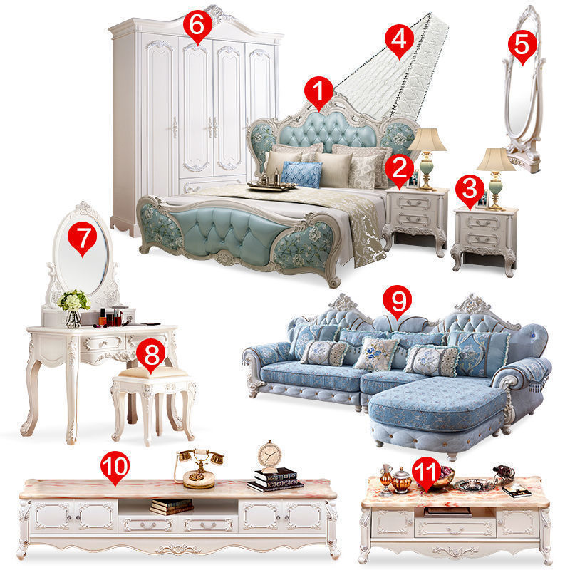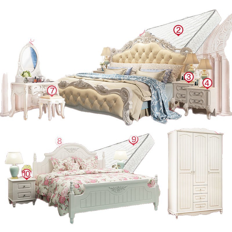 Кровать+матрас+прикроватная тумбочка*1; Кровать+прикроватная тумбочка*2; Кровать+матрас+прикроватная тумбочка*2; Кровать+матрас+прикроватная тумбочка*1+туалетный столик/табурет для макияжа; Набор из трех предметов + туалетный столик/табурет для макияжа + туалетное зеркало; Комплект из трех предметов + четырехдверный шкаф.; Комплект из трех предметов + туалетный столик/табурет для макияжа + четырехдверный шкаф; Кровать+прикроватная тумбочка*2+матрас+табурет для туалетного столика; Кровать+матрас+прикроватная тумбочка*2+туалетный столик+шкаф; Набор из восьми предметов; Набор из десяти предметов для всего дома 1; Набор из девяти предметов для всего дома.; Набор из десяти предметов для всего дома.