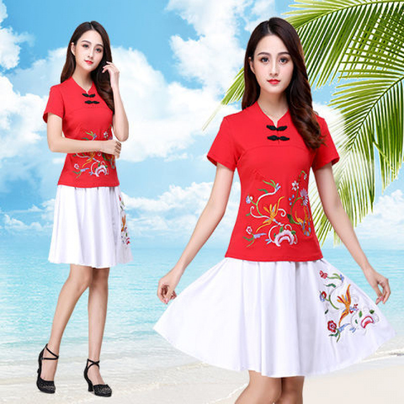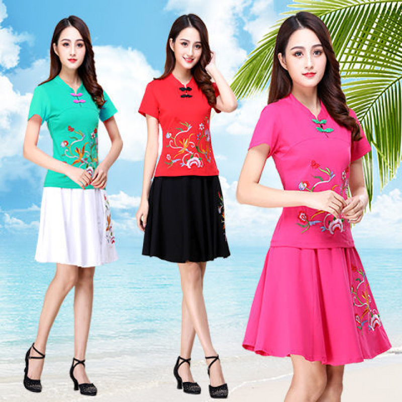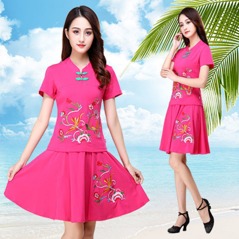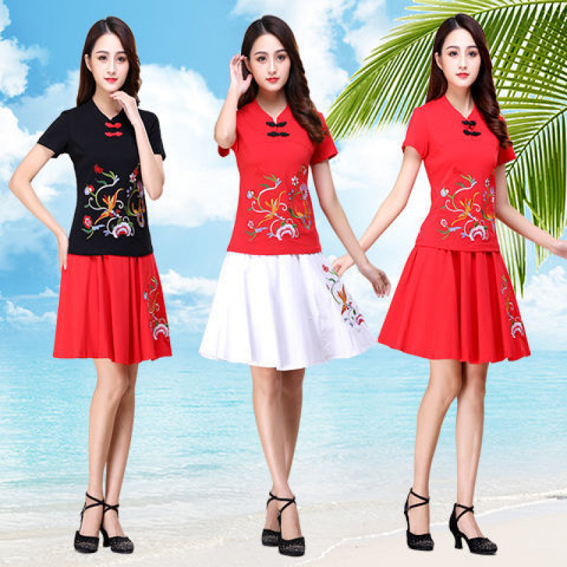 Новая этническая вышитая одежда для выступлений, одежда для классического танца, длинная юбка большого размера, короткая юбка, одежда для квадратных танцев, женский костюм