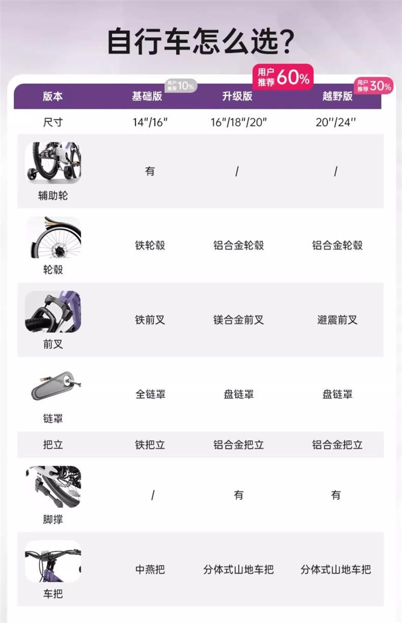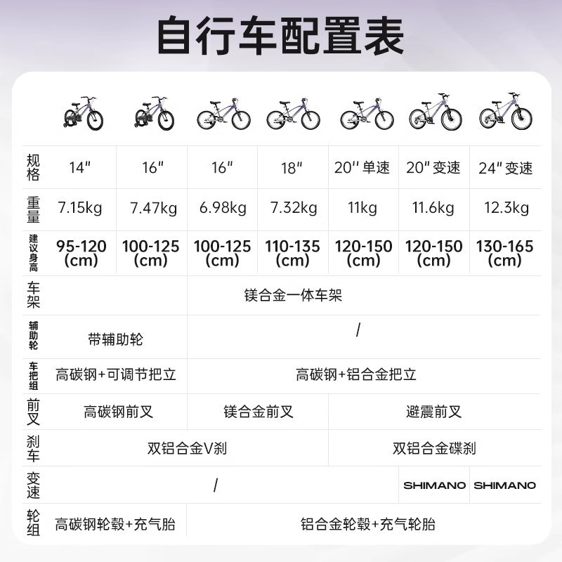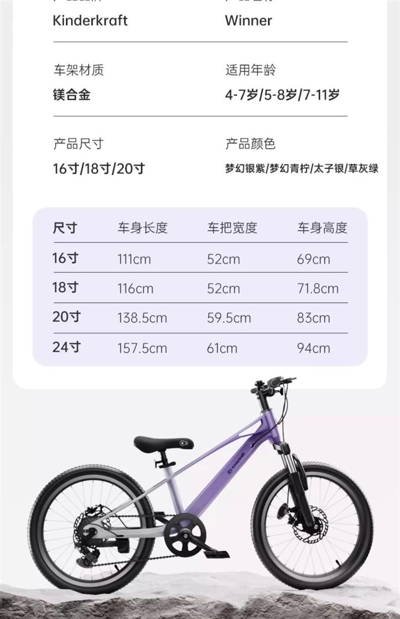 [14inch Basic Edition] [Рекомендуется для детей 3–6 лет, рост 90–120 см] — Принц Серебро; [14inch Basic Edition] [Рекомендуется для детей 3–6 лет, рост 90–120 см] — Fantasy Purple; [16inch Basic Edition] [Рекомендуется для детей 4–7 лет, рост 100–125 см] — Принц Серебро.; [Базовое издание 16inch] [Рекомендуется для детей 4–7 лет, рост 100–125 см] — Фиолетовый сон; [Обновленная версия 16inch г.] [Рекомендуется для детей 4–7 лет, рост 100–125 см] — Принц Серебро; [Обновленная версия 16inch] [Рекомендуется для детей 4–7 лет, рост 100–125 см] — Fantasy Silver Purple; [18inch обновленная версия] [Рекомендуется для детей 5–8 лет, рост 110–135 см] — Принц Серебро; [Обновленная версия 18inch] [Рекомендуется для детей 5–8 лет, рост 110–135 см] — Fantasy Silver Purple; [Обновленная версия] [Рекомендуется для детей 5-8 лет, рост 110-135 см] - Серо-зеленый меланж; [Обновленная версия 20inch г.] [Рекомендуется для детей 6–10 лет, рост 120–150 см] — Принц Сильвер; [Обновленная версия] [Рекомендуется для детей от 6 до 10 лет, ростом 120–150 см] — Мечтательный фиолетовый; [Обновленная версия] [Рекомендуется для детей 6-10 лет, рост 120-150 см] - Серо-зеленый меланж; 【Внедорожная версия】【7-скоростная коробка передач Shimano рекомендуется для детей от 6 до 10 лет, Prince Silver】; 【Молодежный велосипед】【7-скоростная переключаемая система Shimano, рекомендуется для возраста 10–15 лет, серебристый】; 24inch Молодежный велосипед] [Фиолетовый, 7-скоростная трансмиссия, рекомендуется для мальчиков 10-15 лет, модель Prince Silver