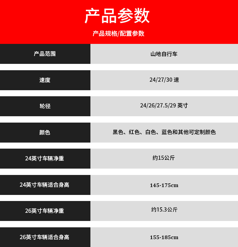 (24-26) дюймов 21 скорость; (24-26) дюймов 24 скорости; (24-26) дюймов 27 скоростей; (27,5) дюймов, 21 скорость; (27,5) дюймов, 24 скорости; (27,5) дюймов, 27 скоростей; (29) дюймов, 21 скорость; (29) дюймов, 24 скорости; (29) дюймов, 27 скоростей