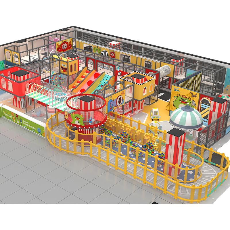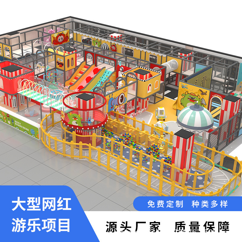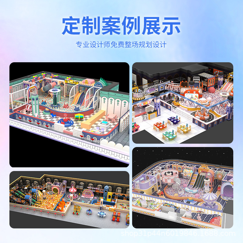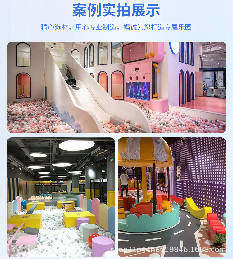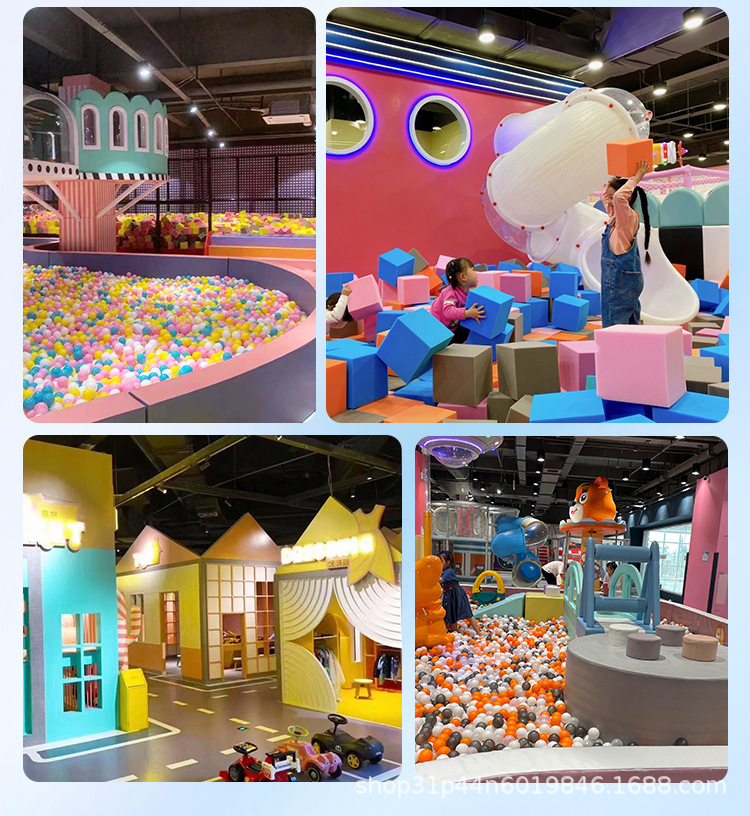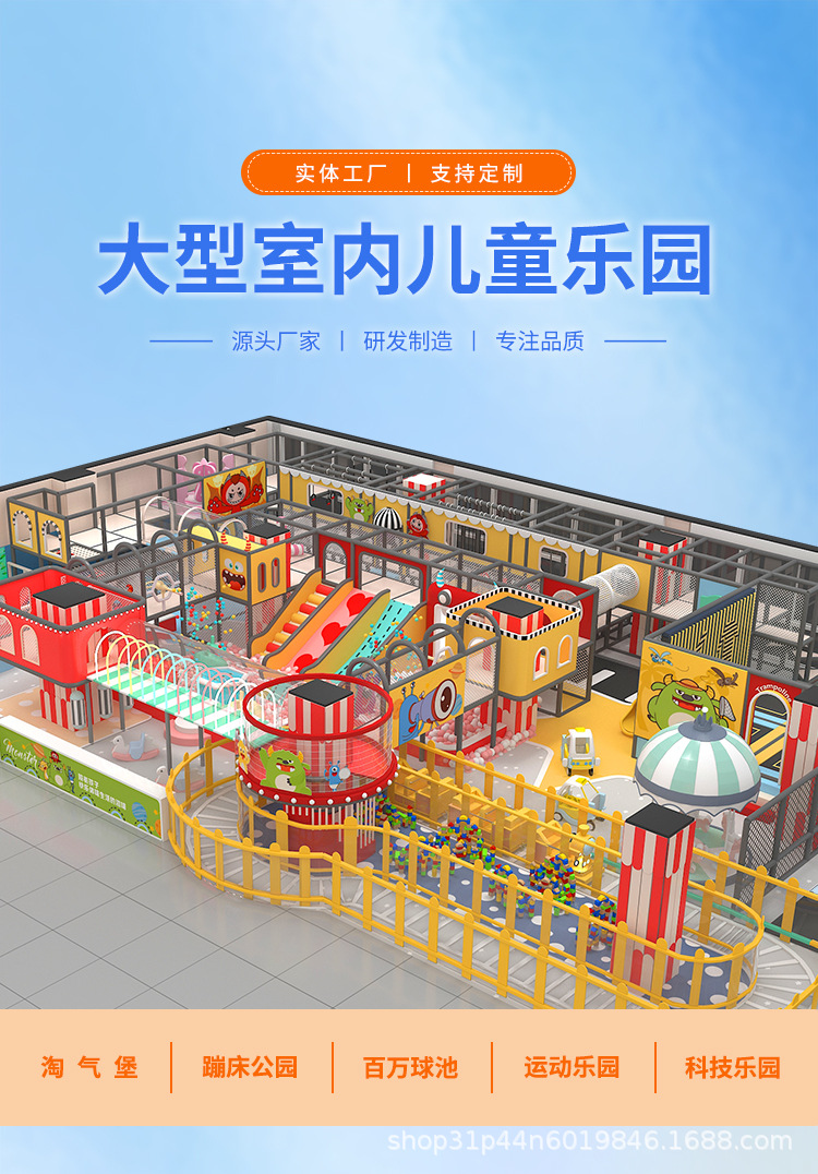 Детский крытый парк с большими батутами, детский игровой замок, батут, аэросильный трамплин, сухая снежная горка