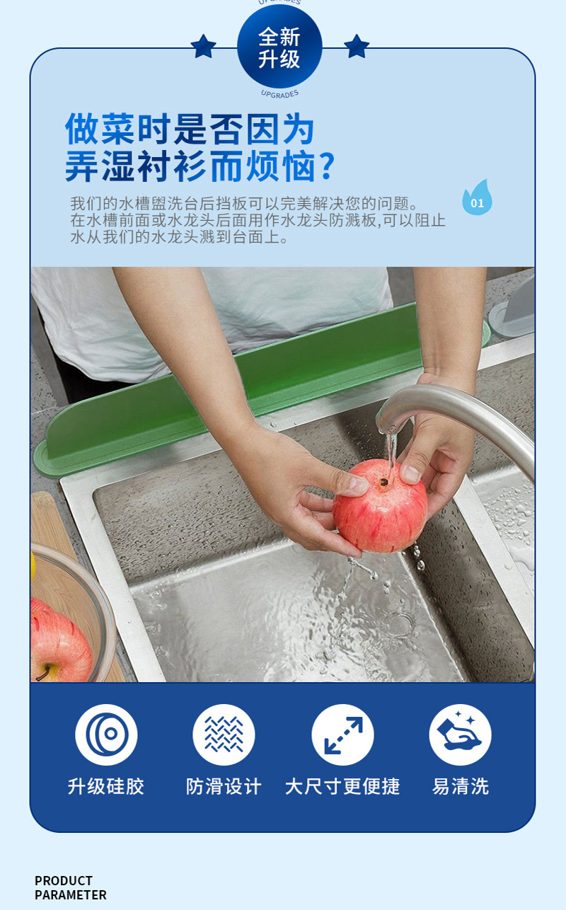 Удлиненная силиконовая раковина для умывальника, удерживающая воду пластина, перегородка для раковины с защитой от брызг, кухонная силиконовая полоса, удерживающая воду