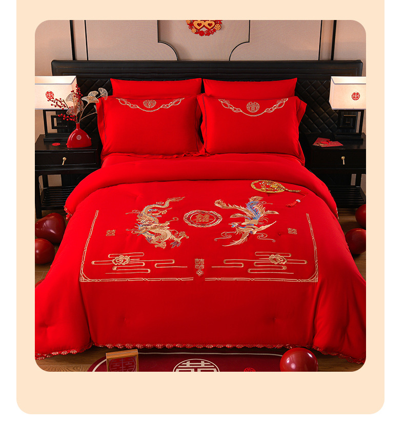 Свадебная комната, одеяло из чистого хлопка и шелка, вышивка дракона и феникса, большое красное одеяло для молодоженов, праздничное осенне-зимнее одеяло, свадебное постельное белье