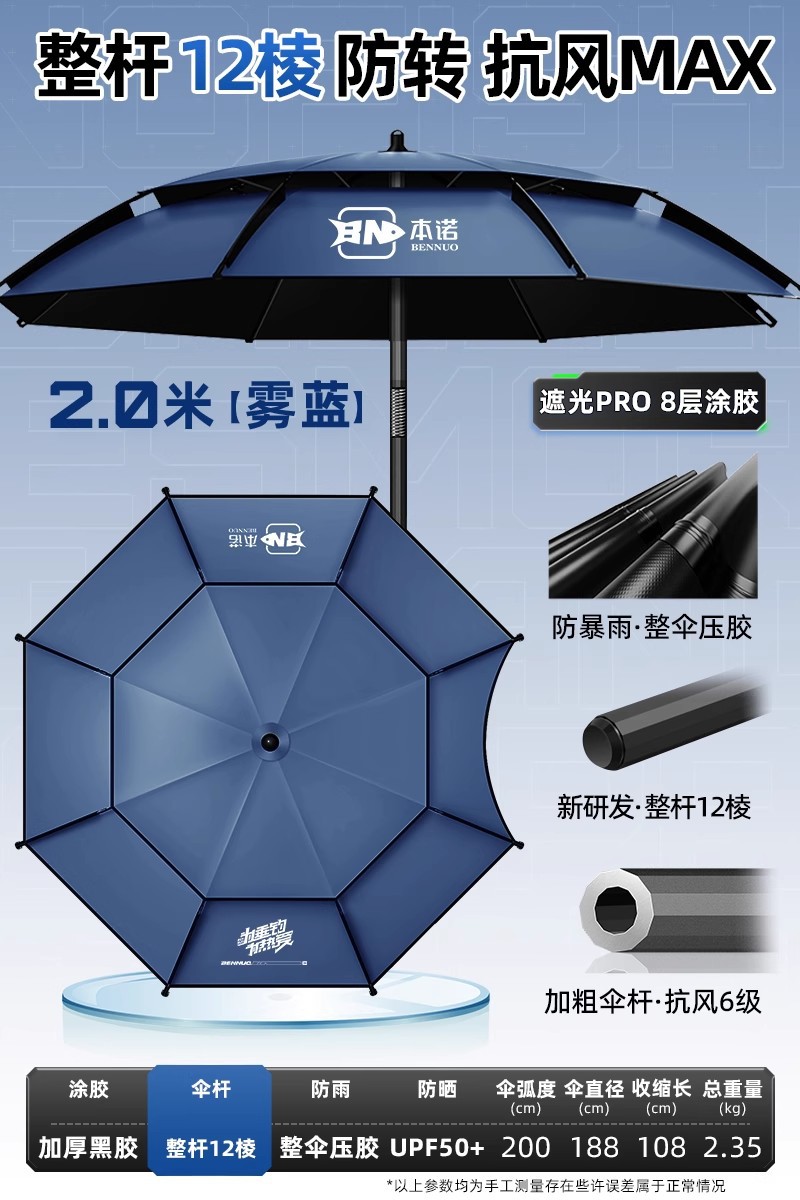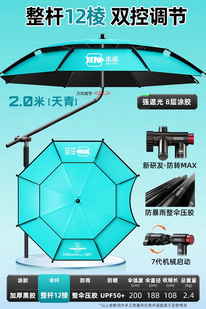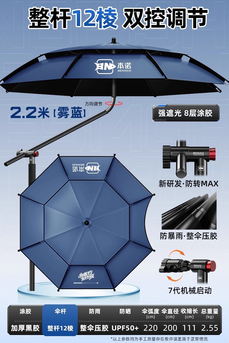 Benno 2025 новый рыболовный зонт универсальный уличный солнцезащитный и непромокаемый большой рыболовный зонт против сильного ветра специальный зонт для рыбалки