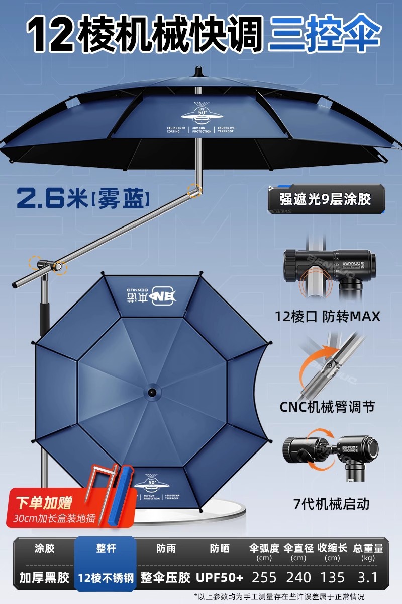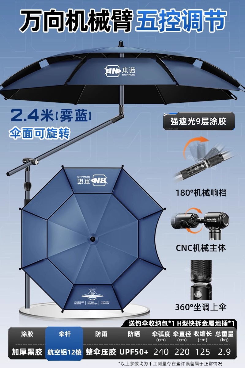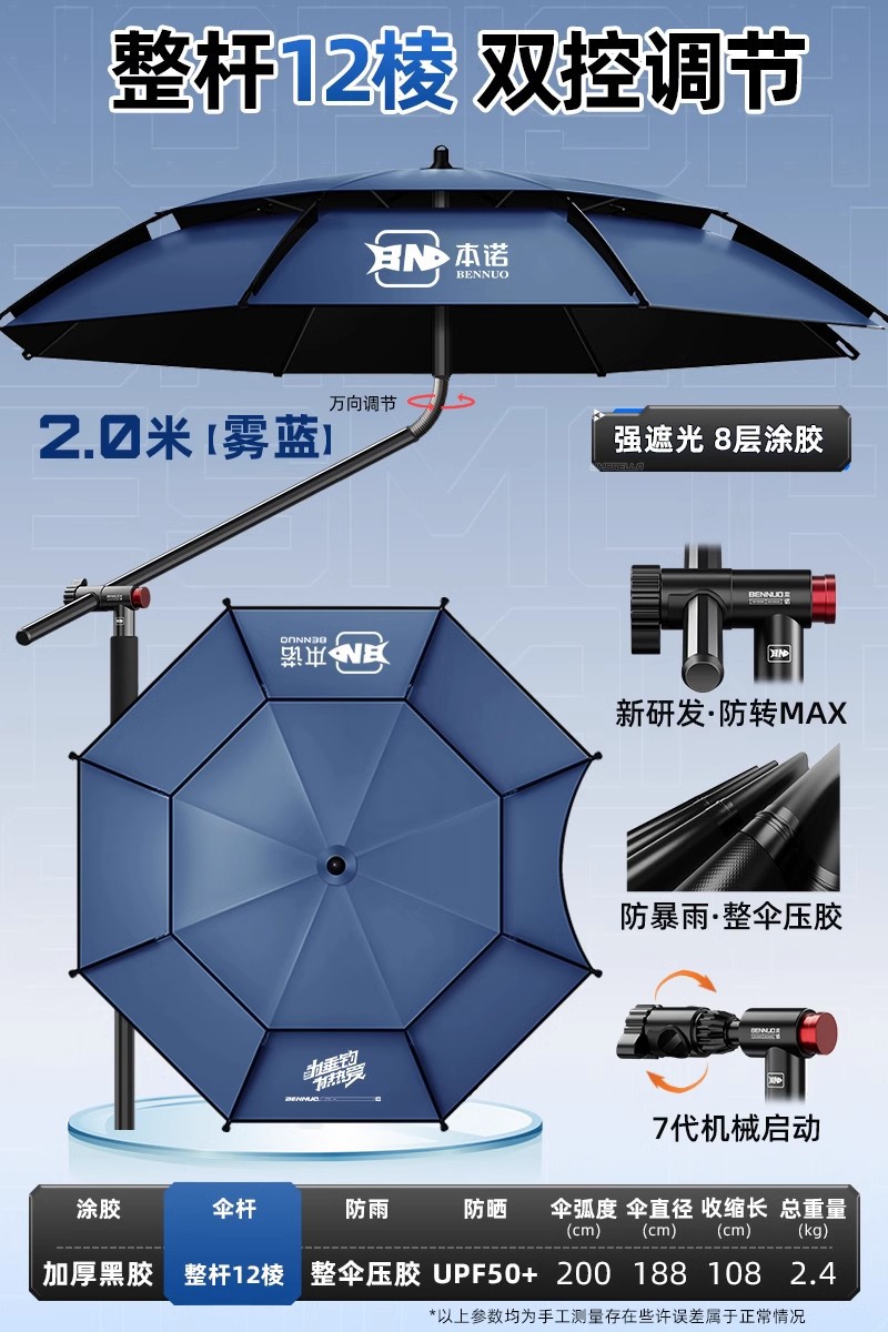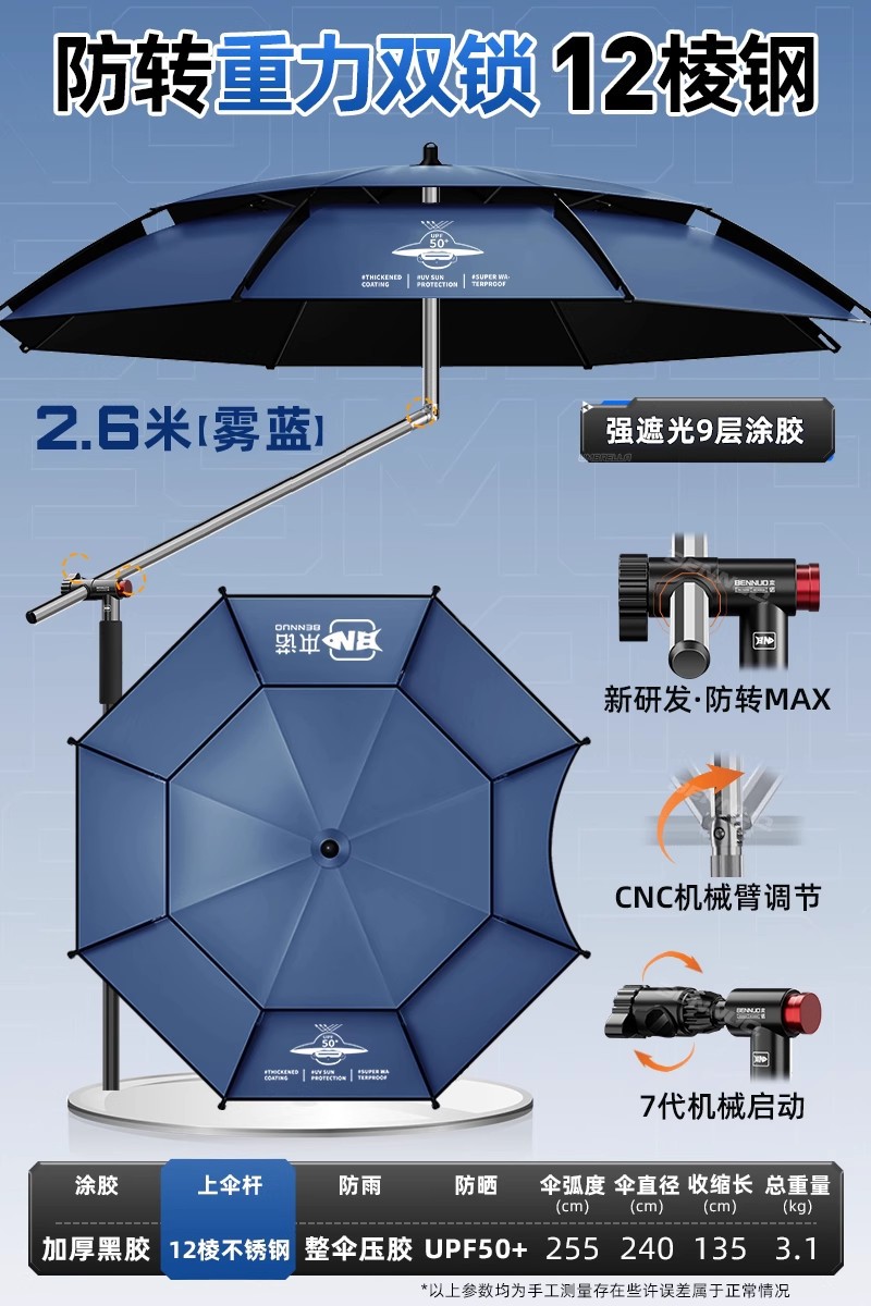 Benno 2025 новый рыболовный зонт универсальный уличный солнцезащитный и непромокаемый большой рыболовный зонт против сильного ветра специальный зонт для рыбалки
