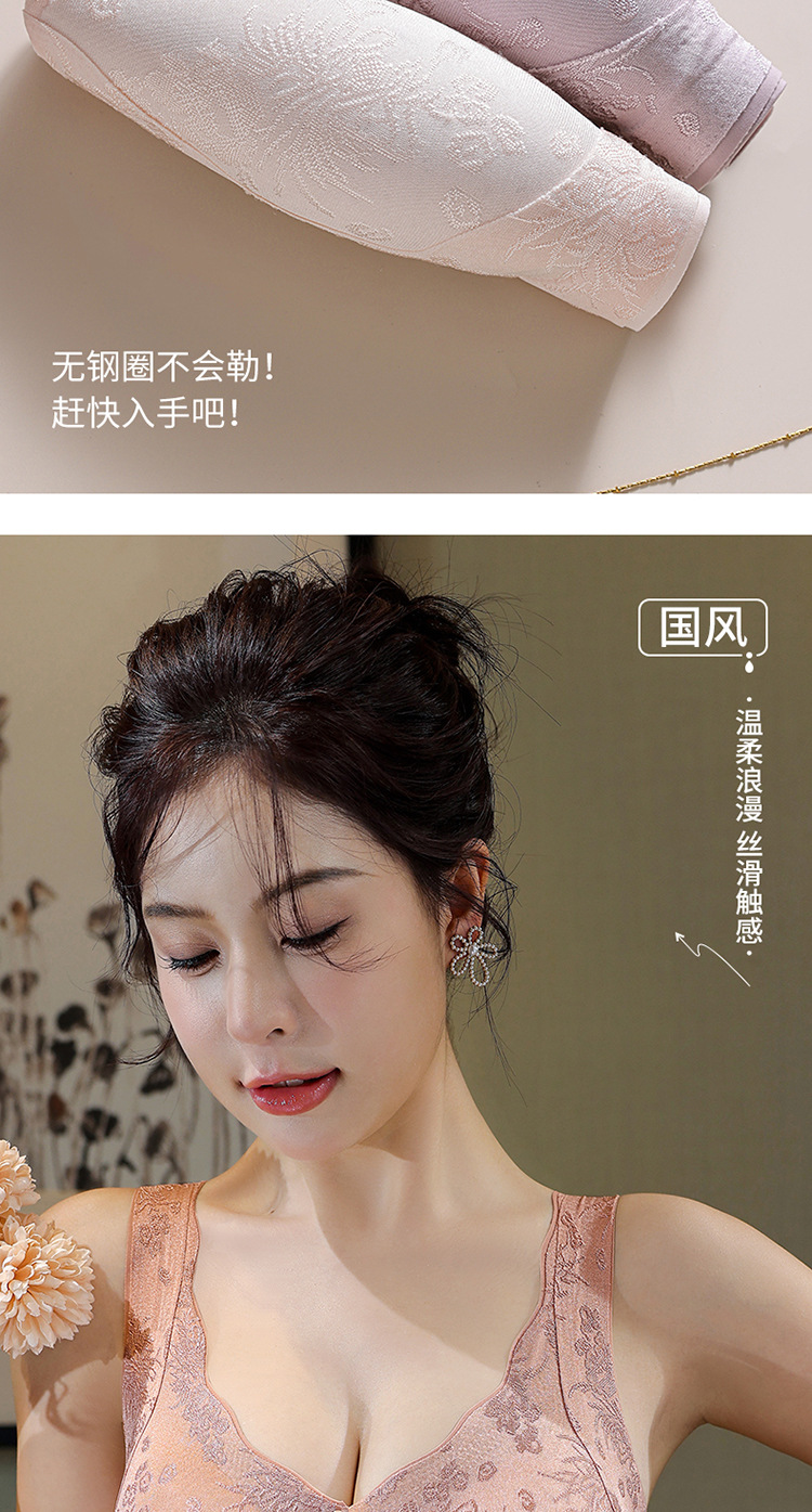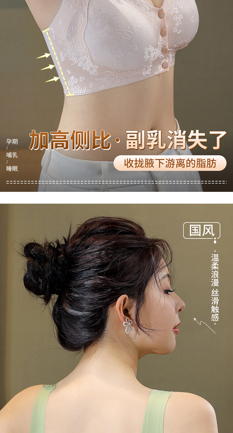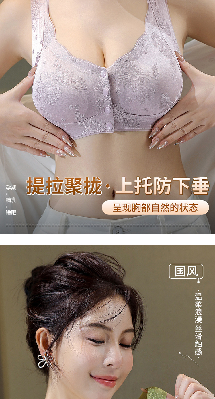 Оригинальный бесшовный бюстгальтер из ледяного шелка в китайском стиле с тиснением на пуговицах спереди для женщин, антипровисающий красивый бюстгальтер на спине, жилет большого размера