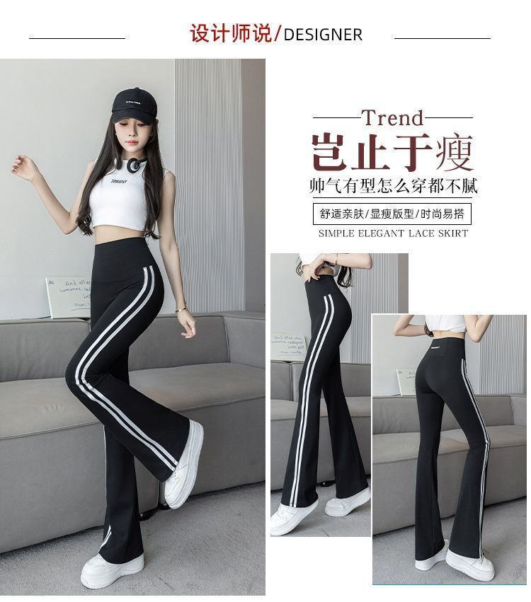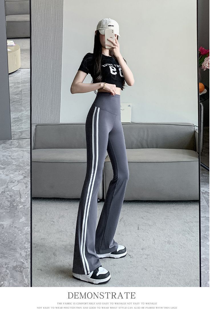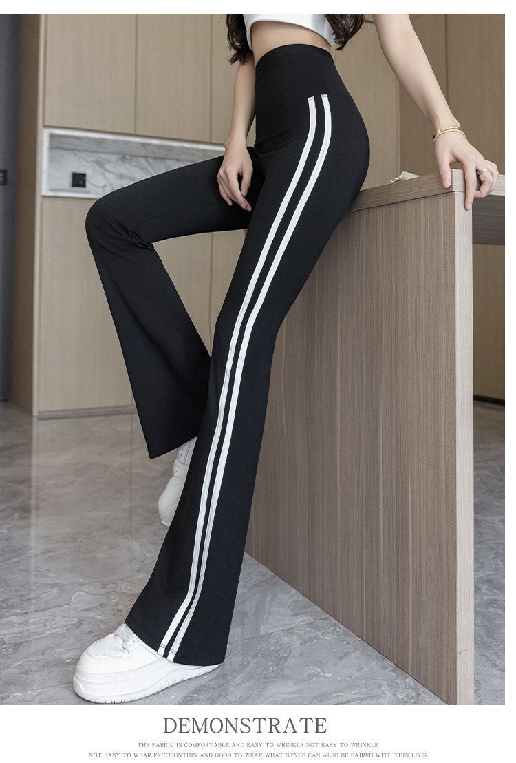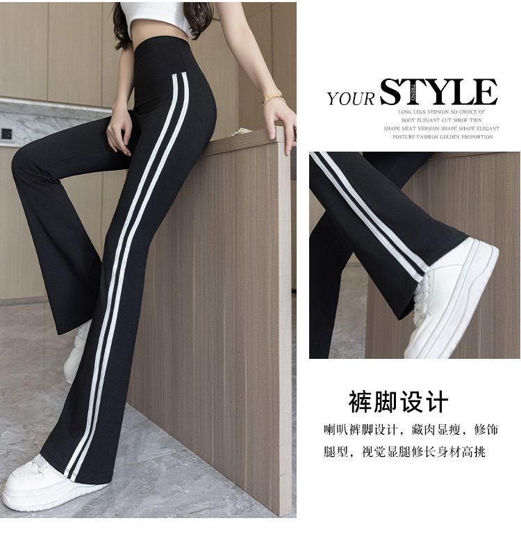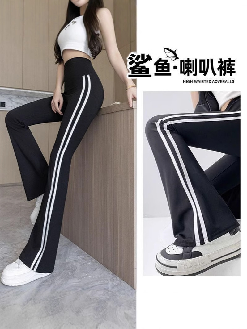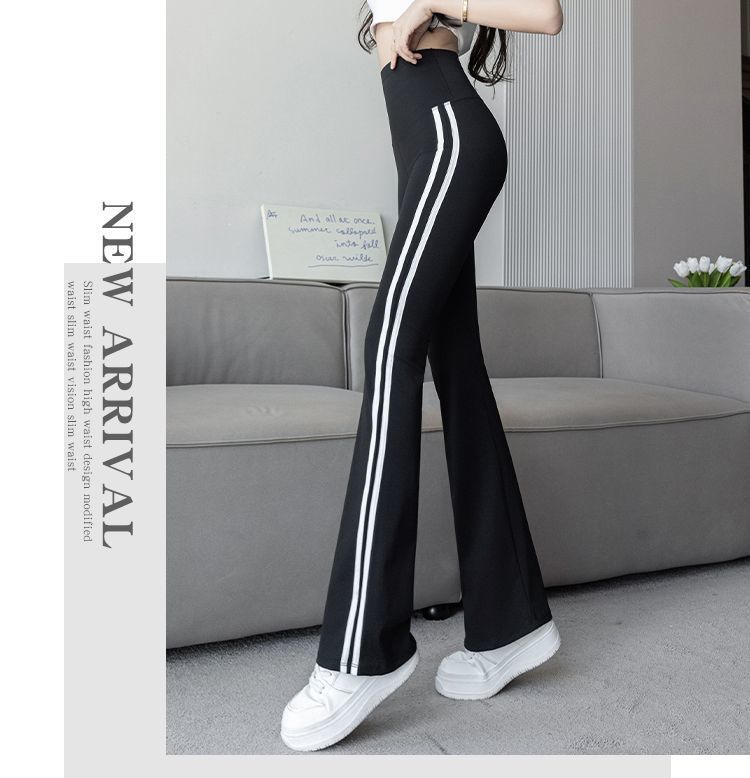 Полосатые расклешенные брюки для женщин 2025, новые летние тонкие черные повседневные брюки из ледяного шелка для йоги, расклешенные брюки в форме акулы