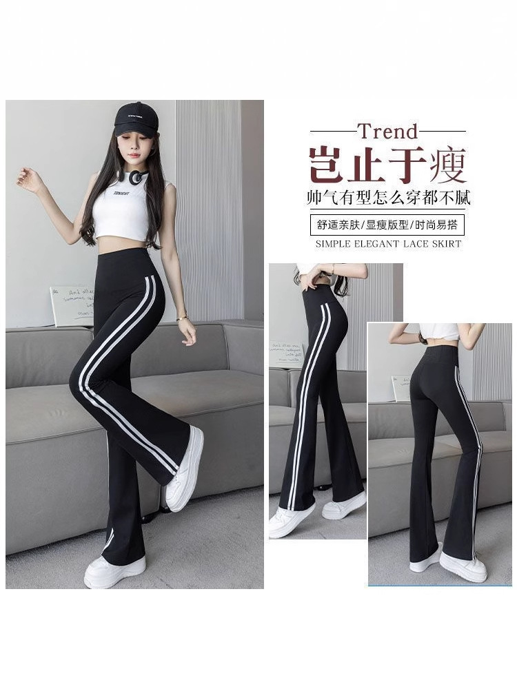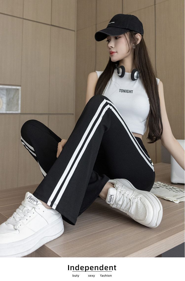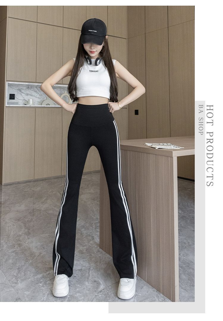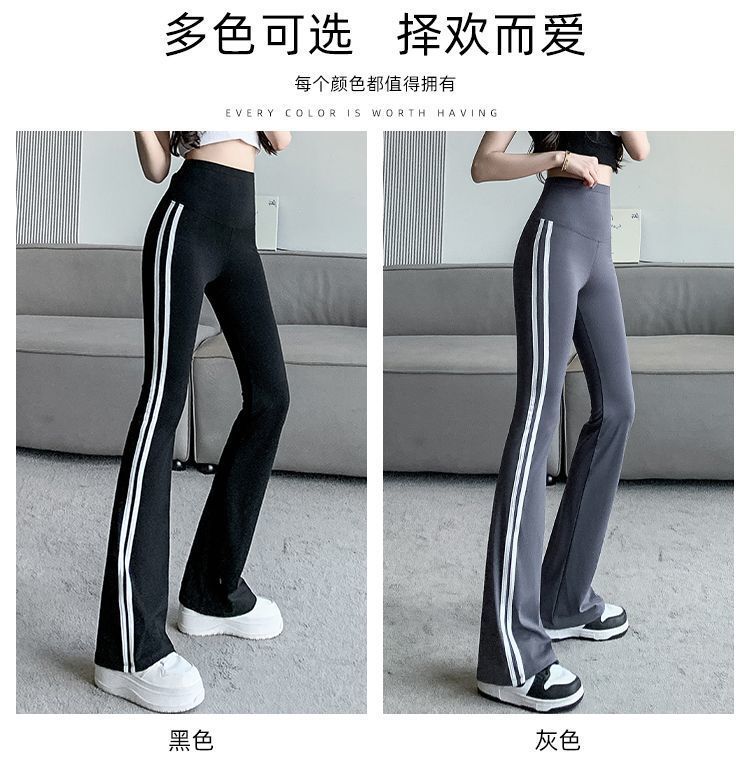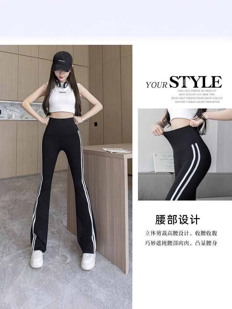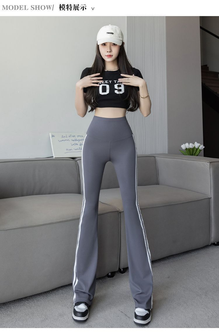 Полосатые расклешенные брюки для женщин 2025, новые летние тонкие черные повседневные брюки из ледяного шелка для йоги, расклешенные брюки в форме акулы