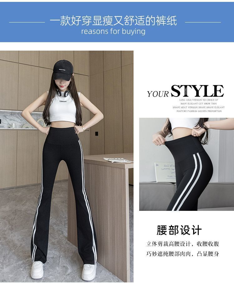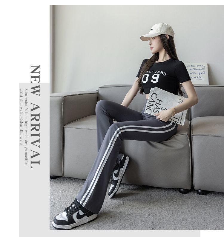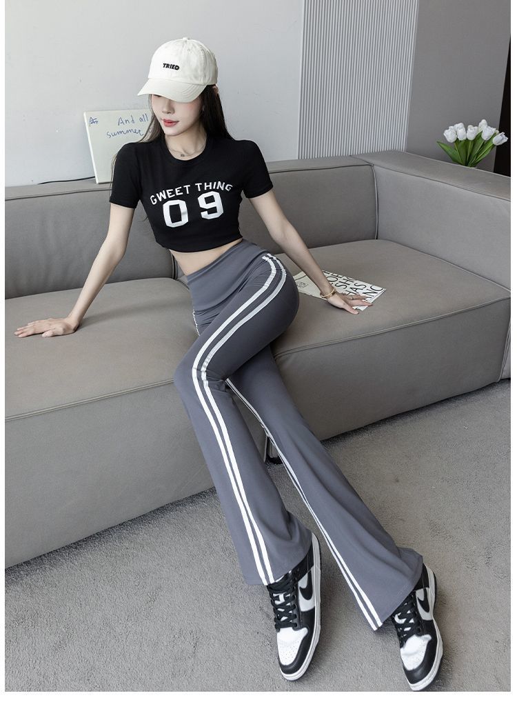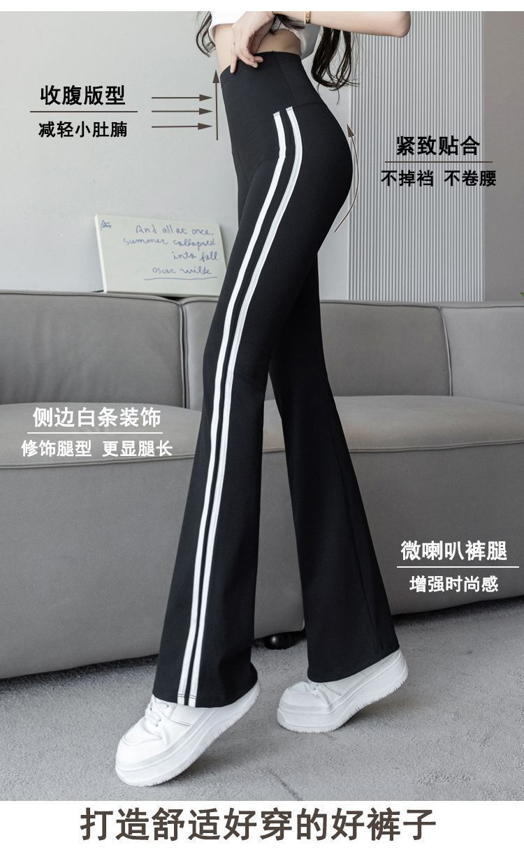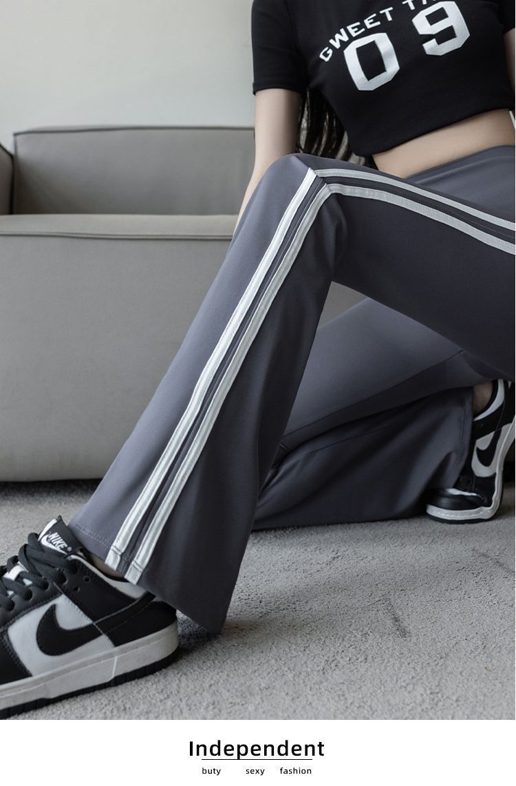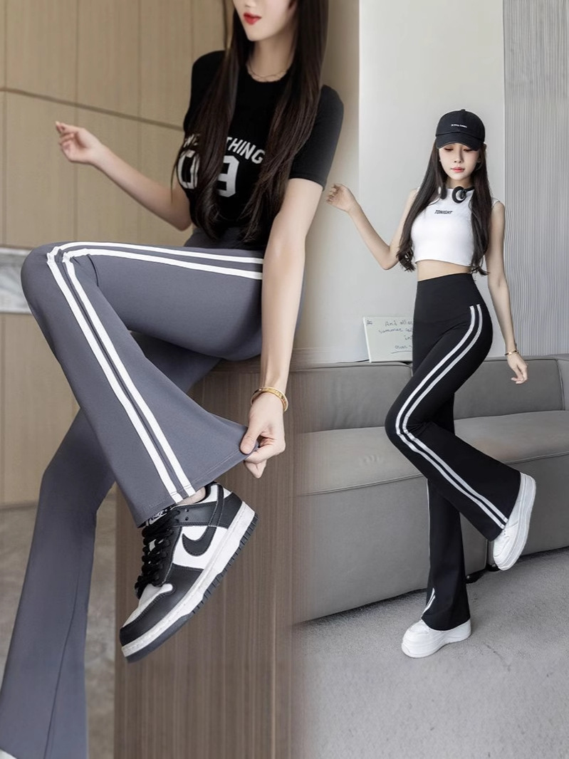 Полосатые расклешенные брюки для женщин 2025, новые летние тонкие черные повседневные брюки из ледяного шелка для йоги, расклешенные брюки в форме акулы