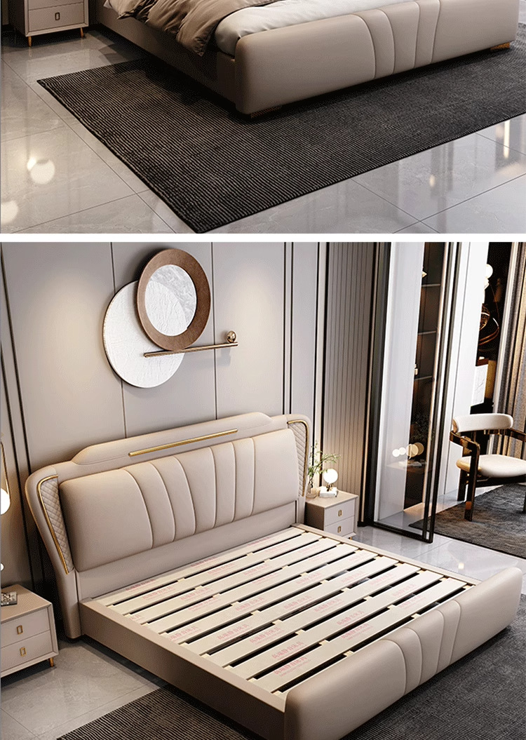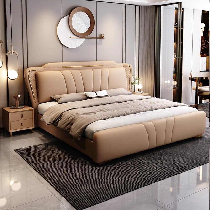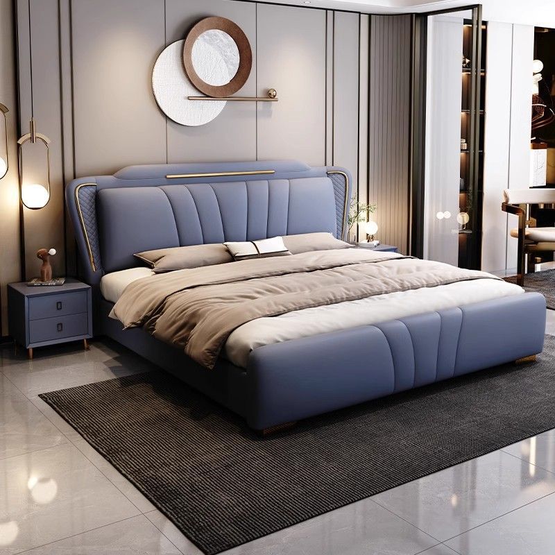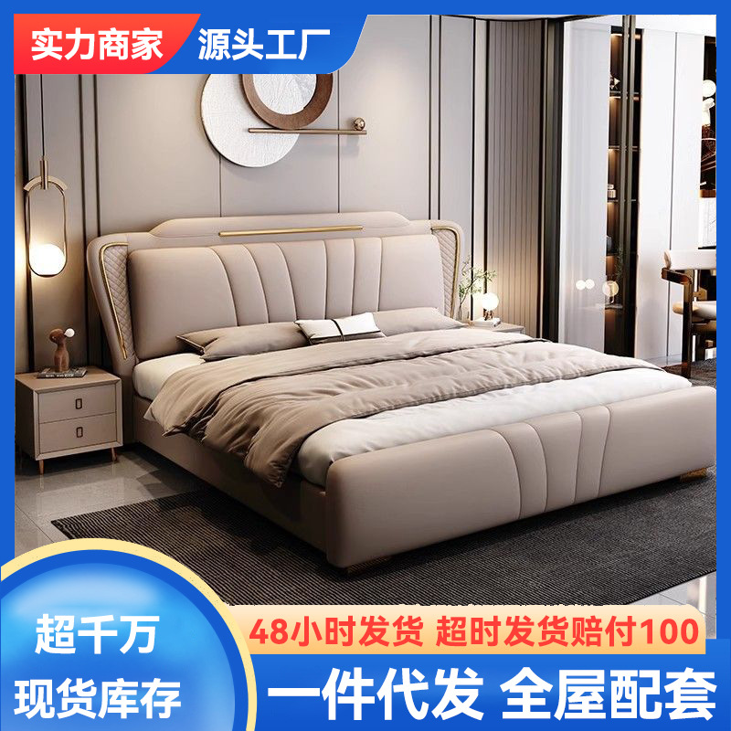 Современный простой доступный стиль люкс, мягкая кровать 1,5 размера, кожаная кровать для маленькой квартиры, модная кровать для главной спальни, элитная двуспальная кровать в минималистском стиле.