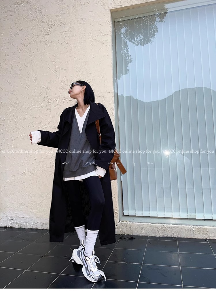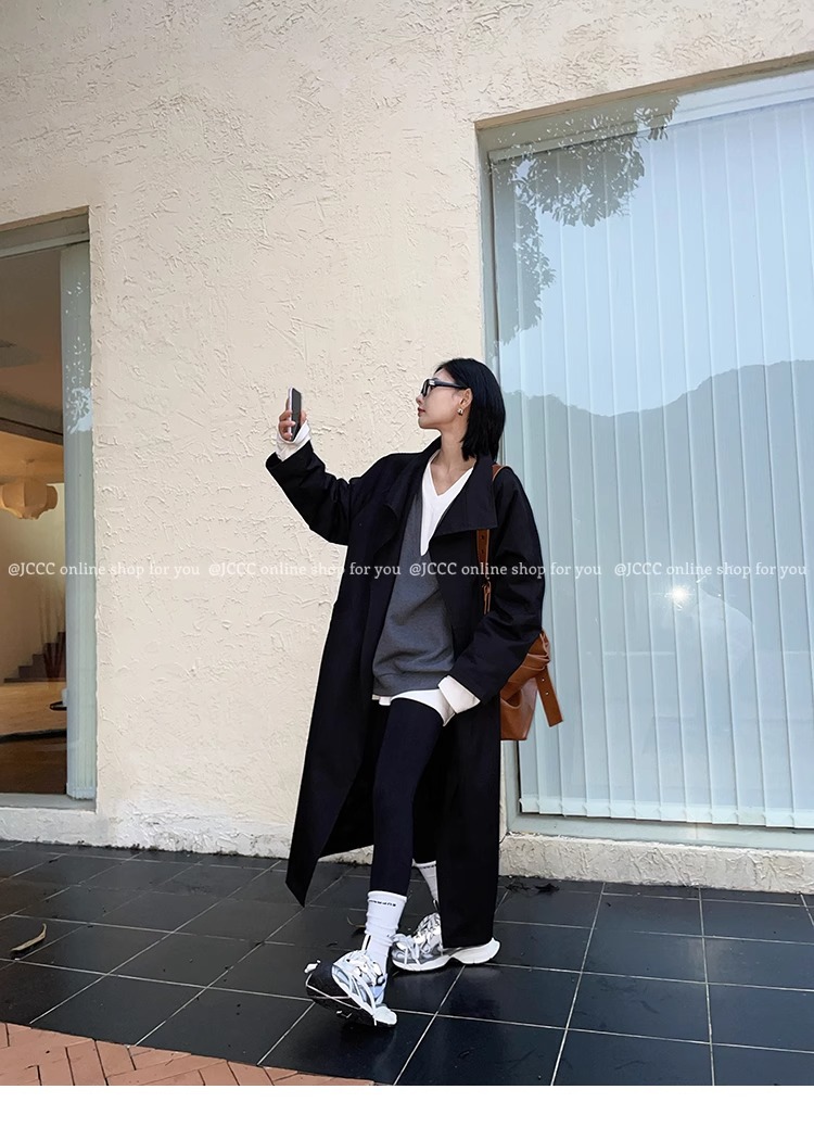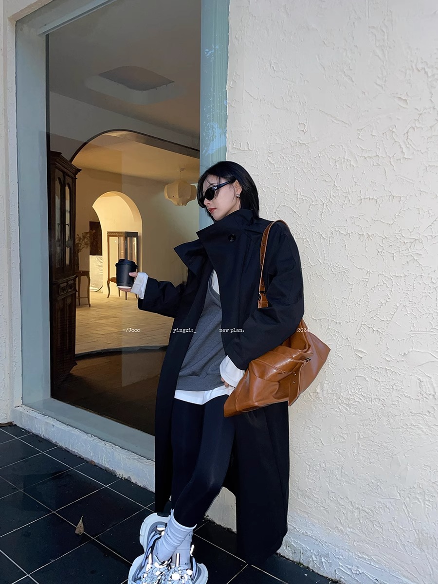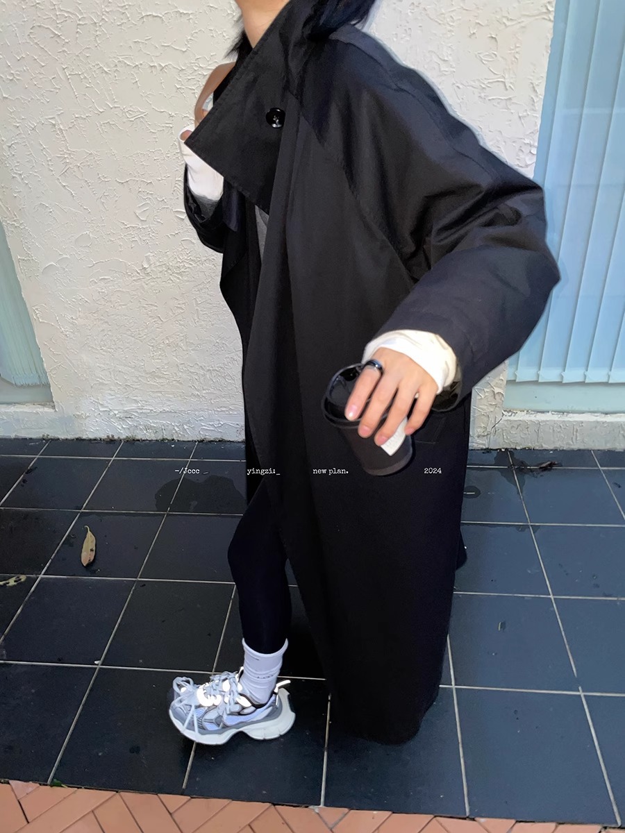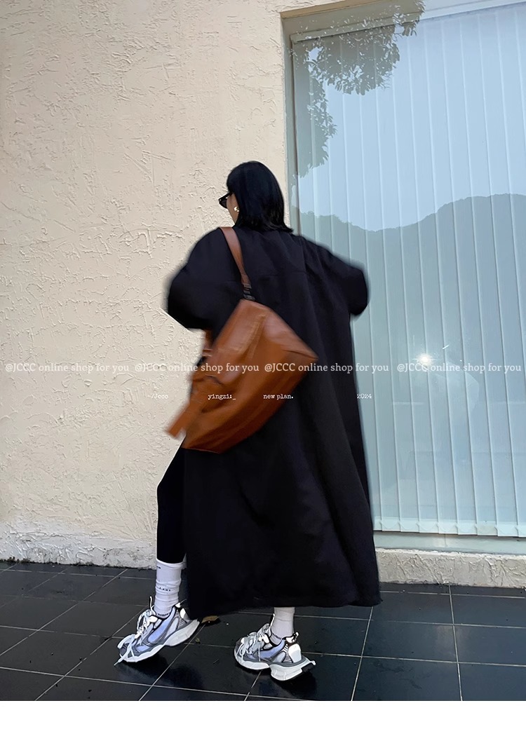 2773 # JCCC Shadow [Яркая ночь] Темпераментная универсальная черная минималистичная длинная ветровка на одной пуговице, пуховик