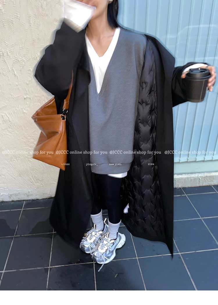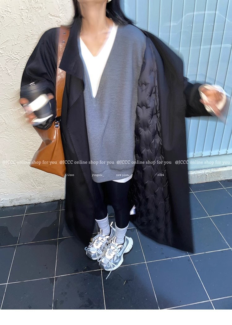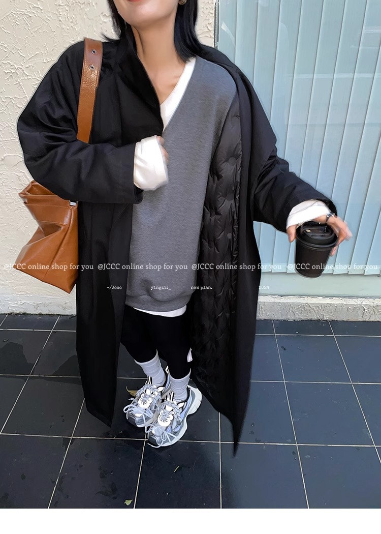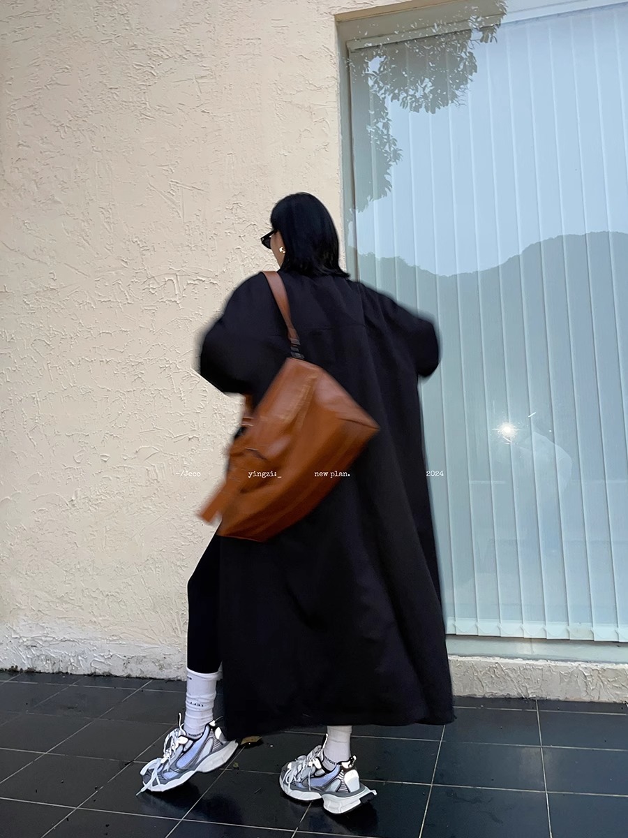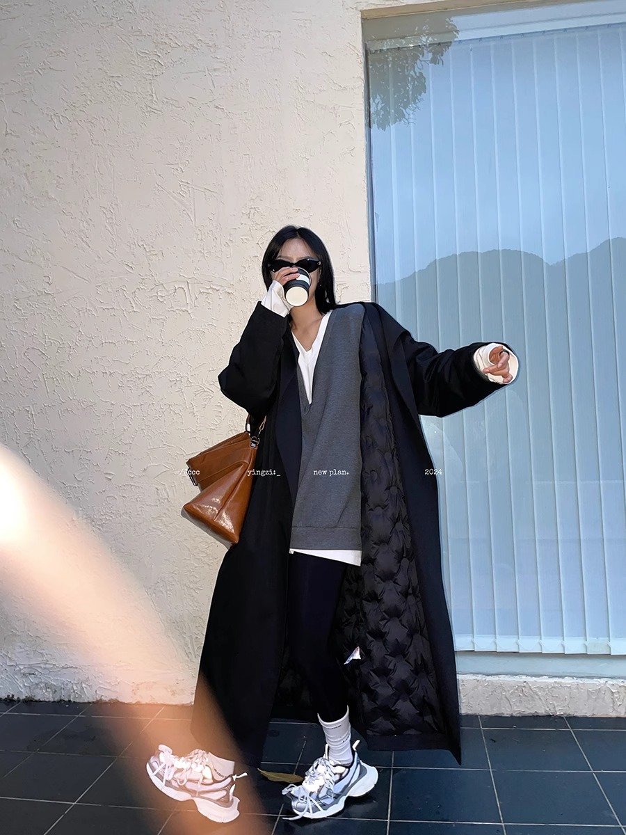 2773 # JCCC Shadow [Яркая ночь] Темпераментная универсальная черная минималистичная длинная ветровка на одной пуговице, пуховик