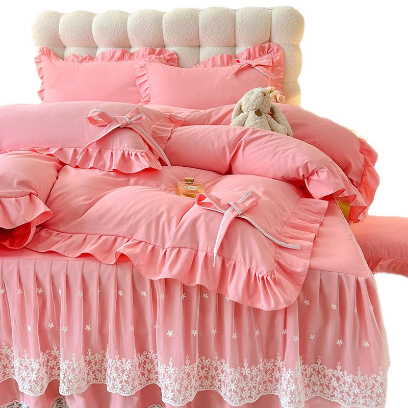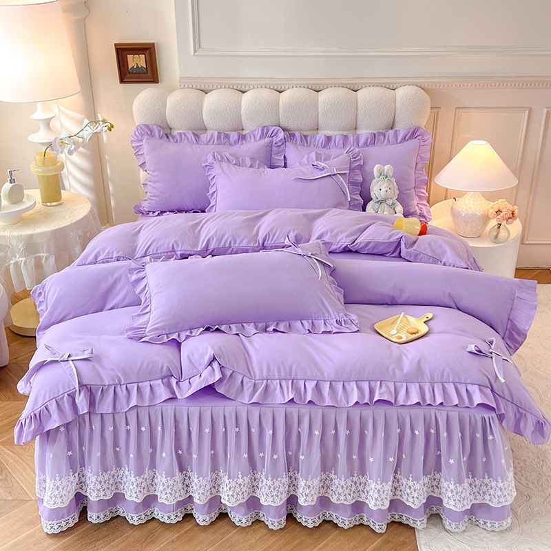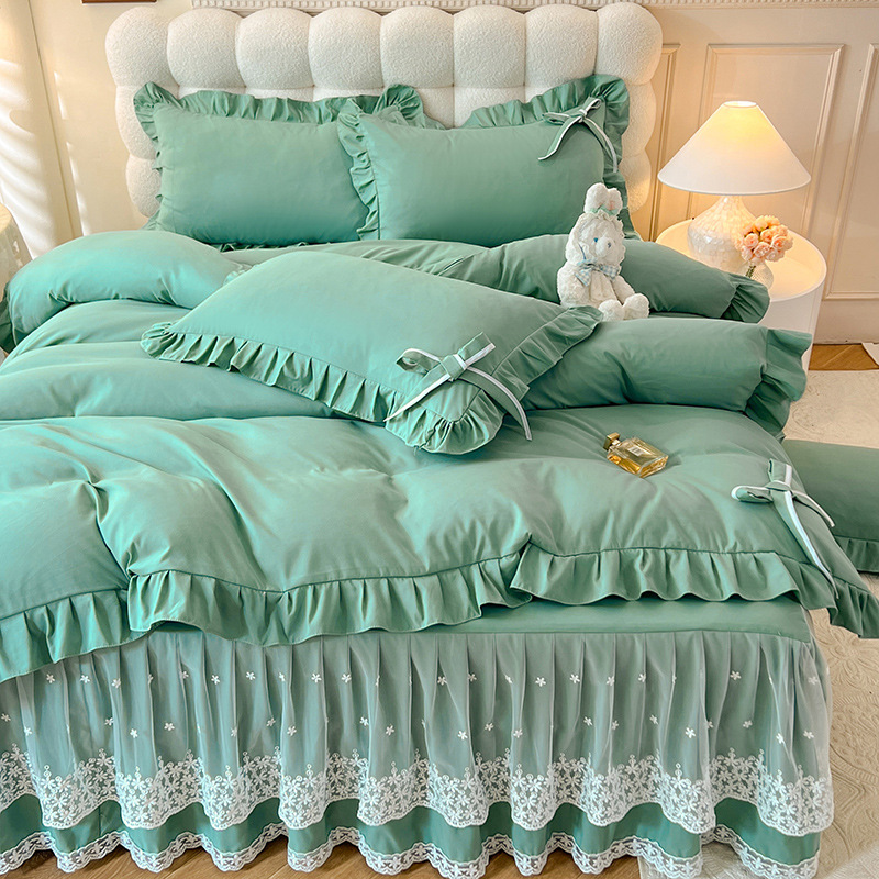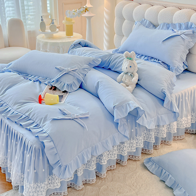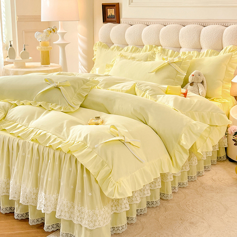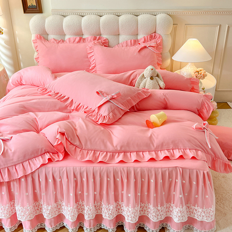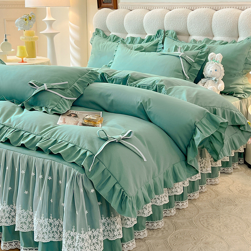 Роскошный мягкий и приятный для кожи комплект из четырех предметов с бантом и кружевом, доступный для трансграничных покупок — супермягкий хлопковый комплект с принтом в стиле юбки для кровати
