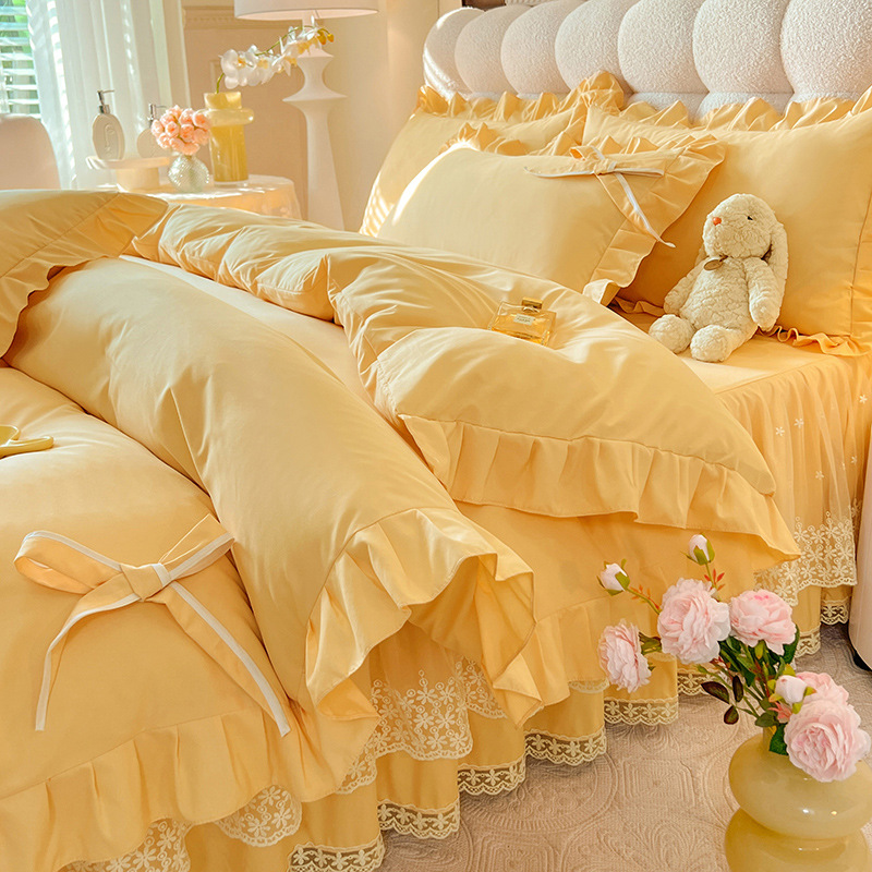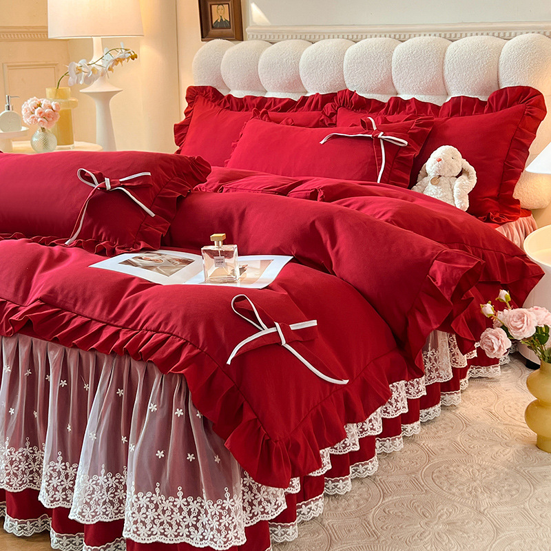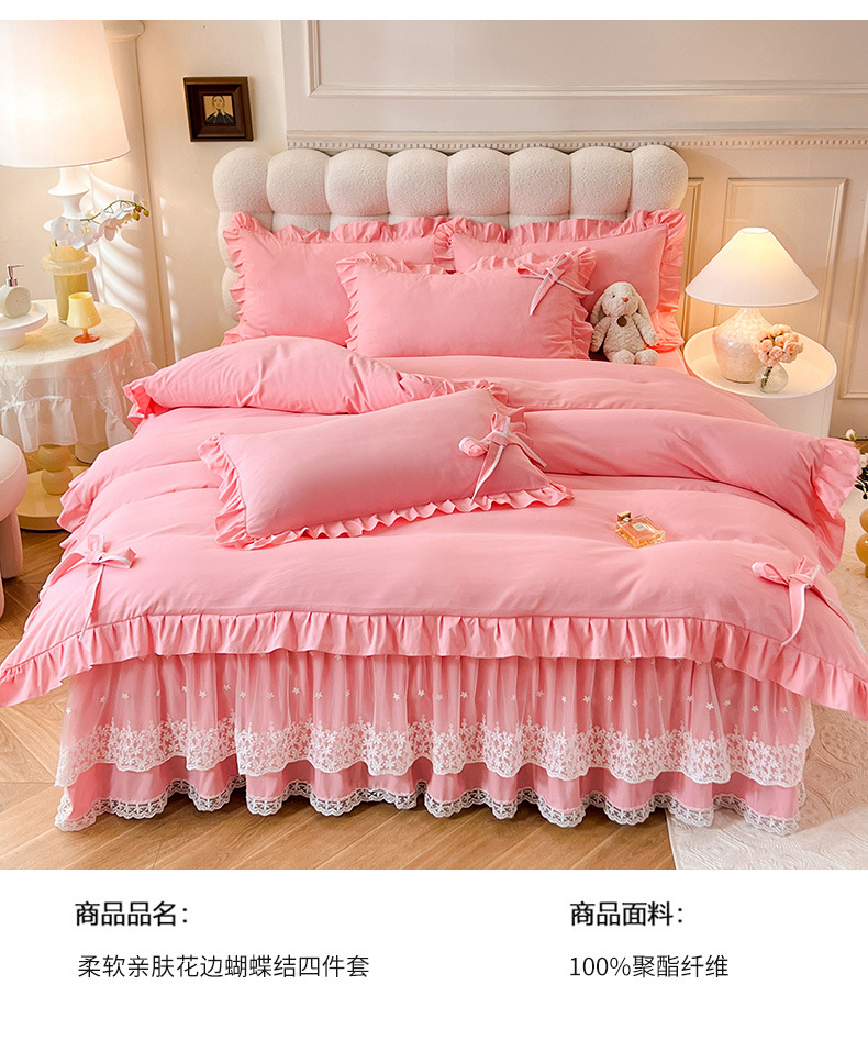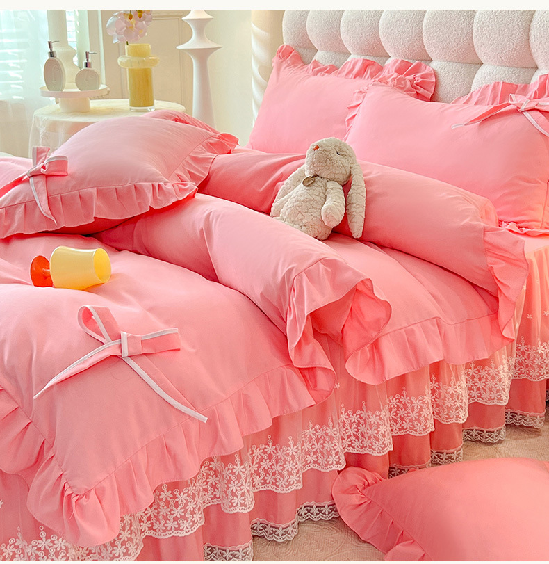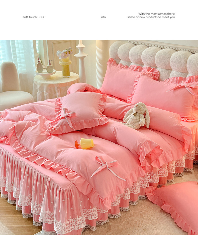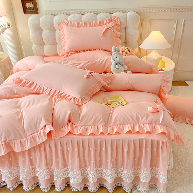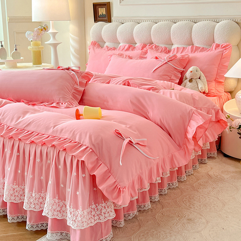 Роскошный мягкий и приятный для кожи комплект из четырех предметов с бантом и кружевом, доступный для трансграничных покупок — супермягкий хлопковый комплект с принтом в стиле юбки для кровати