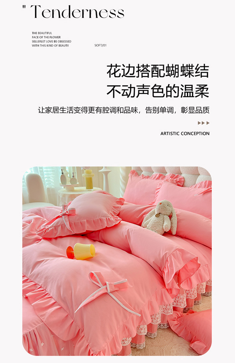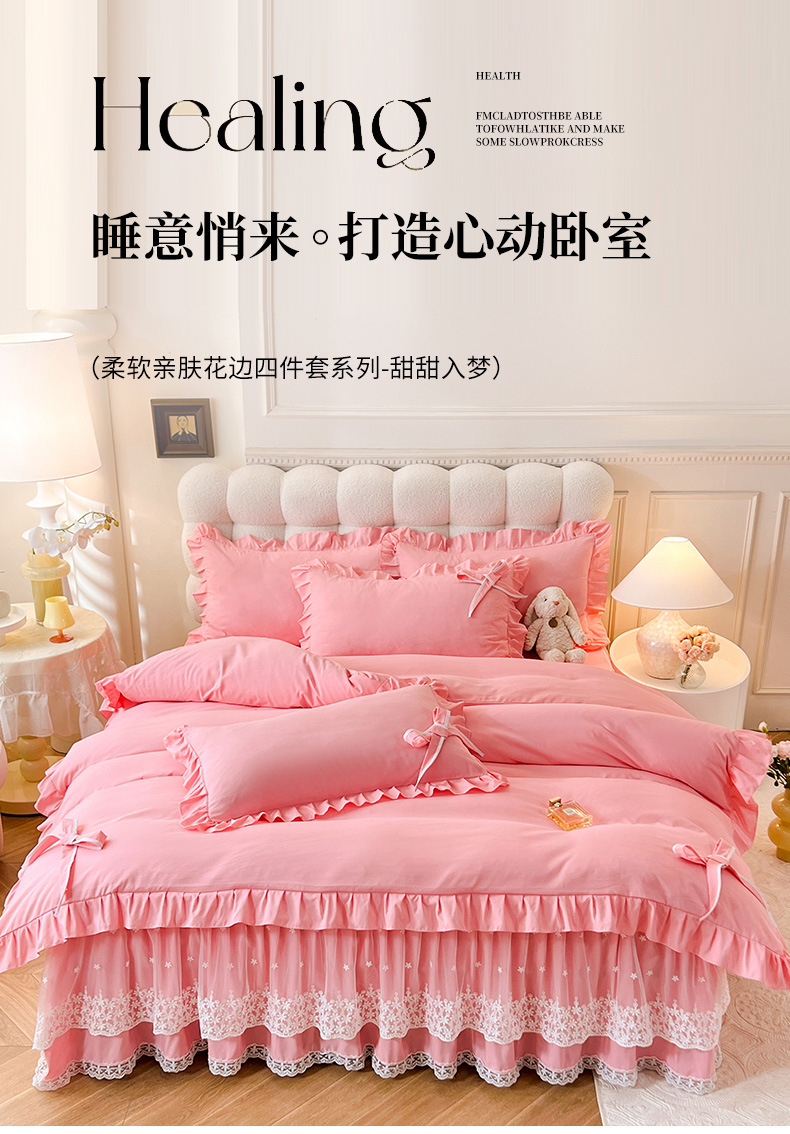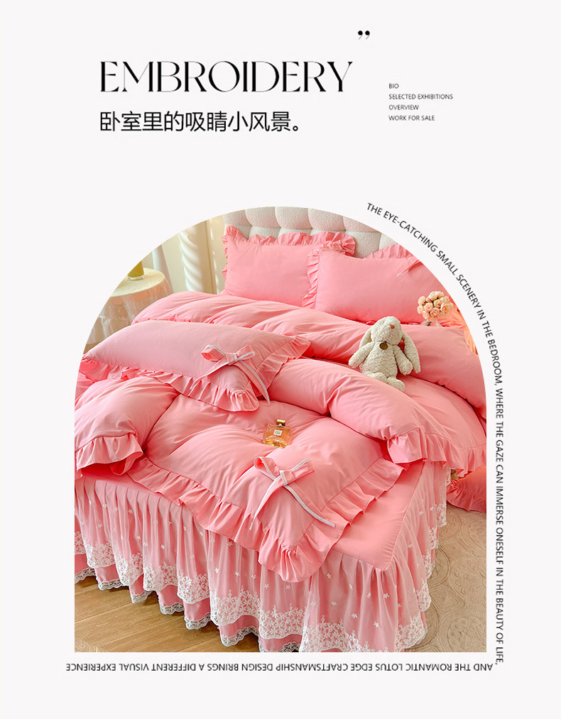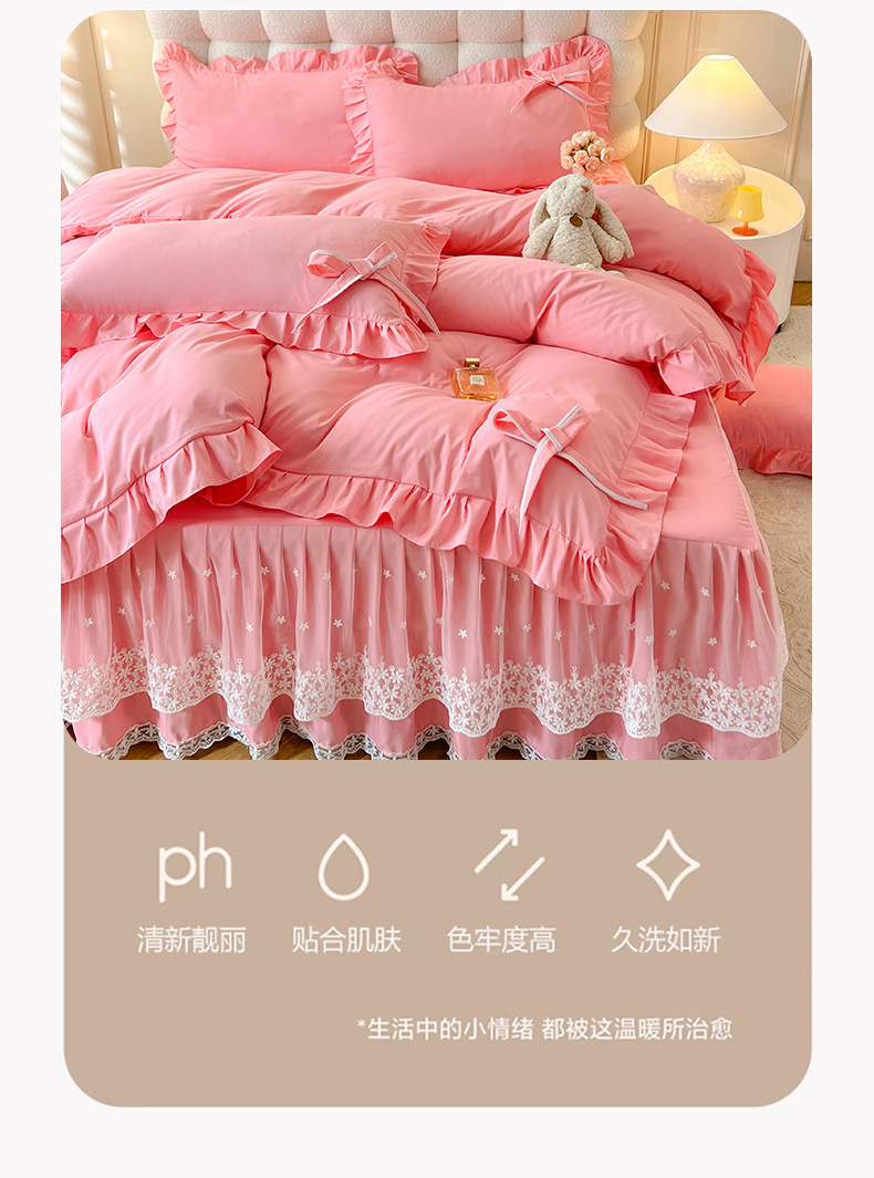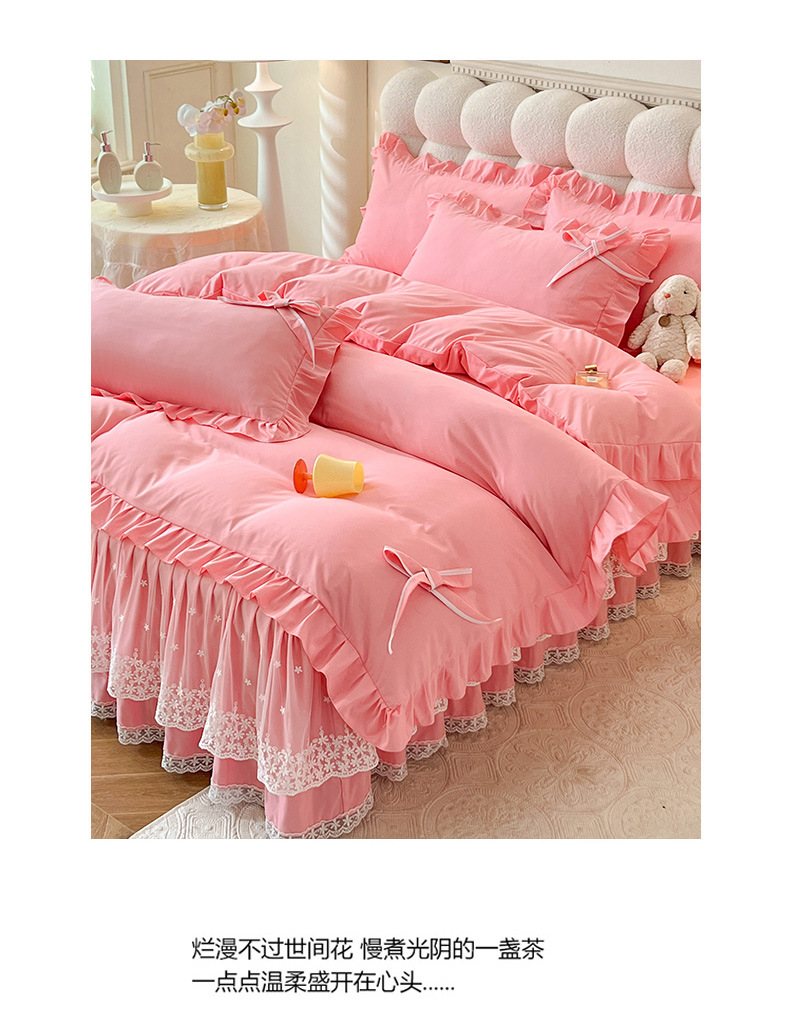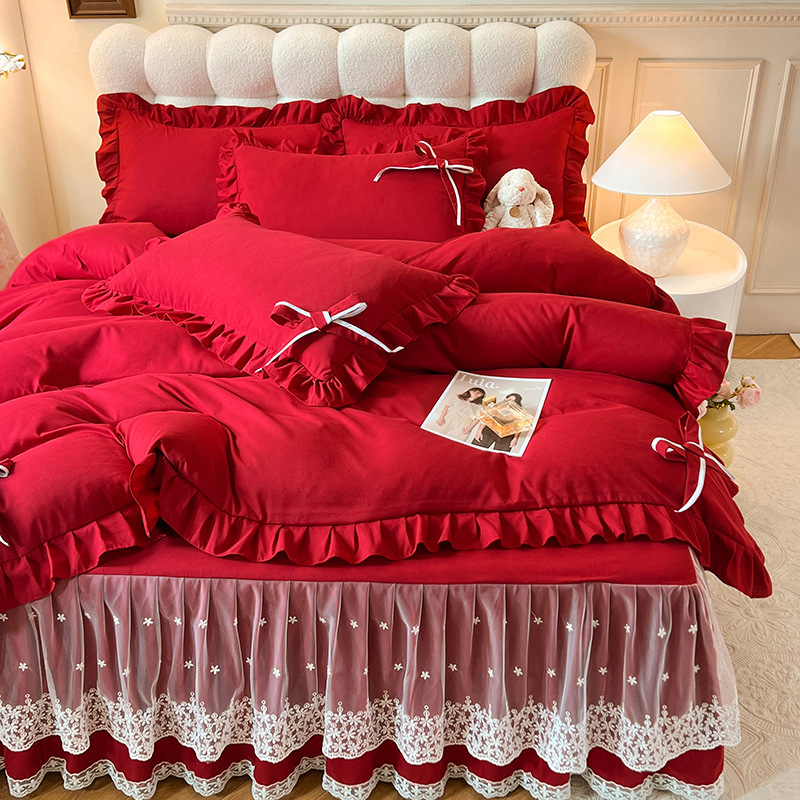 Роскошный мягкий и приятный для кожи комплект из четырех предметов с бантом и кружевом, доступный для трансграничных покупок — супермягкий хлопковый комплект с принтом в стиле юбки для кровати