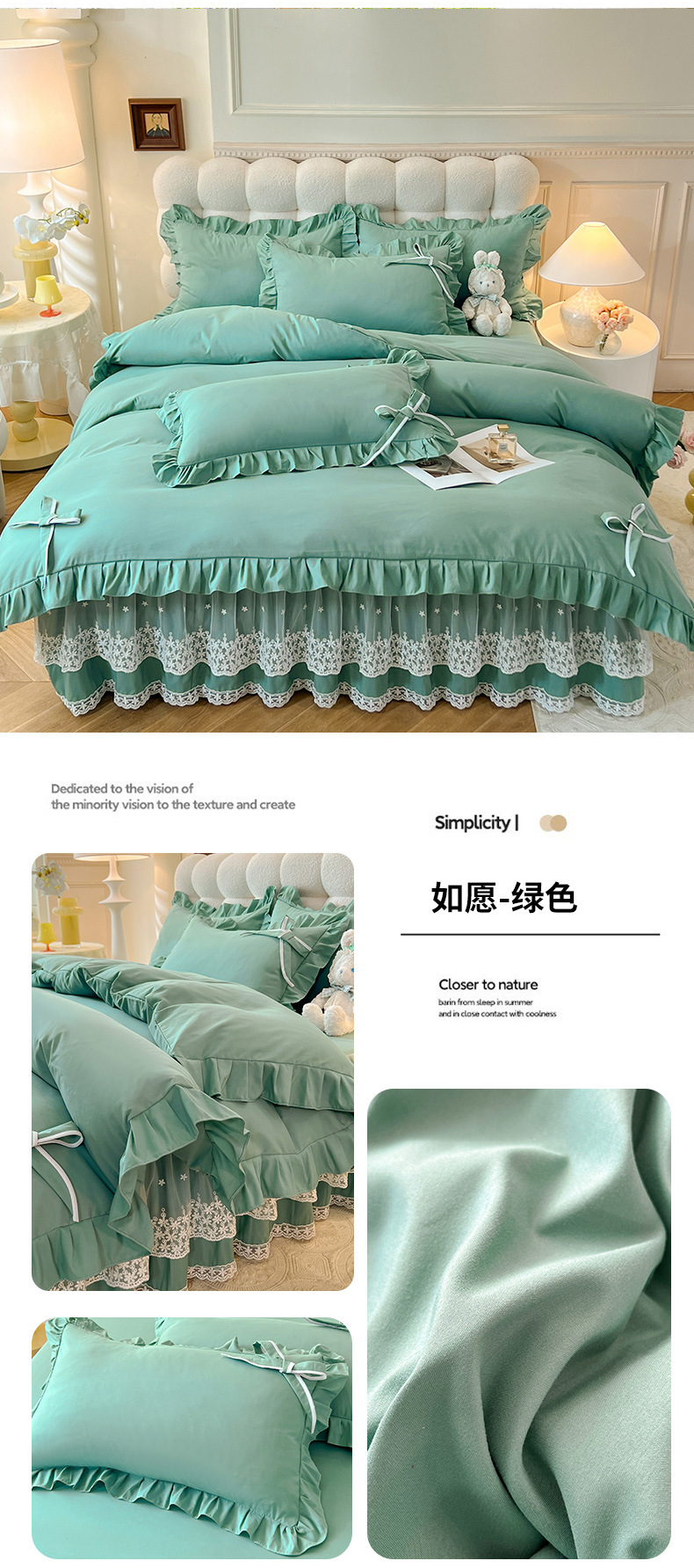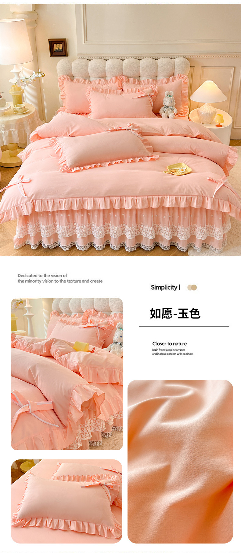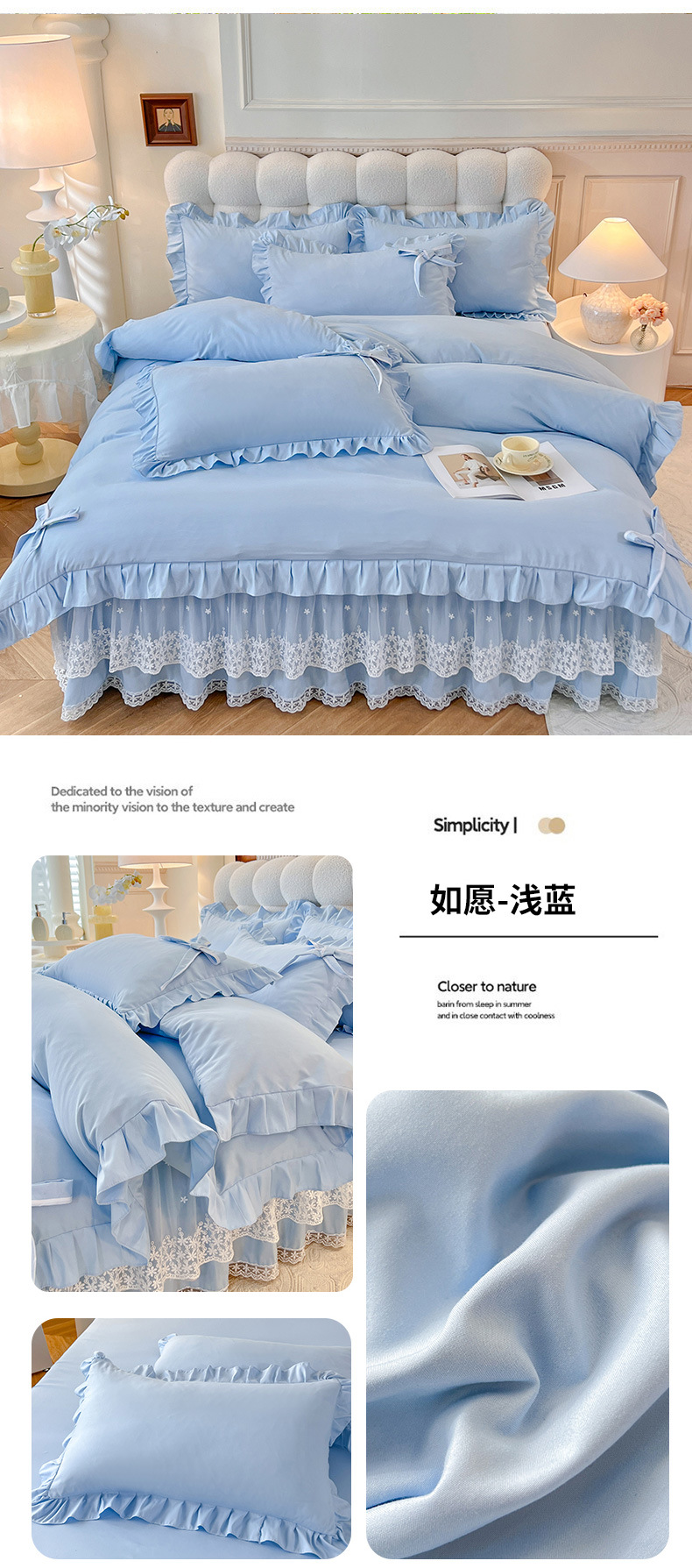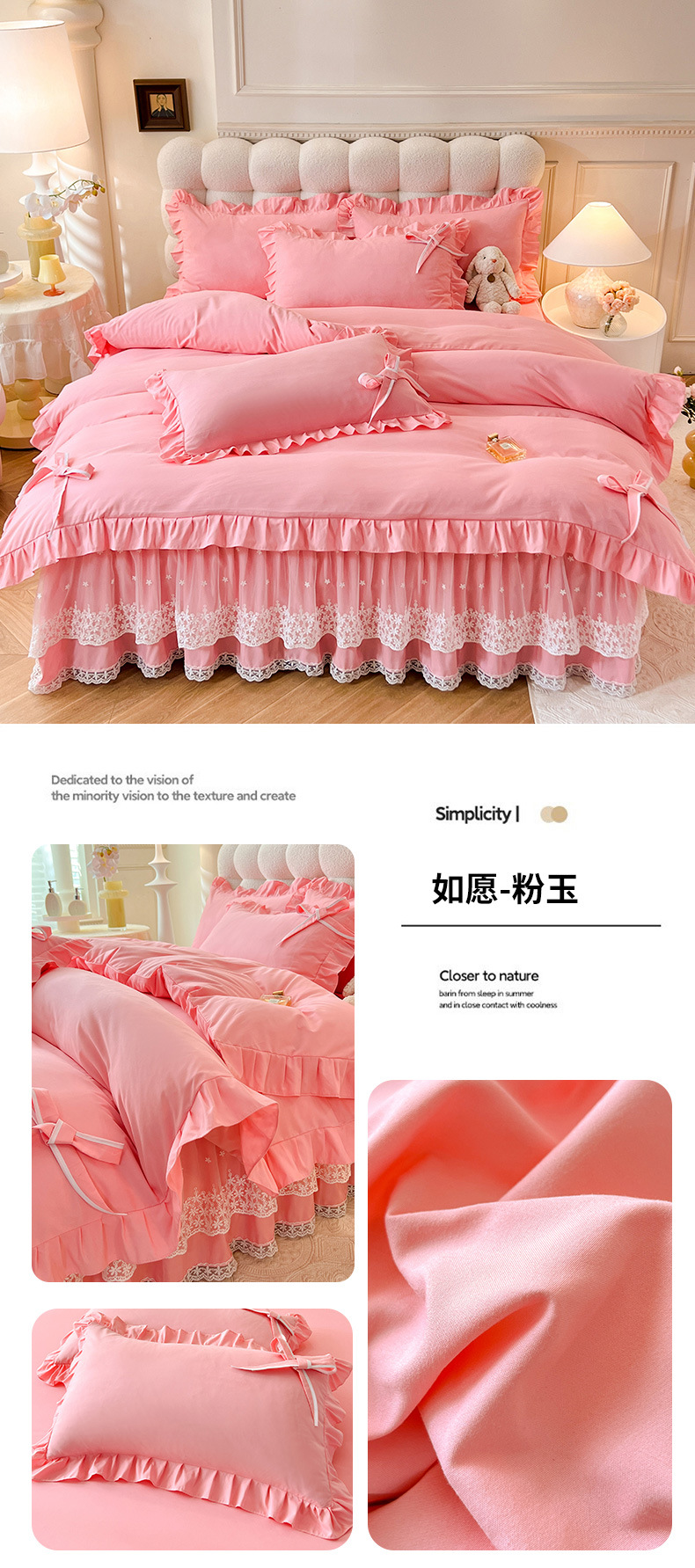 Роскошный мягкий и приятный для кожи комплект из четырех предметов с бантом и кружевом, доступный для трансграничных покупок — супермягкий хлопковый комплект с принтом в стиле юбки для кровати