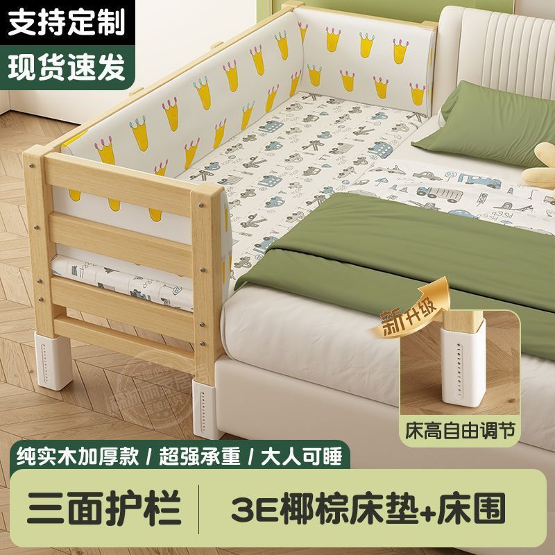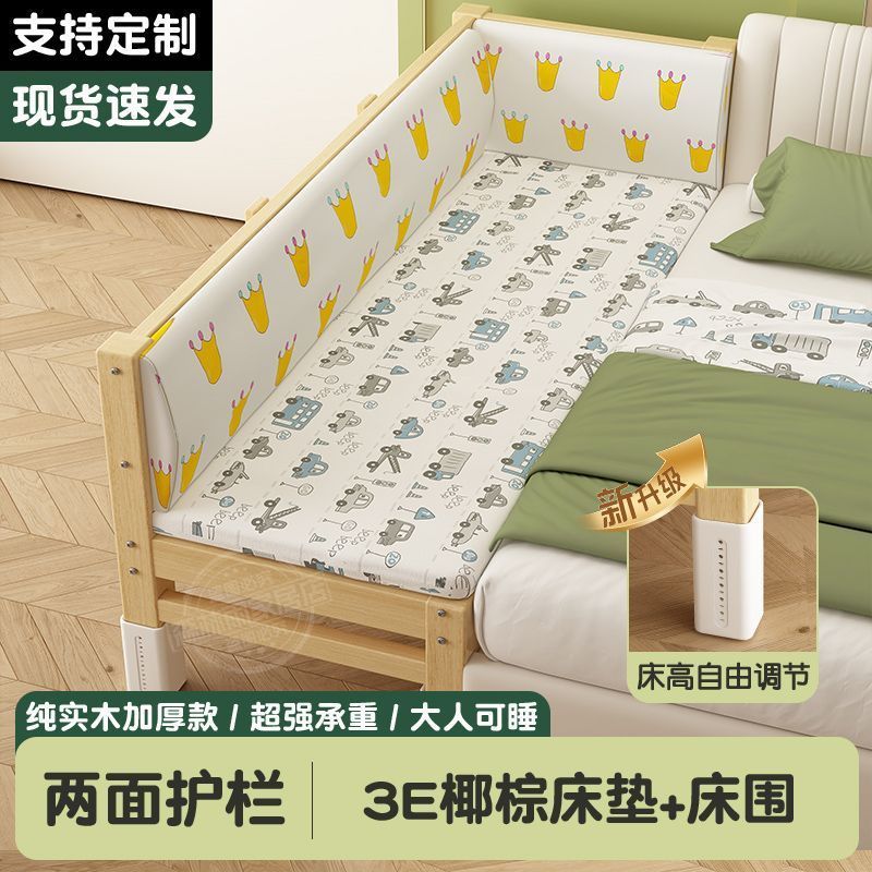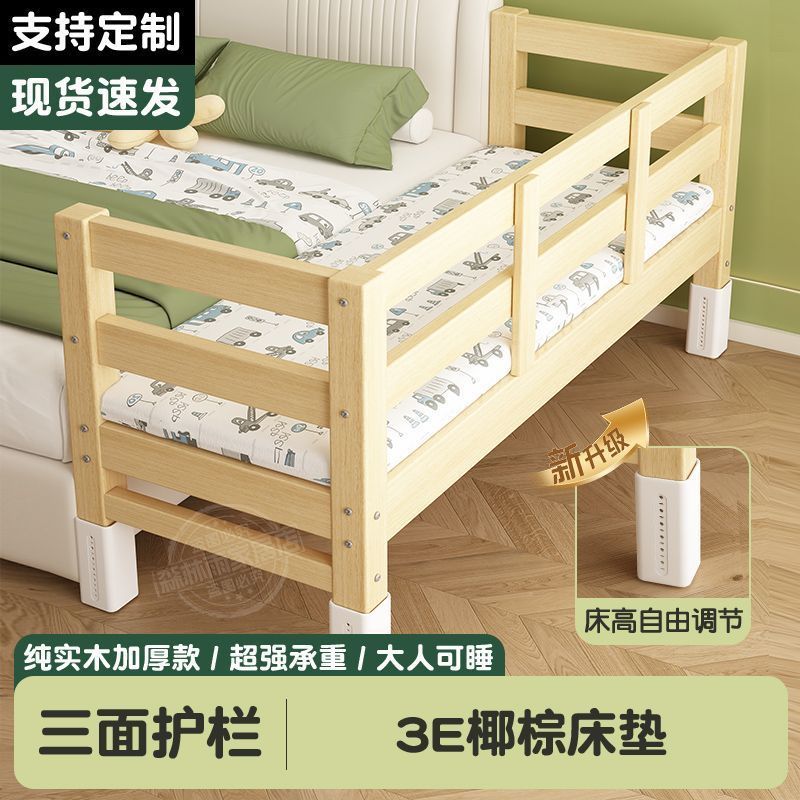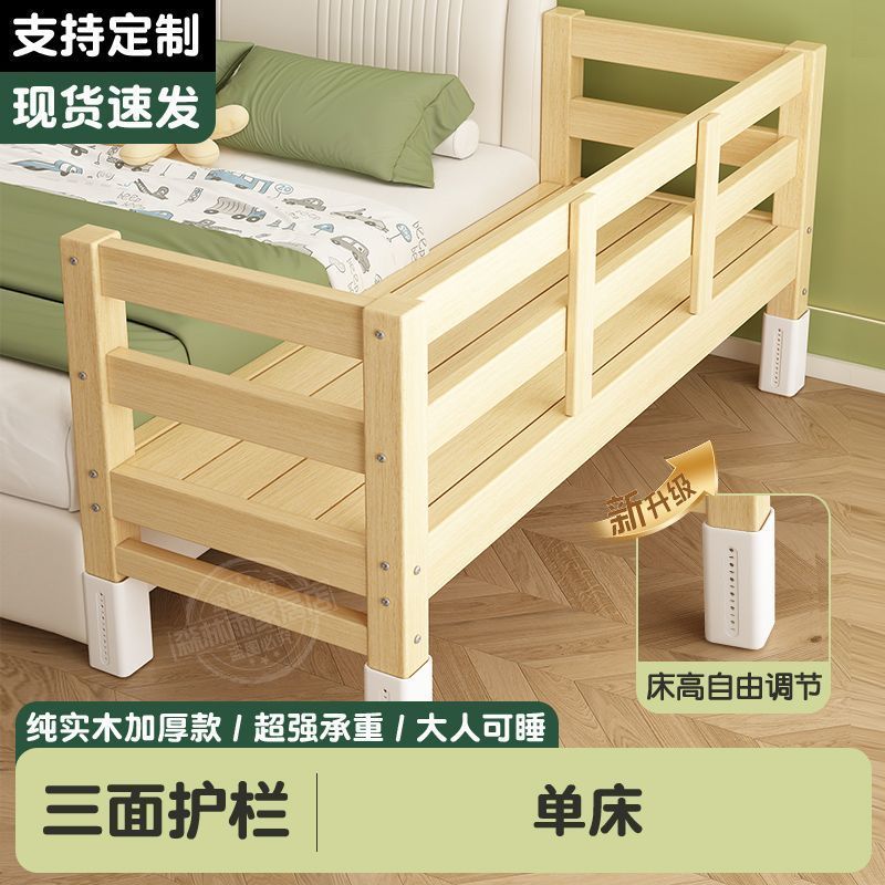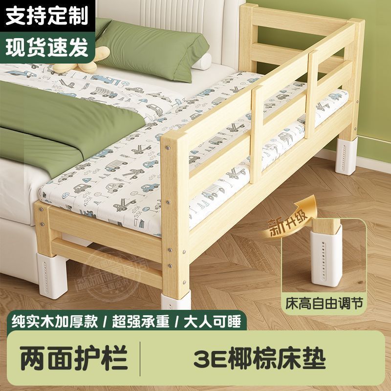 Детская кровать из массива дерева с расширенной конструкцией и защитными бортиками, кроватка для мальчика или девочки, односпальная прикроватная детская кровать, оптом
