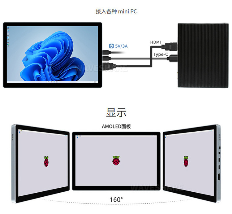 Weixue 10.5inch 2K HDMI-дисплей, полностью ламинированный емкостный сенсорный экран AMOLED Type-C/USB
