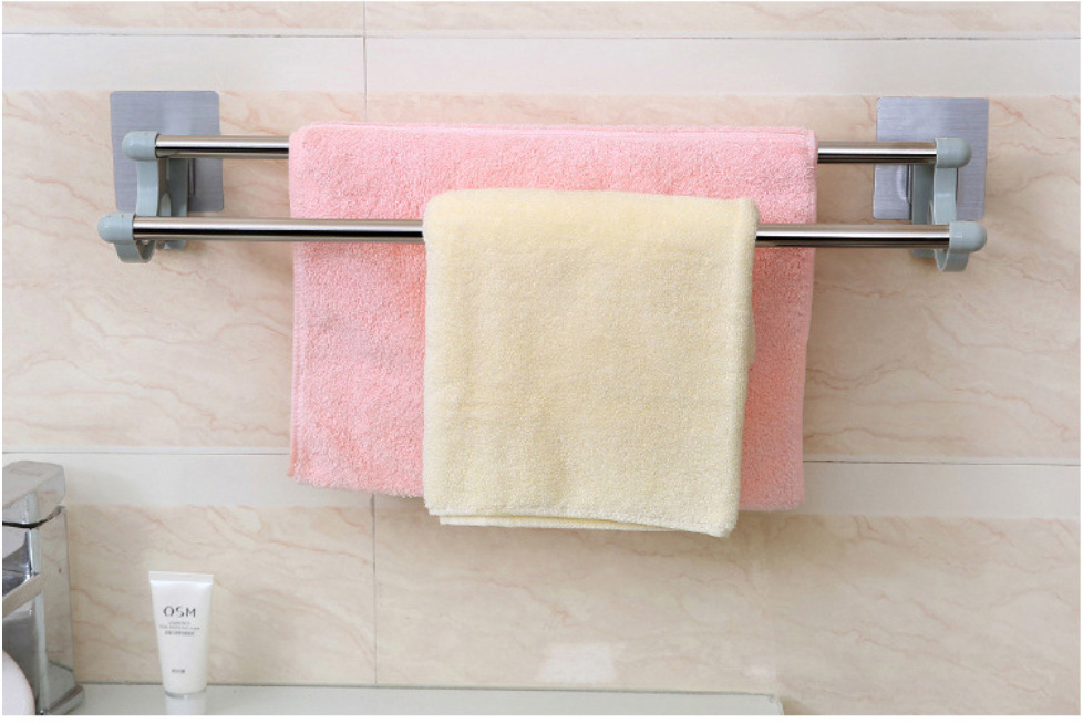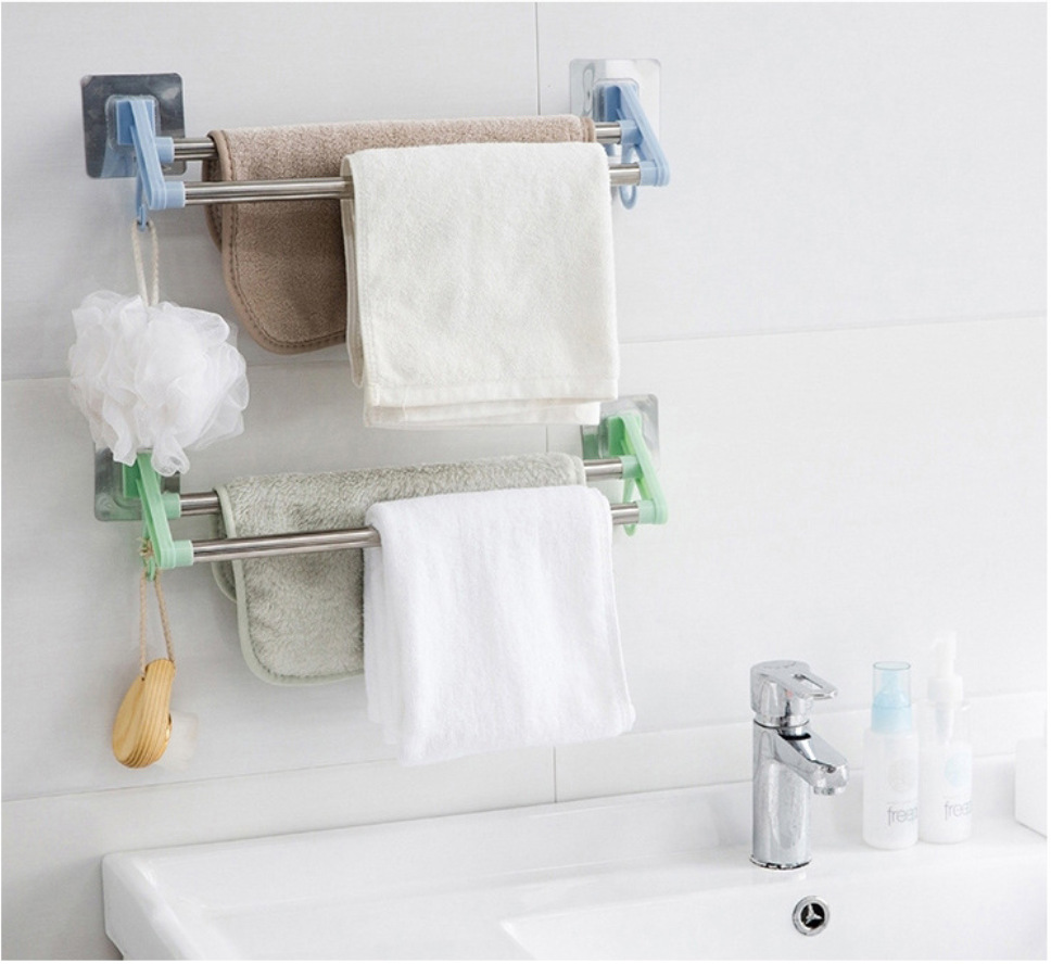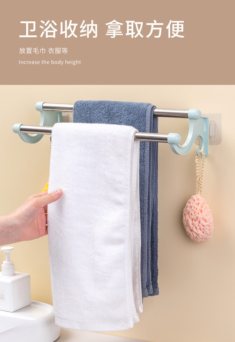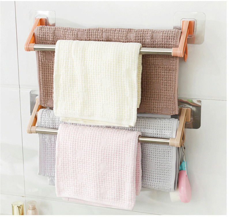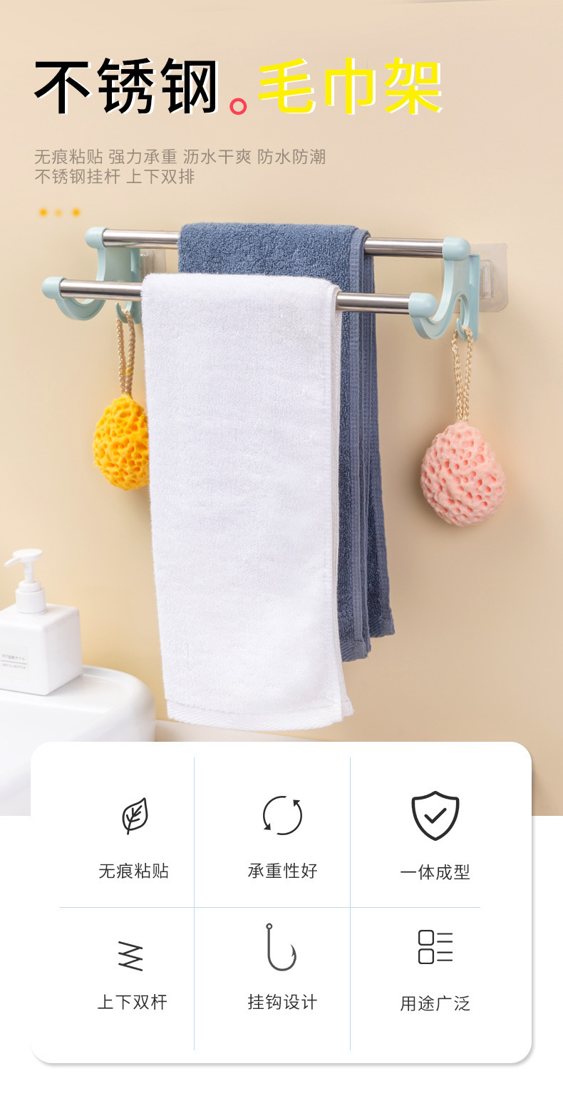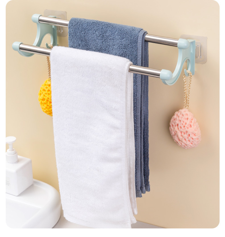 Бесшовная двухполюсная вешалка для полотенец без перфорации, вешалка для хранения в ванной и кухне, пластиковая вешалка для полотенец из нержавеющей стали