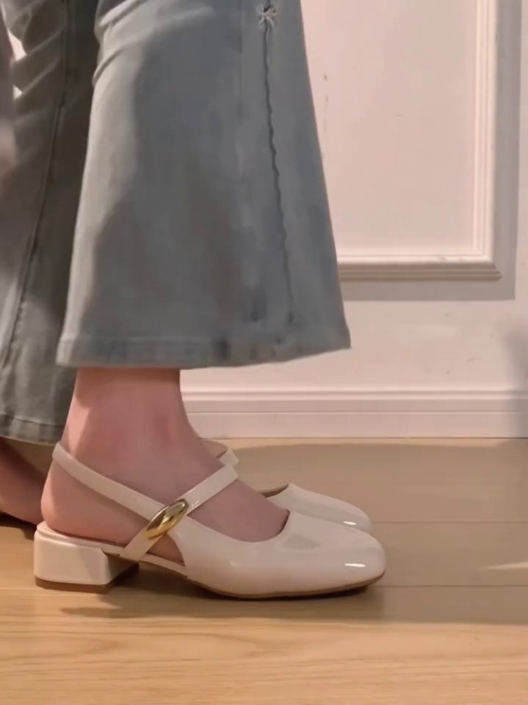 Женские босоножки Мэри Джейн из овчины, французский бежевый цвет, новая модель 2025 года, на толстом каблуке, с ремешком на щиколотке и металлической пряжкой.