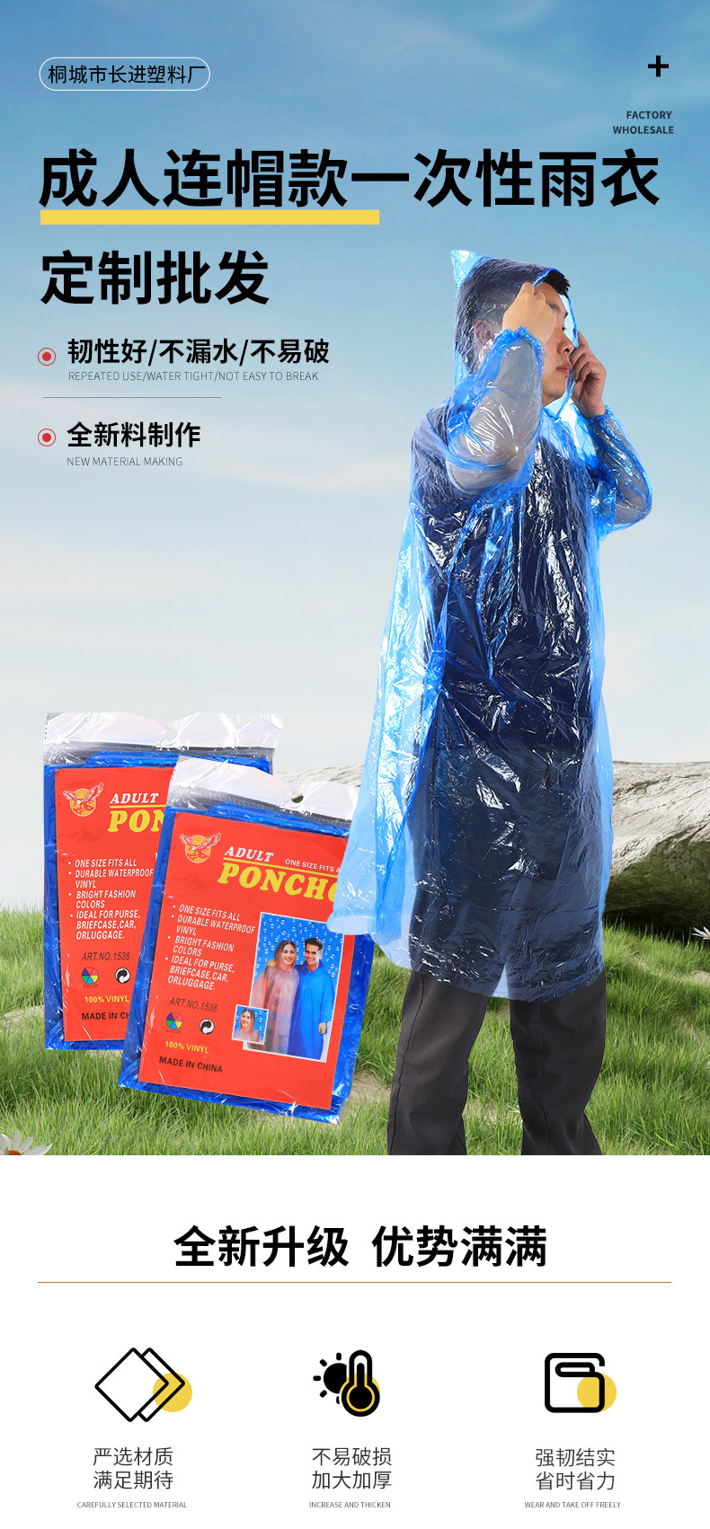 Одноразовый дождевик с капюшоном, цельный защитный костюм для рафтинга, длинный портативный дорожный пончо для взрослых, водонепроницаемый