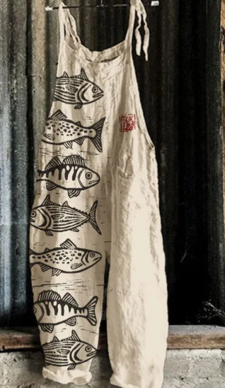 2025 новые женские комбинезоны с подтяжками для внешней торговли и трансграничных поставок, Amazon, европейский и американский стиль, ретро-принт с животными и птицами