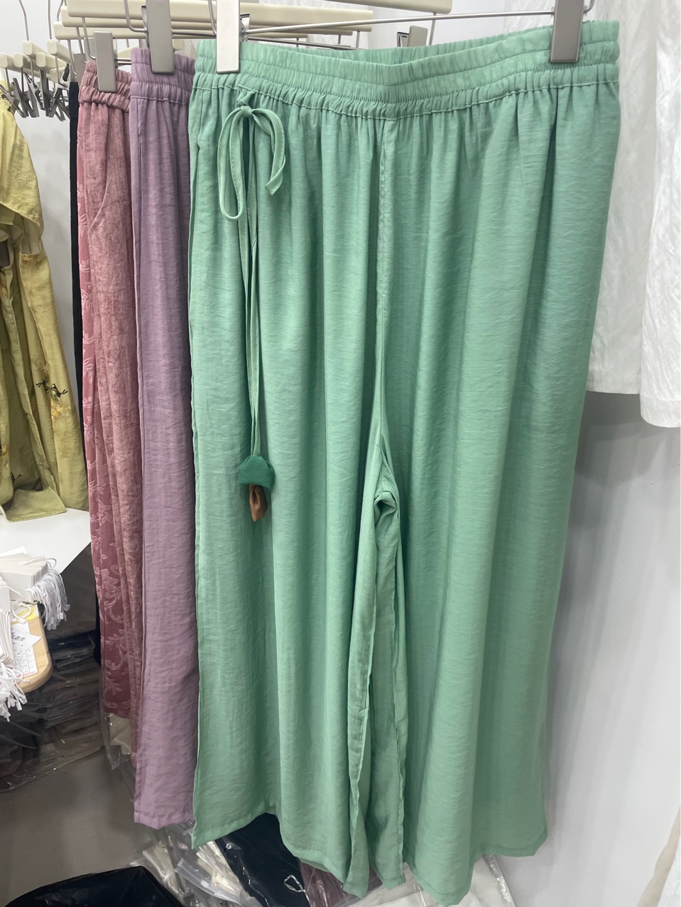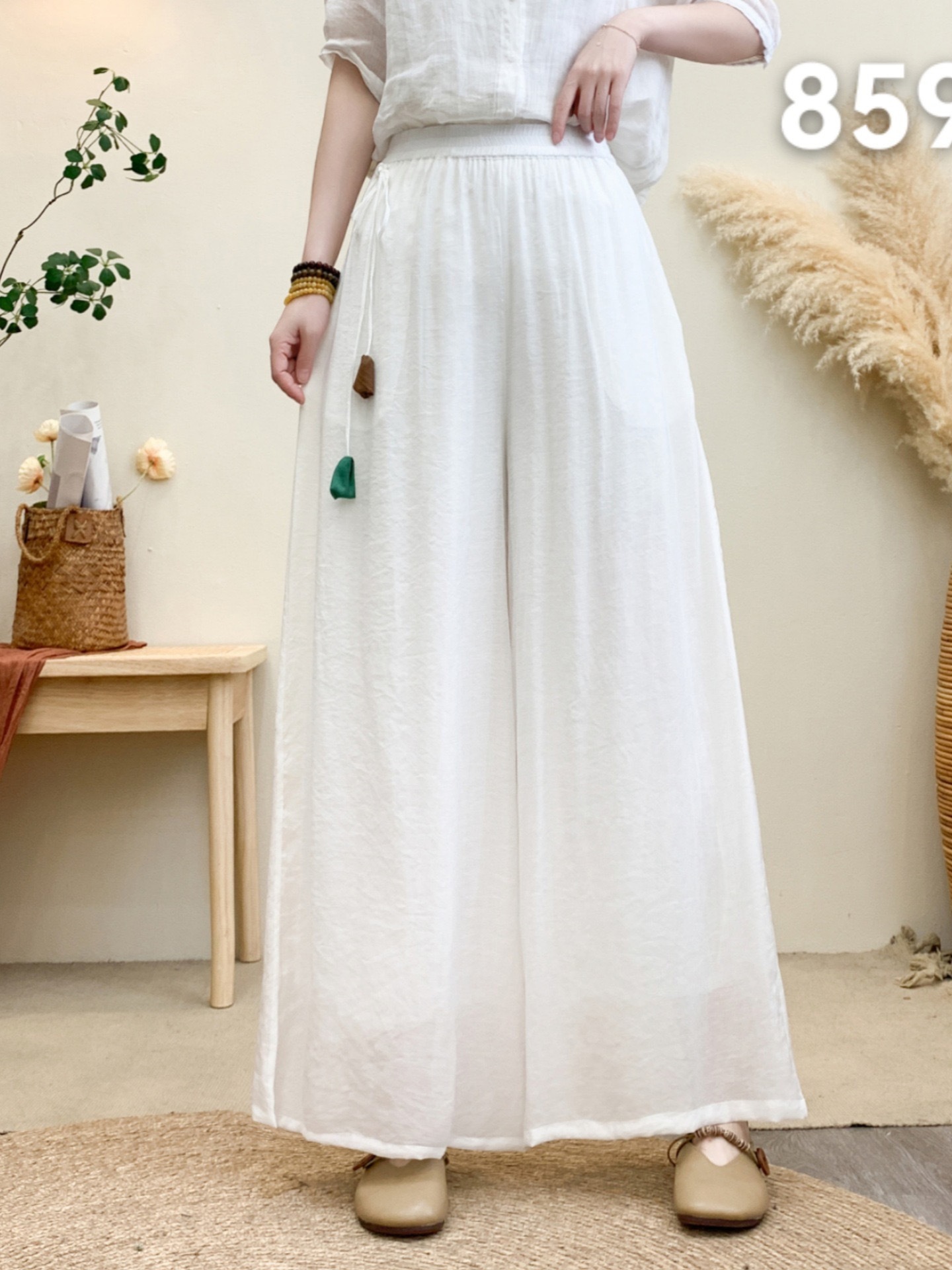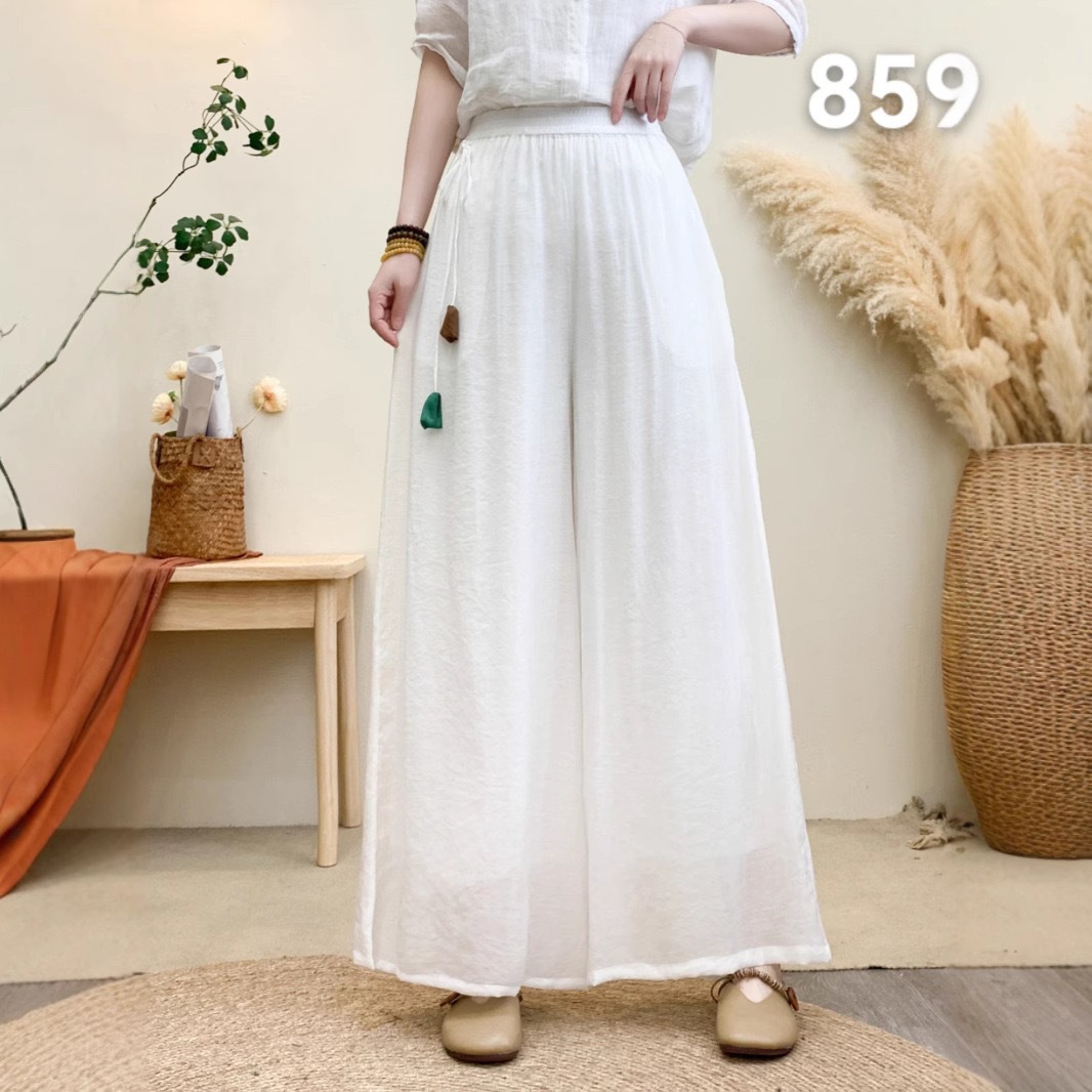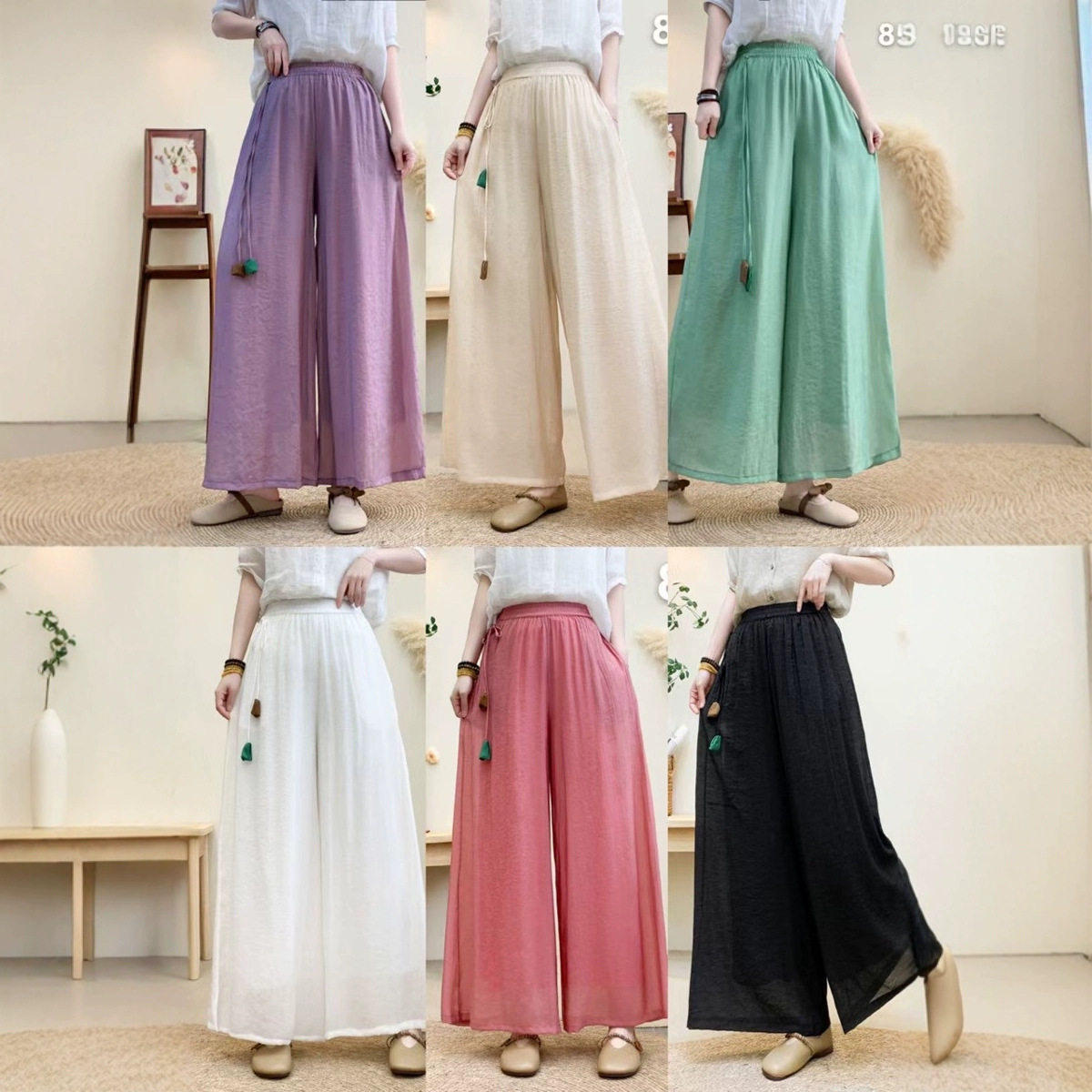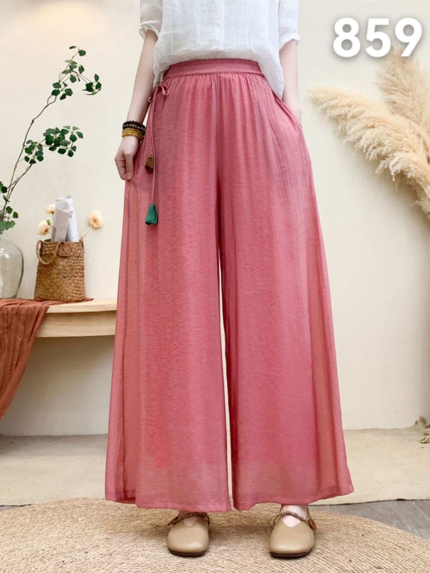 Новые летние широкие брюки из волокна шелка с эластичной резинкой на талии и шнурком, свободные художественные однотонные повседневные брюки с подвеской в стиле ретро для женщин