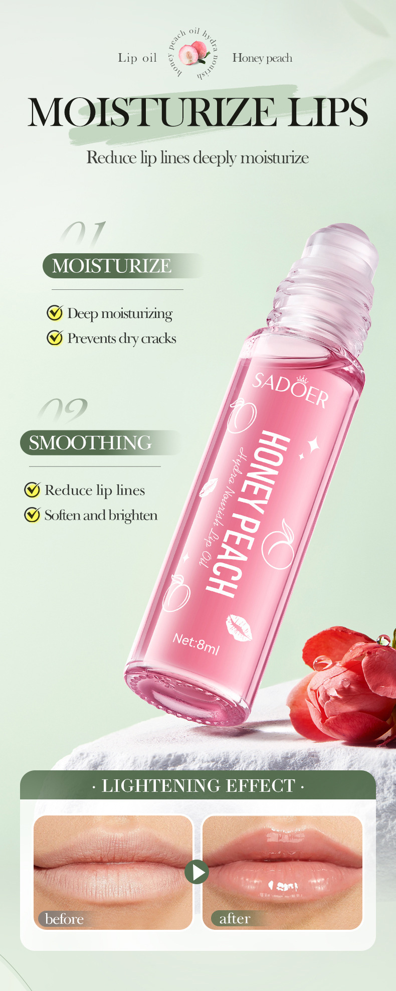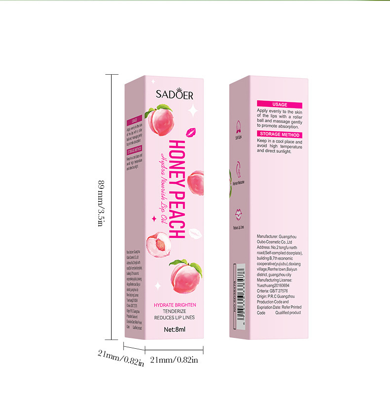 SADOER Peach Hydrating Nourishing Lip Oil (версия на иностранном языке) 8 мл