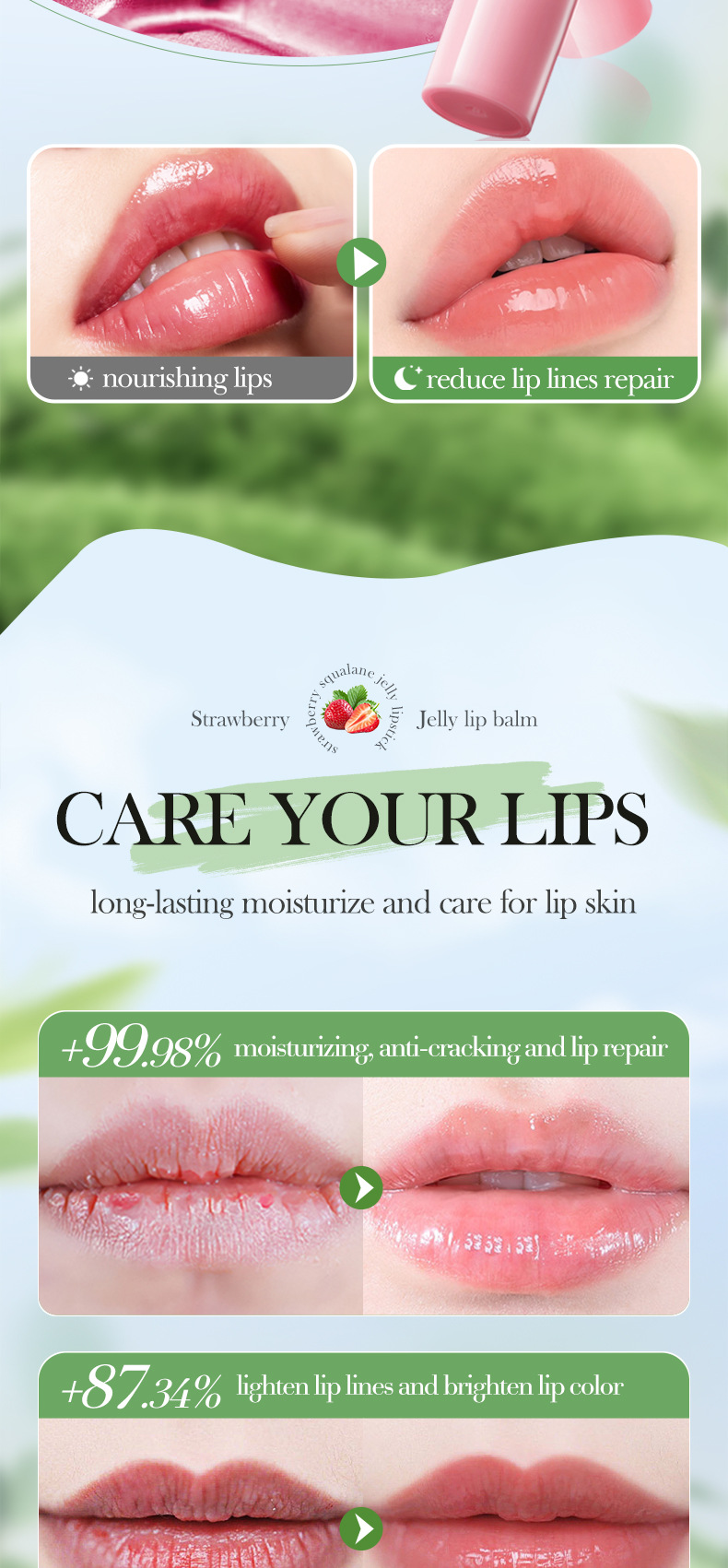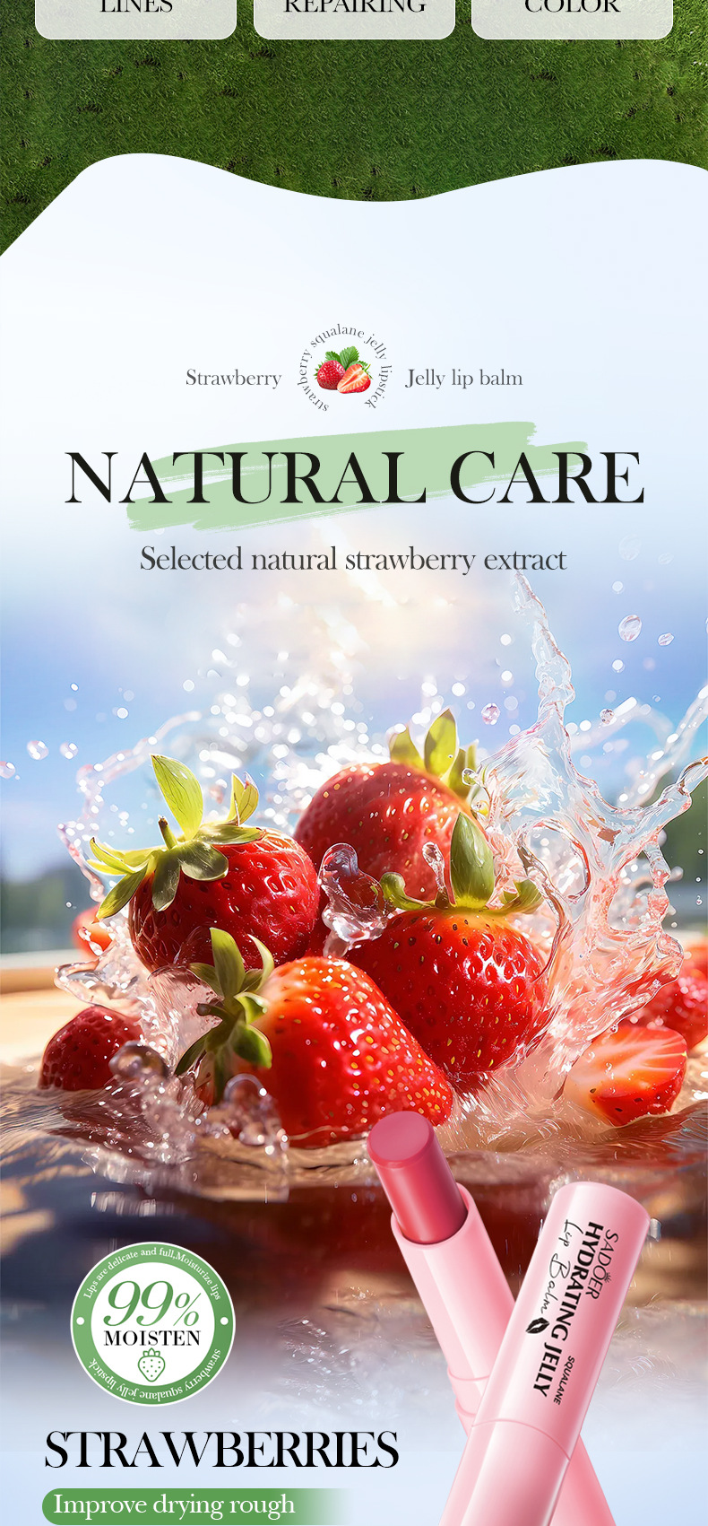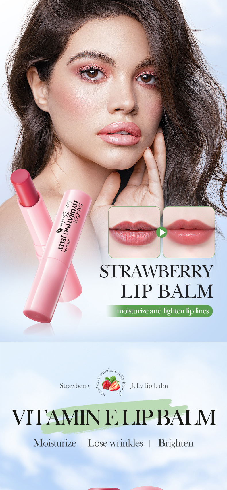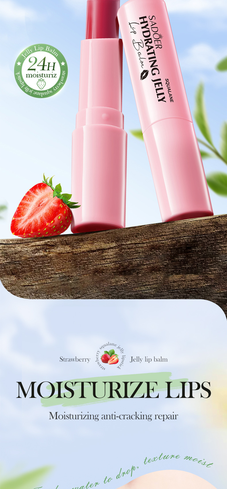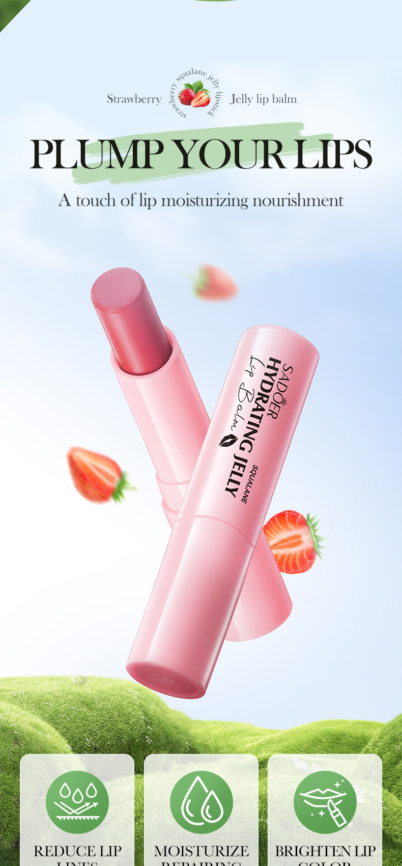 Увлажняющий бальзам для губ SADOER с экстрактом клубники и скваланом, предотвращающий сухость и трещины, оптовая торговля для зарубежных рынков