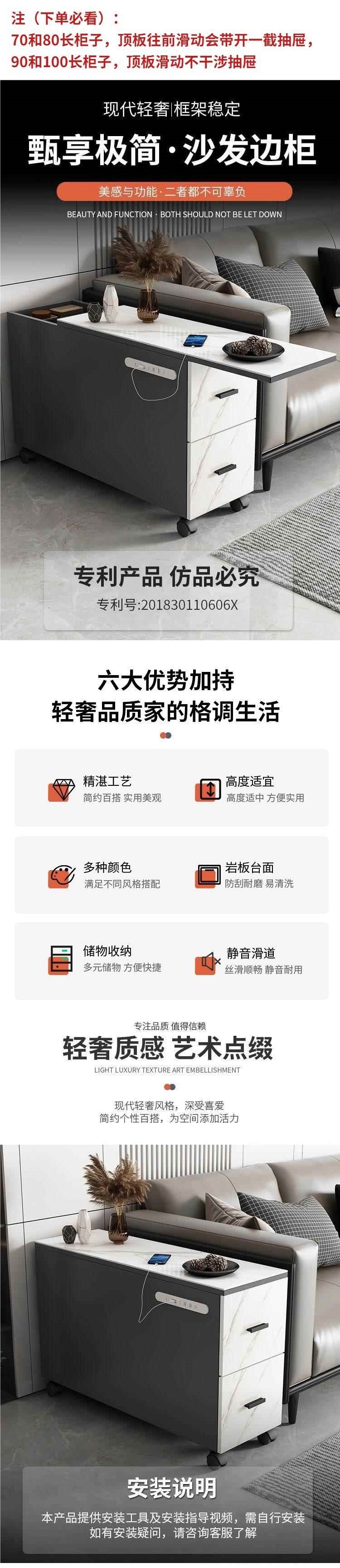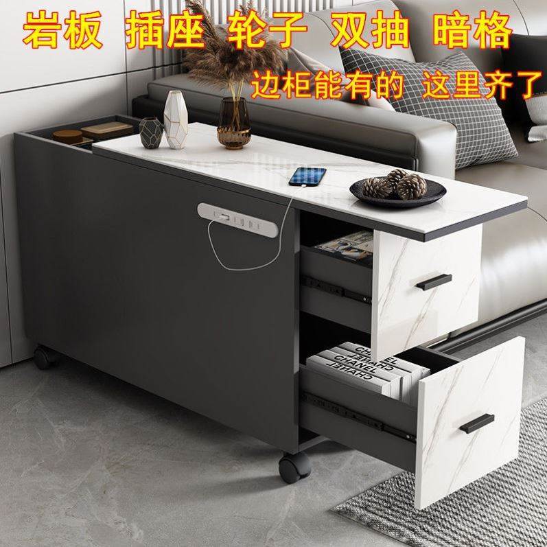 Легкий роскошный боковой шкаф из сланца с колесиками, съемным и перезаряжаемым зазором, темный угловой боковой шкаф, боковой шкаф для чая для небольшой квартиры.