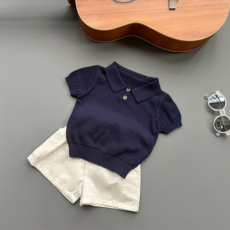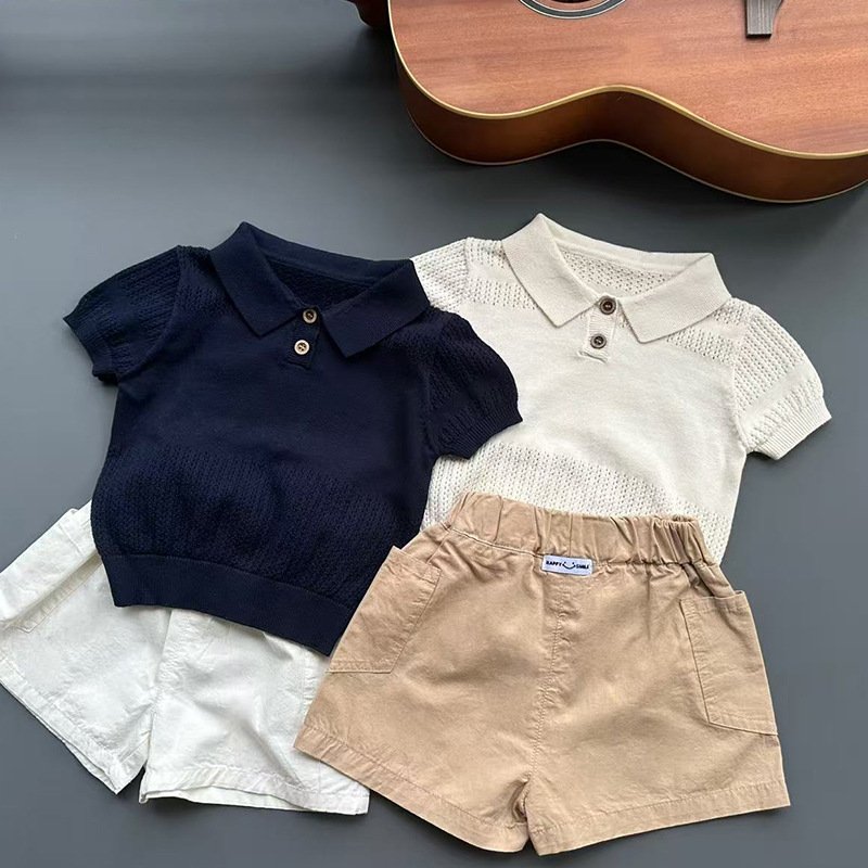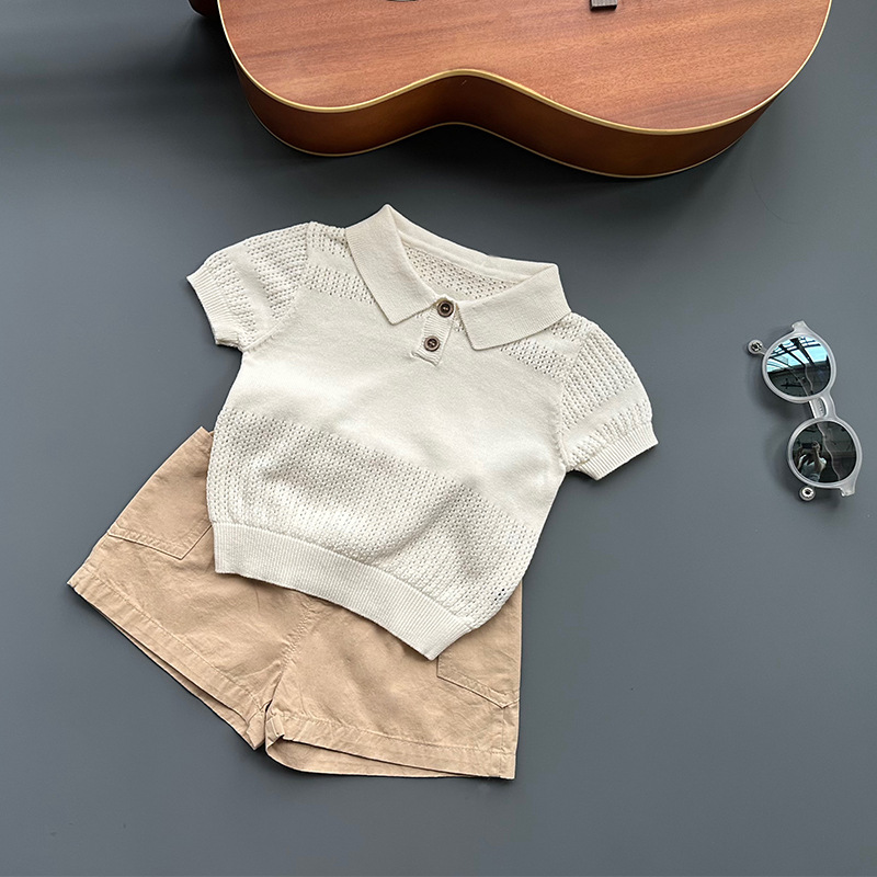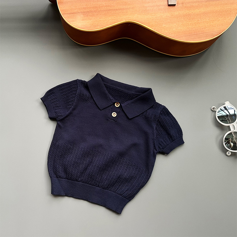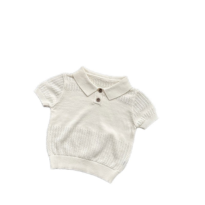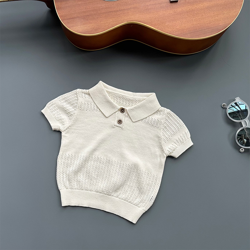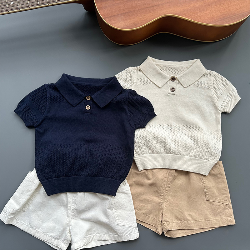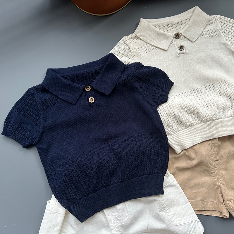 Летняя футболка-поло для мальчиков из ледяного шелка с вырезами, короткий рукав, новинка 2025 года, детская, в корейском стиле, повседневная, трикотажная