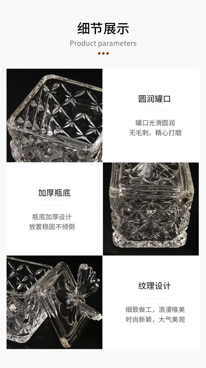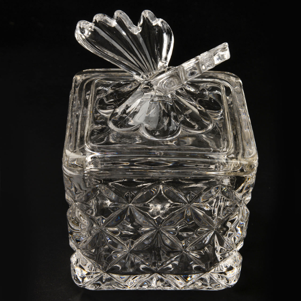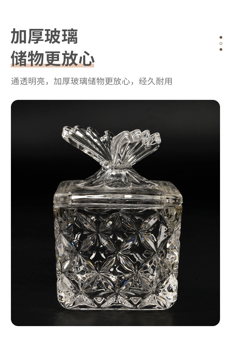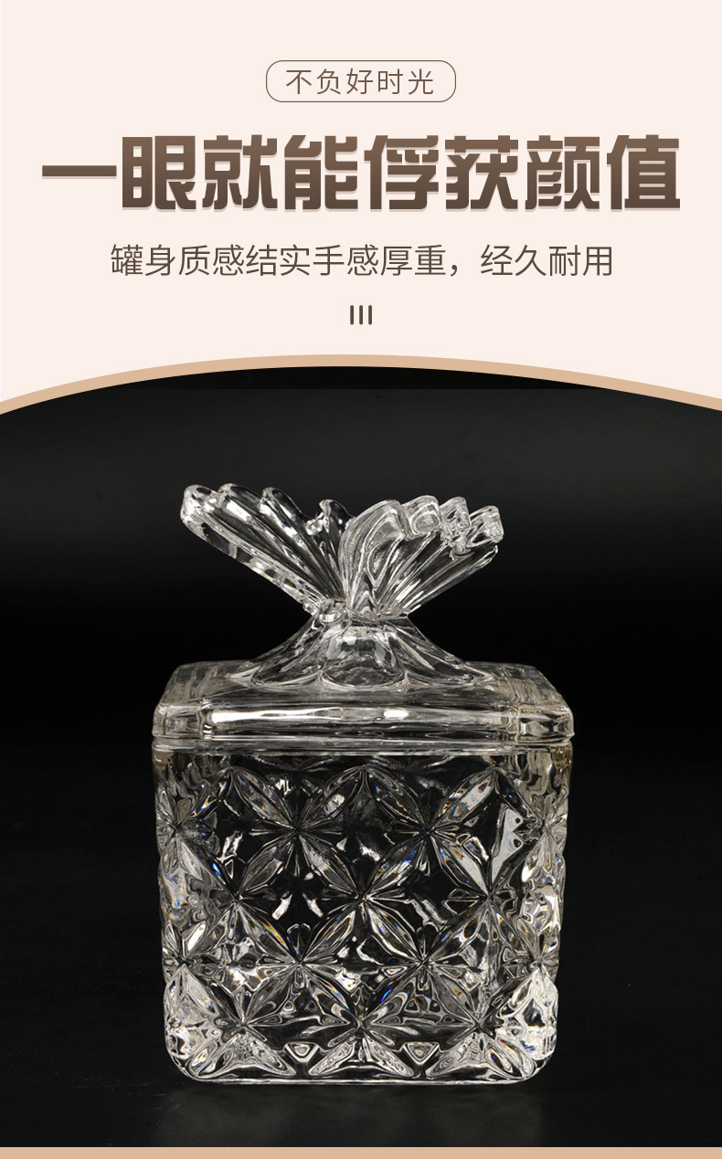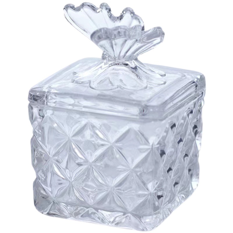 Прозрачная банка для конфет в форме бабочки, французская рельефная стеклянная банка для хранения с крышкой, вмещающая ароматерапевтические кристаллы.