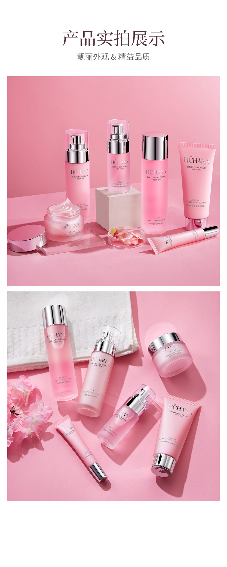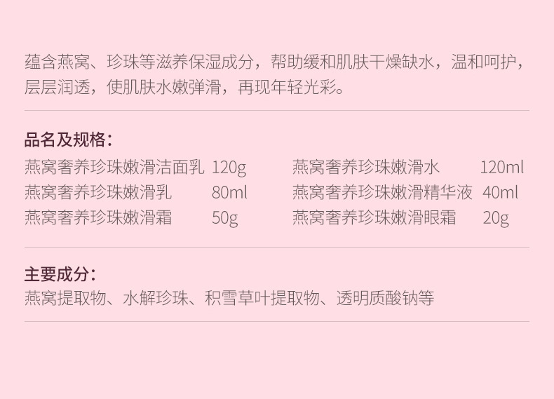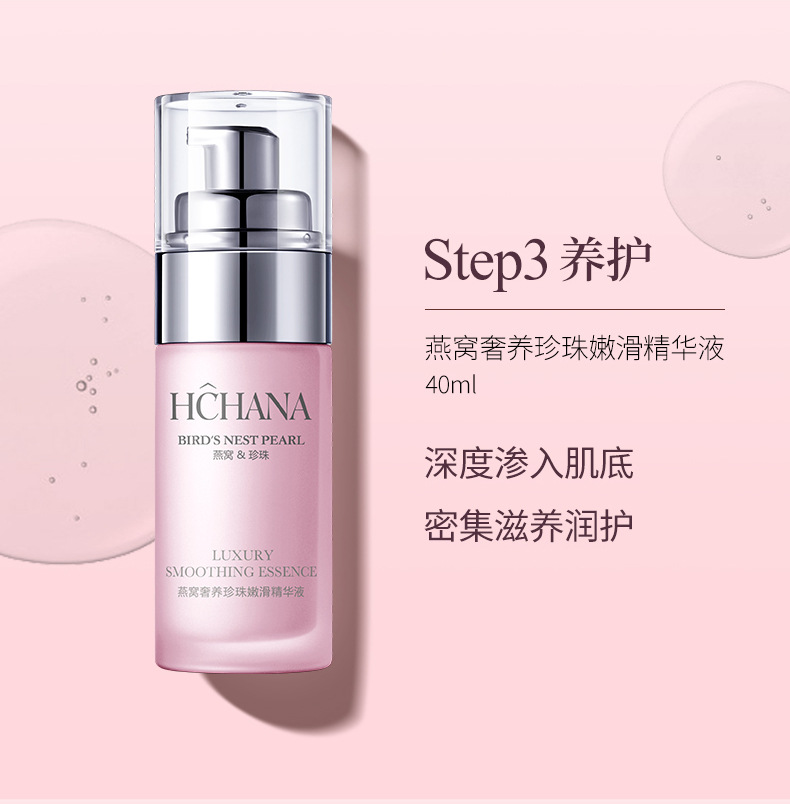 Роскошный гладкий набор из шести предметов Han Chan Bird's Nest с жемчугом, 120 г+120 мл+80 мл+40 мл+50 г+20 г