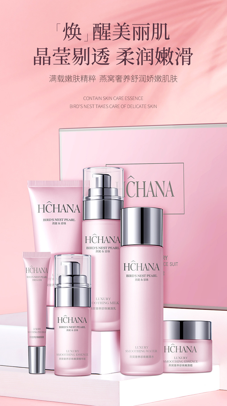 Han Chan Bird's Nest Роскошный жемчужный нежный набор из шести предметов для увлажнения и увлажнения кожи Набор увлажняющих средств по уходу за кожей