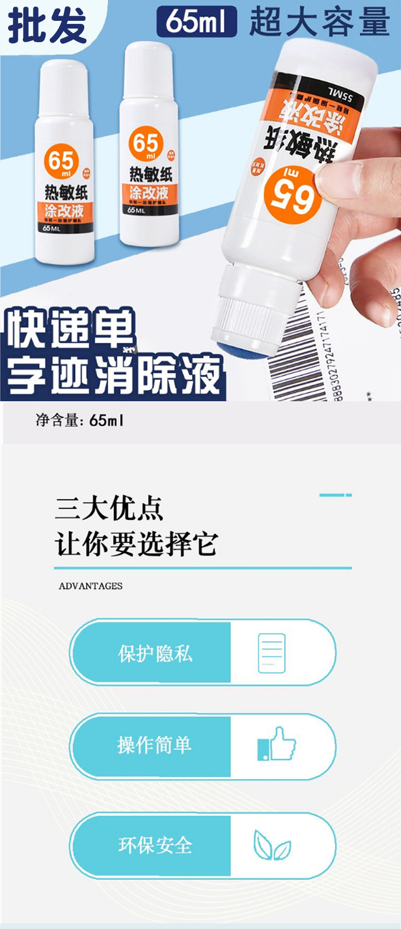 Жидкость для коррекции термобумаги, корректирующая жидкость большой емкости, открывалка для конфиденциальной печати экспресс-доставки, жидкость для коррекции конфиденциальности
