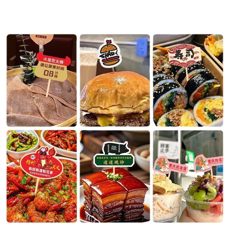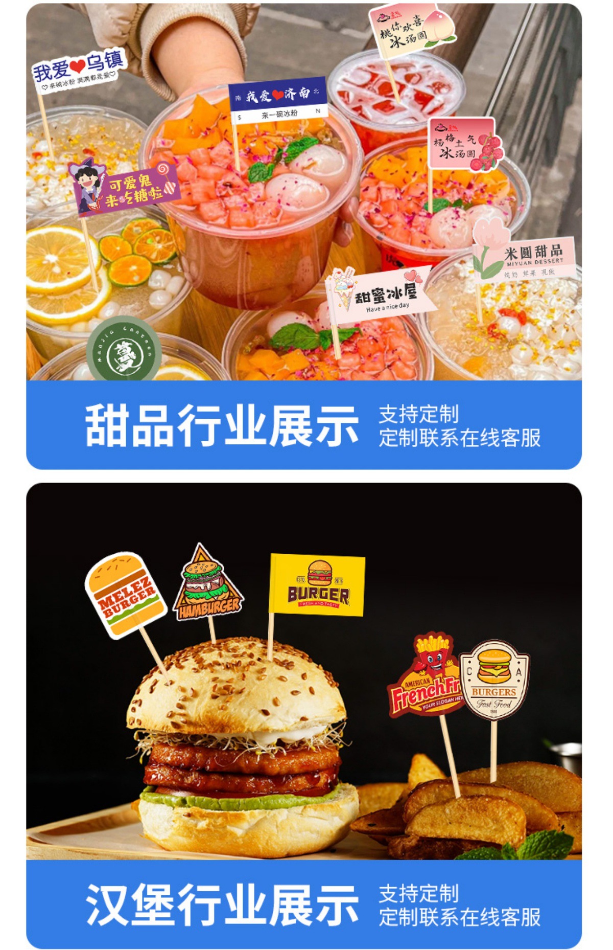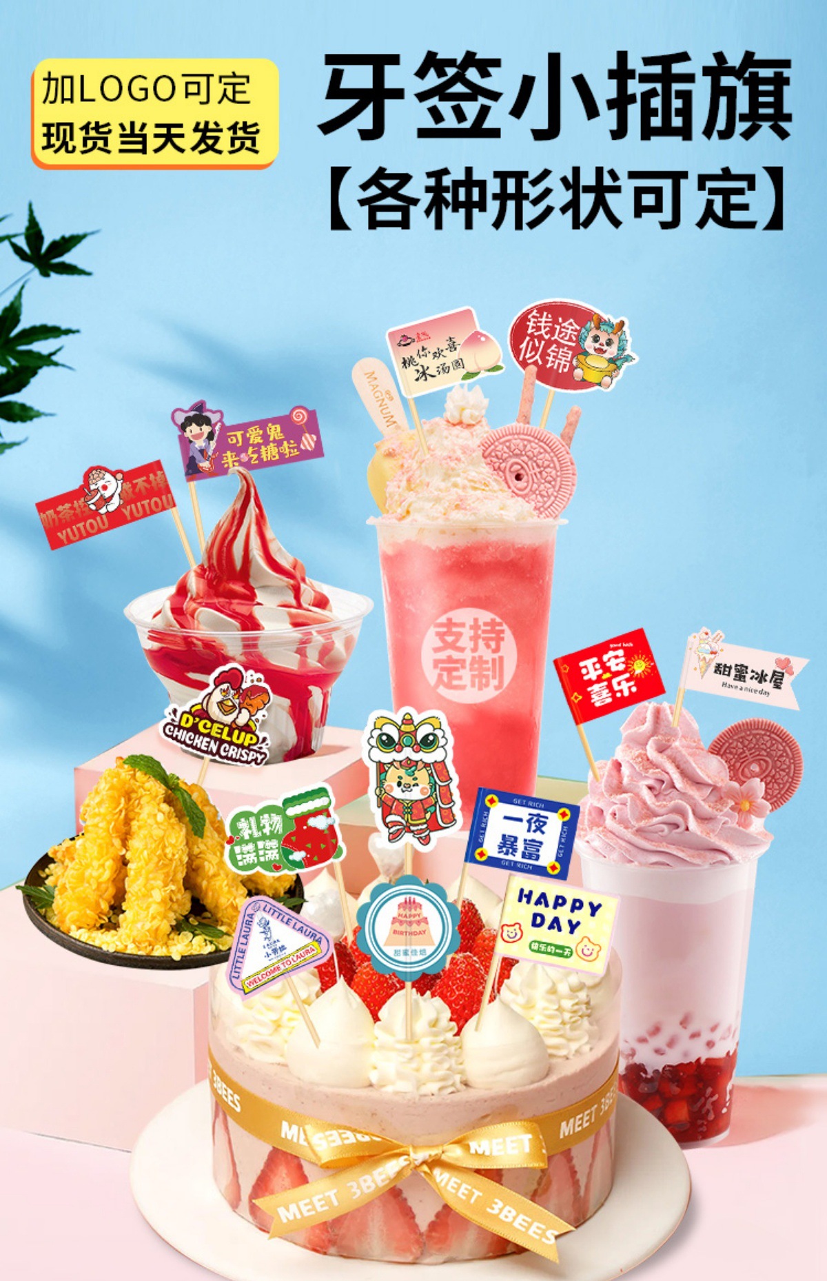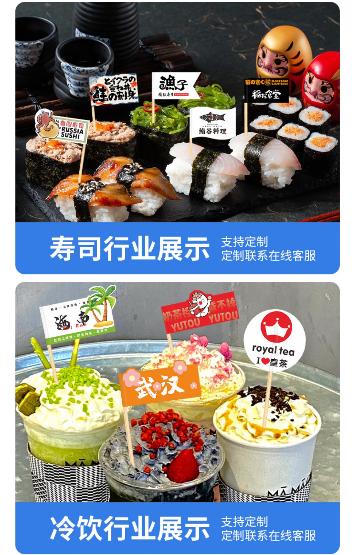 Этикетки для блюд с маленькими флагами, модные треугольные флаги-зубочистки для фруктов в ресторанах, индивидуальные логотипы для тортов, льда и желе.