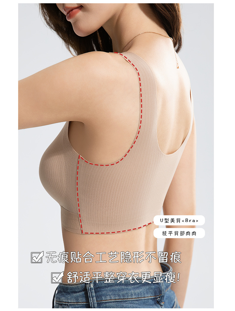 Новый бесшовный женский бюстгальтер в форме жилета U-образной формы, подтягивает и собирает, подчеркивает спину, собирает боковую грудь, беспроводной спортивный бюстгальтер для женщин.