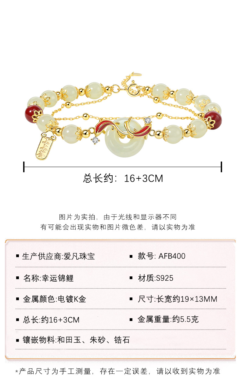 AFB400 - Браслет Lucky Koi Fish - I11 (приблизительно 19 см, нефритовый цвет по умолчанию случайный)