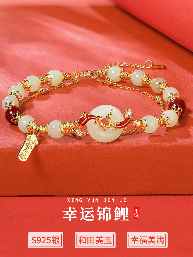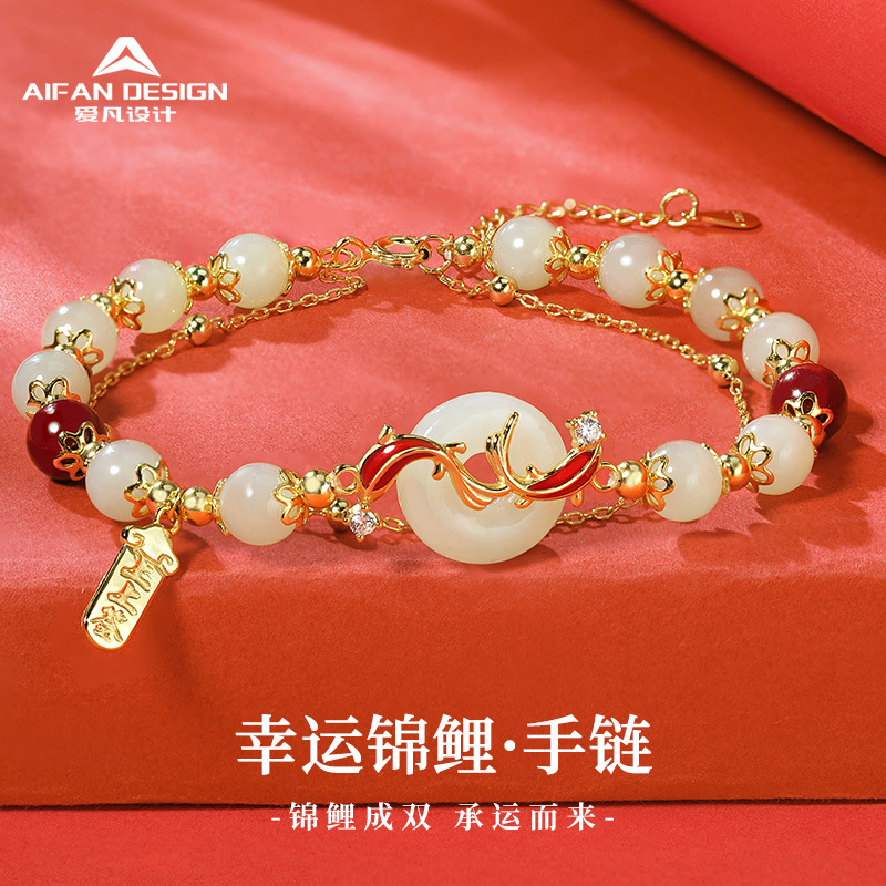 Новый женский браслет Lucky Koi из нефрита Hetian в китайском стиле, модный браслет из натурального нефрита в китайском стиле из серебра S925 для подруги.