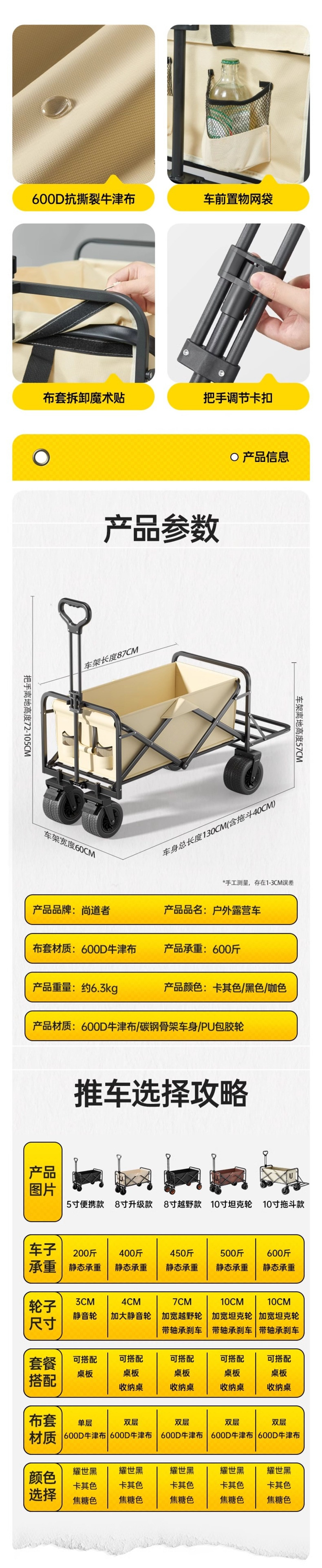 5inch Легкая модель — Yaoshi Black [сплошное колесо 3 см/несущая способность 75kg], рама из углеродистой стали.; 5inch Легкая модель цвета хаки [сплошное колесо 3 см/несущая способность 90kg], утолщенная рама из углеродистой стали.; 5inch Портативная модель-Yao Shi Black [сплошное колесо 3,5 см/несущая способность 100kg], утолщенная рама из углеродистой стали; Модель 8inch Модель Yao Shi Black [сплошное колесо 4 см/несущая способность 200kg], увеличенная и утолщенная рама из углеродистой стали.; 8inch Модернизированная модель-хаки [сплошное колесо 4 см/несущая способность 200kg], увеличенная и утолщенная рама из углеродистой стали.; Модель 8inch Модель карамельного цвета [сплошное колесо диаметром 4 см/несущая способность 200kg], увеличенная и утолщенная рама из углеродистой стали.; 8inch Внедорожная модель-Yao Shi Black [внедорожное колесо 7 см/с тормозом/с подшипником/несущая способность 225kg], увеличенная и утолщенная рама; 8inch Модель для бездорожья-хаки [колесо для бездорожья 7 см/с тормозом/с подшипником/несущая способность 225kg], увеличенная и утолщенная рама; 8inch Модель для бездорожья - карамельного цвета [колесо для бездорожья 7 см/с тормозом/с подшипником/несущая способность 225kg], увеличенная и утолщенная рама; Модель танка 10inch — Yao Shi Black [колесо танка 10 см/с тормозом/с подшипником/несущая способность 250kg ] Увеличенная и утолщенная рама; Модель танка 10inch — хаки [колесо танка 10 см/с тормозом/с подшипником/несущая способность 250kg ] увеличенная и утолщенная рама; Модель танка 10inch - карамельного цвета [колесо бака 10 см/с тормозом/с подшипником/несущая способность 275kg], увеличенная и утолщенная рама; Модель буксировочного ковша 10inch — Yaoshi черный [колесо бака 10 см/с буксировочным ковшом/с тормозом/с подшипником/несущая способность 300kg], увеличенная и утолщенная рама; Модель буксирного ковша 10inch - хаки [колесо бака 10 см/с буксирным ковшом/с тормозом/с подшипником/несущая способность 300kg], увеличенная и утолщенная рама; Модель 10inch с тяговым ковшом - карамельного цвета [колесо бака 10 см/с тяговым ковшом/с тормозом/с подшипником/несущая способность 300kg], увеличенная и утолщенная рама; Следующие варианты продукта: [Соответствующий пакет стола в стиле кемпинга]; [Настольный пакет] 5inch портативная модель-Yao Shi Black + складной черный стол из углеродистой стали; [Настольный пакет] 8inch Модернизированная модель-Yao Shi Black + складной черный стол из углеродистой стали; [Настольный пакет] Модель 8inch — хаки + складной стол из углеродистой стали под дерево; [Настольный пакет] 8inch Модернизированная модель — карамельный цвет + складной стол из углеродистой стали с текстурой дерева; [Настольный пакет] 8inch Внедорожный стиль — Yaoshi Black + складной черный стол из углеродистой стали; [Настольный пакет] 8inch Внедорожный стиль — хаки + складной стол из углеродистой стали под дерево; [Настольный пакет] 8inch Внедорожный стиль — карамельный цвет + складной стол из углеродистой стали под дерево; [Настольный пакет] Модель танка 10inch — Yaoshi Black + складной черный стол из углеродистой стали; [Настольный пакет] 10inch Стиль резервуара — хаки + складной стол из углеродистой стали под дерево; [Настольный пакет] 10inch Стиль резервуара — карамельный цвет + складной стол из углеродистой стали под дерево; [Настольный пакет] 10inch Ковш - Yaoshi Black + складной черный стол из углеродистой стали; [Настольный пакет] 10inch Ковш — хаки + складной стол из углеродистой стали с текстур