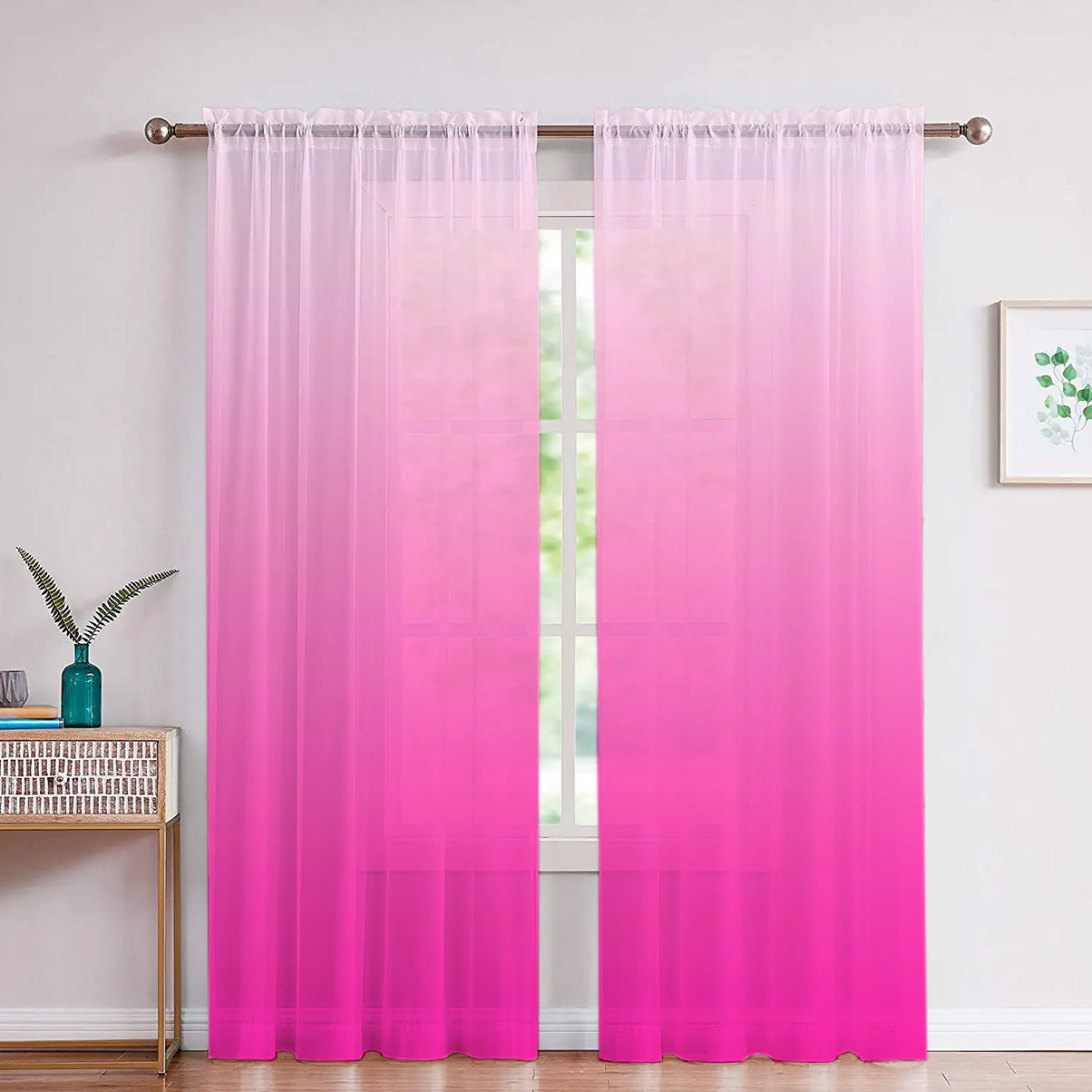 Поддержка JIT-доставки, эксклюзивные трансграничные прямые продажи с фабрики, шторы и оконные сетки с цифровой печатью из розовой градиентной пряжи.