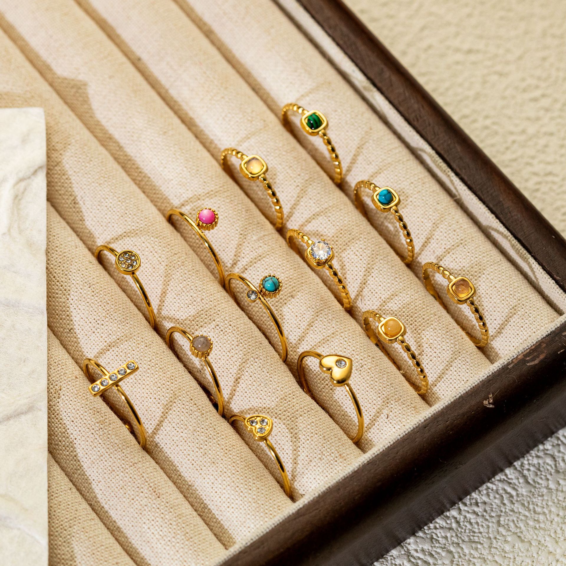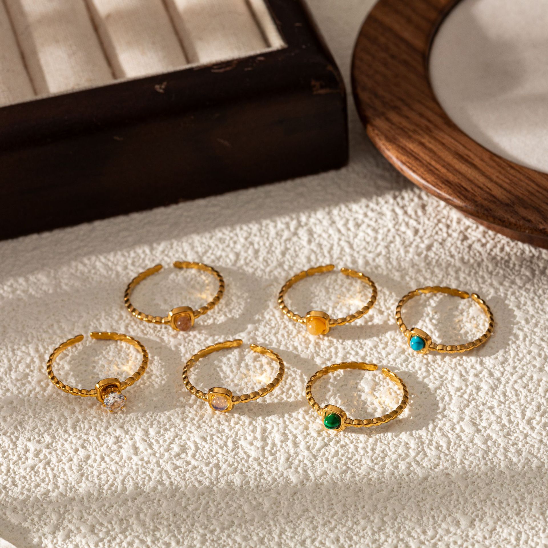 Кольцо из натурального камня с позолотой, из нержавеющей стали, не выцветающее, оптом, женское кольцо, трансграничная поставка.