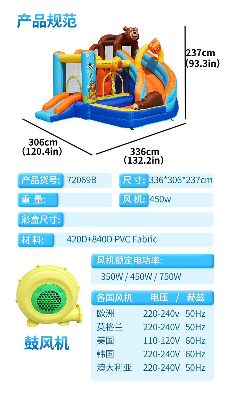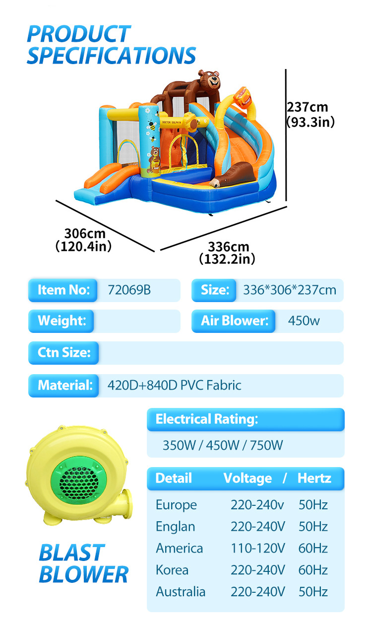Надувной замок Доктор Дельфин, небольшой надувной горка, детский надувной замок для дома и улицы